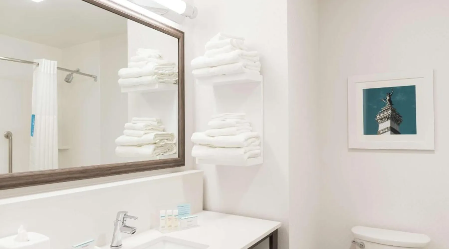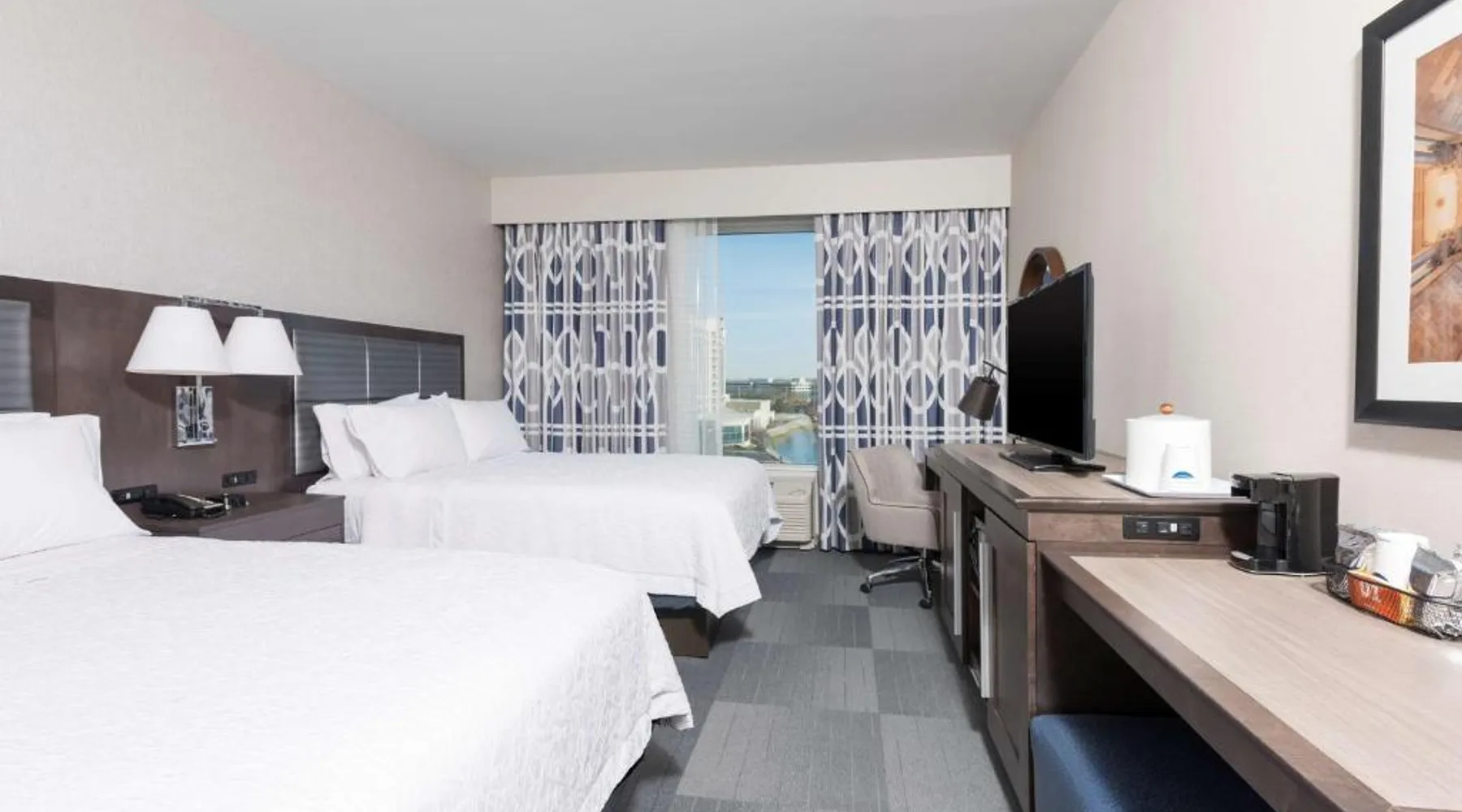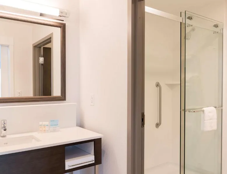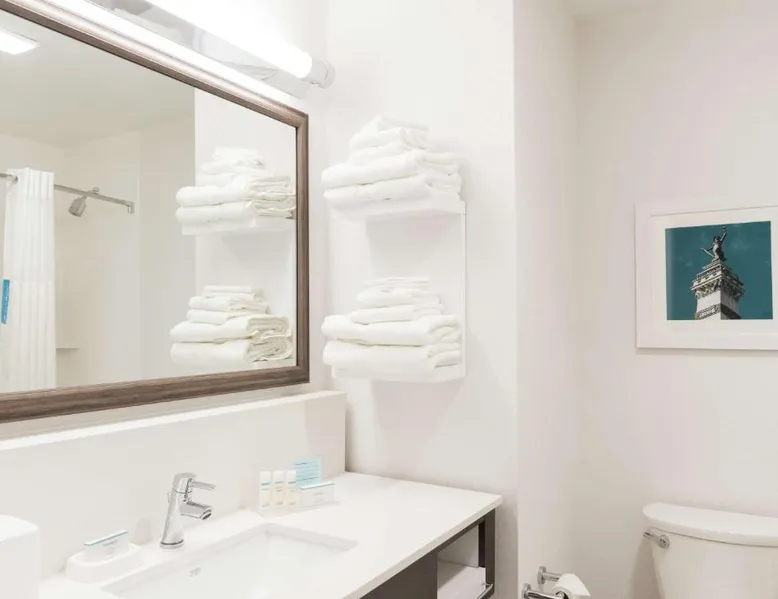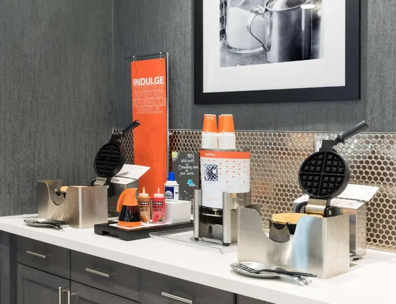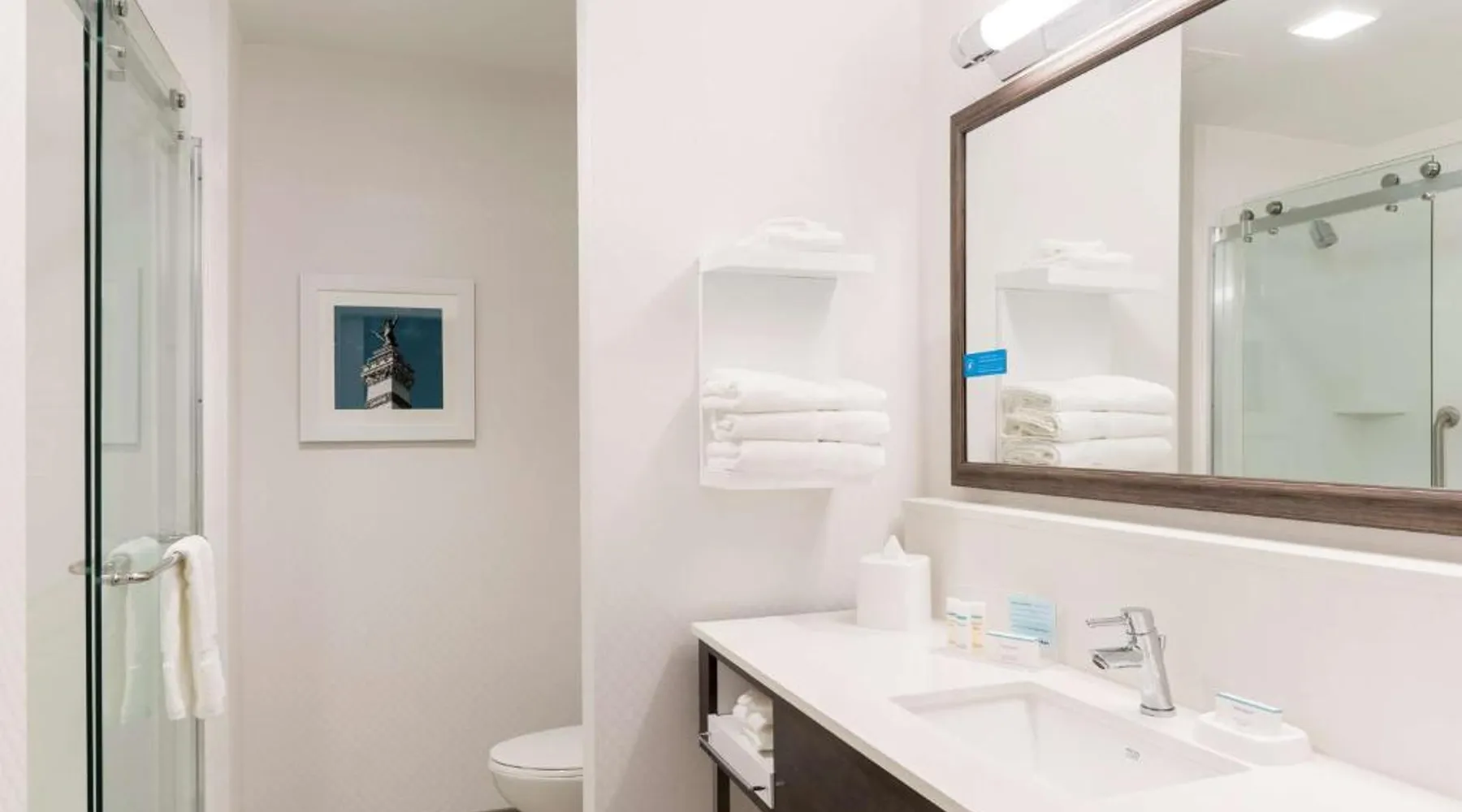 Comfortable Accommodations: Hampton Inn & Suites Indianapolis-Keystone in Indianapolis offers comfortable rooms with balconies, sofa beds, and seating areas. Each room includes a tea and coffee maker, hairdryer, refrigerator, microwave, and TV. Exceptional Facilities: Guests enjoy an indoor swimming pool, free WiFi, and an outdoor fireplace. Additional amenities include a fitness room, elevator, 24-hour front desk, minimarket, electric vehicle charging station, outdoor seating area, and express check-in and check-out services. Delicious Breakfast: A complimentary American buffet breakfast is served daily, featuring juice, fresh pastries, and fruits. Prime Location: Located 6.2 mi from Holliday Park and near attractions such as Cw Mundy Fine Art (1.8 mi) and Amc Theaters (3 mi). Free on-site private parking is available. Highly rated for its swimming pool, nearby shops, and attentive staff. This room offers hearing-accessible amenities, including a visual alarm system and notification devices for the doorbell, door knock and incoming telephone calls.