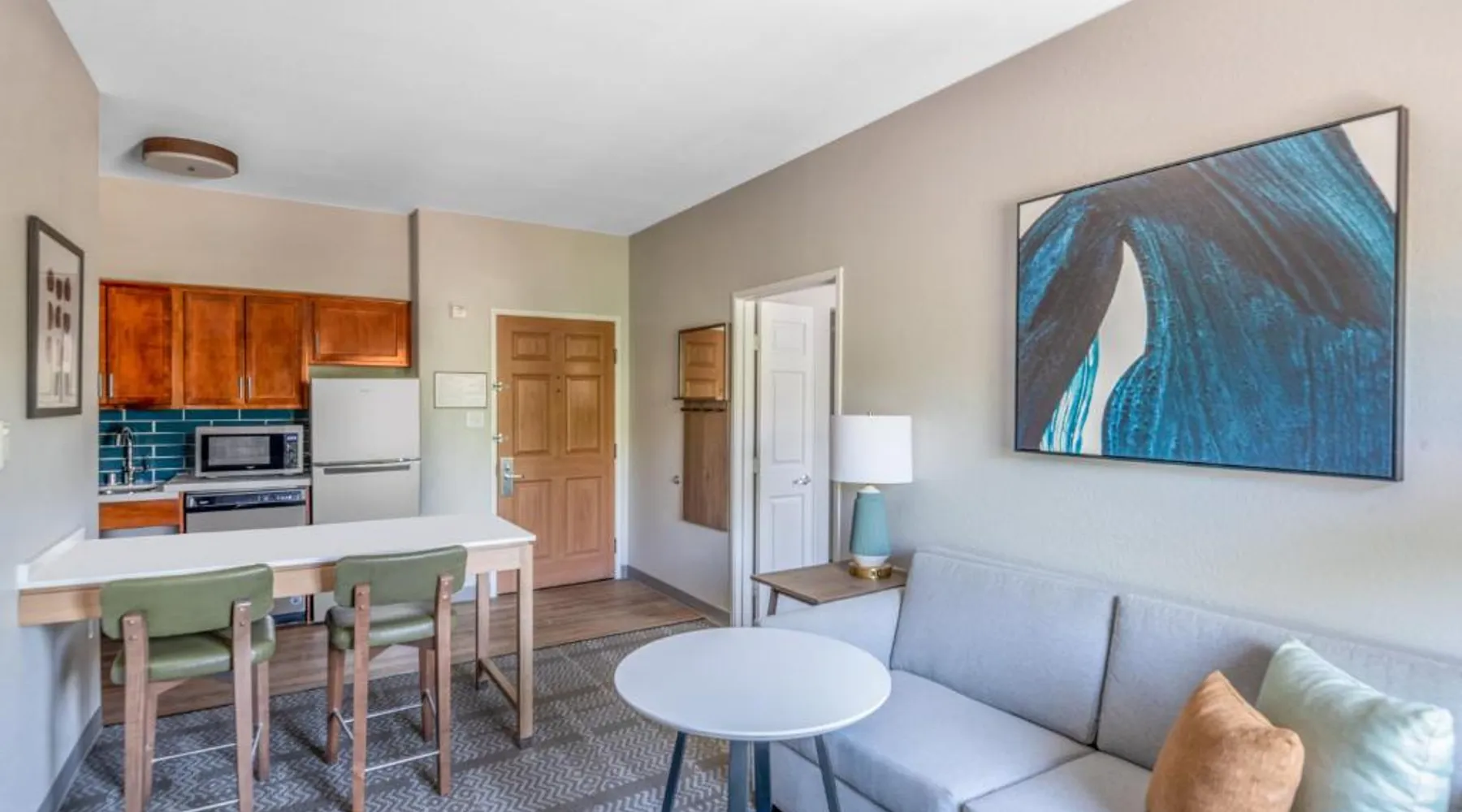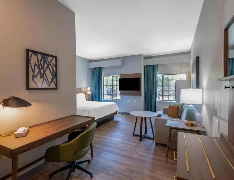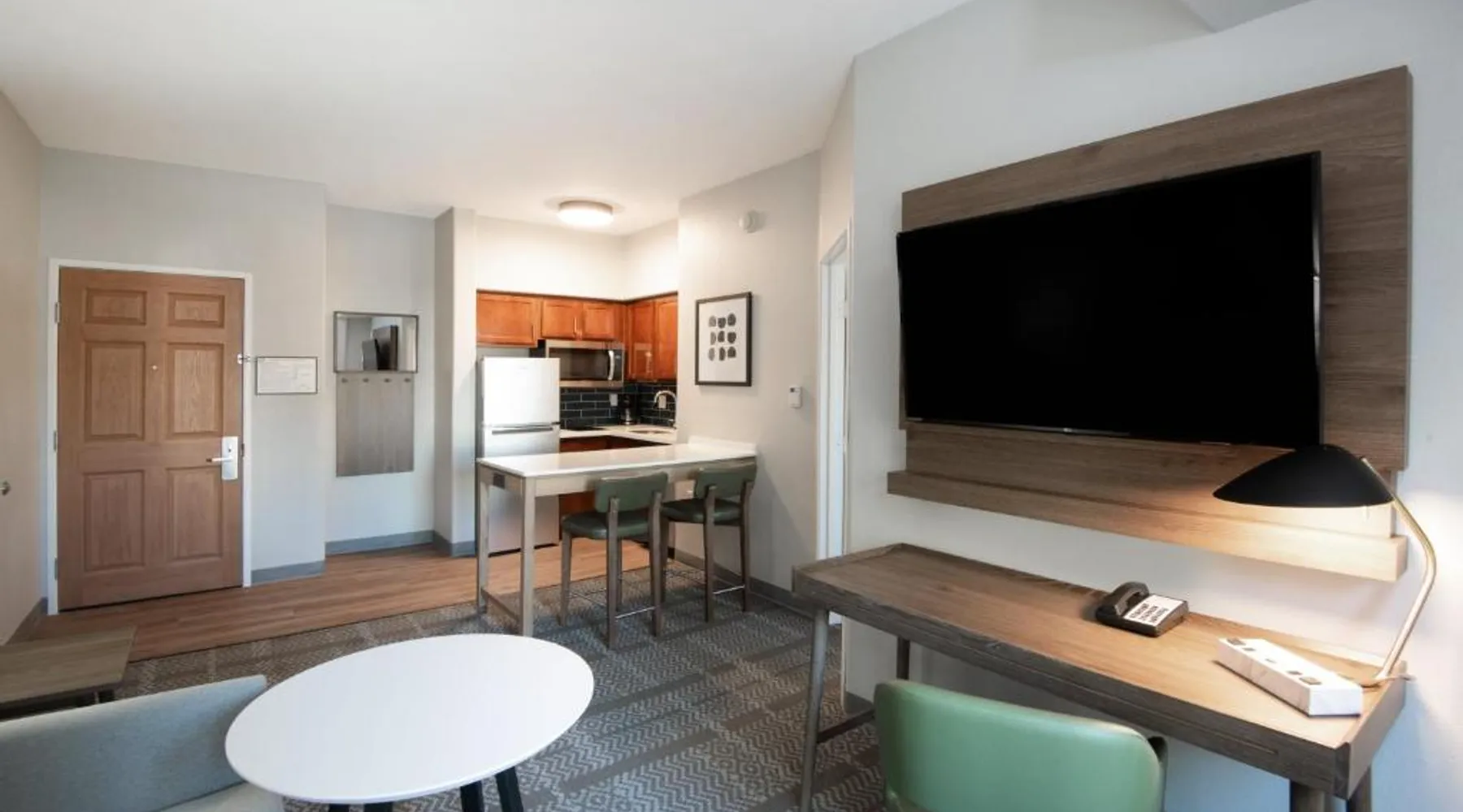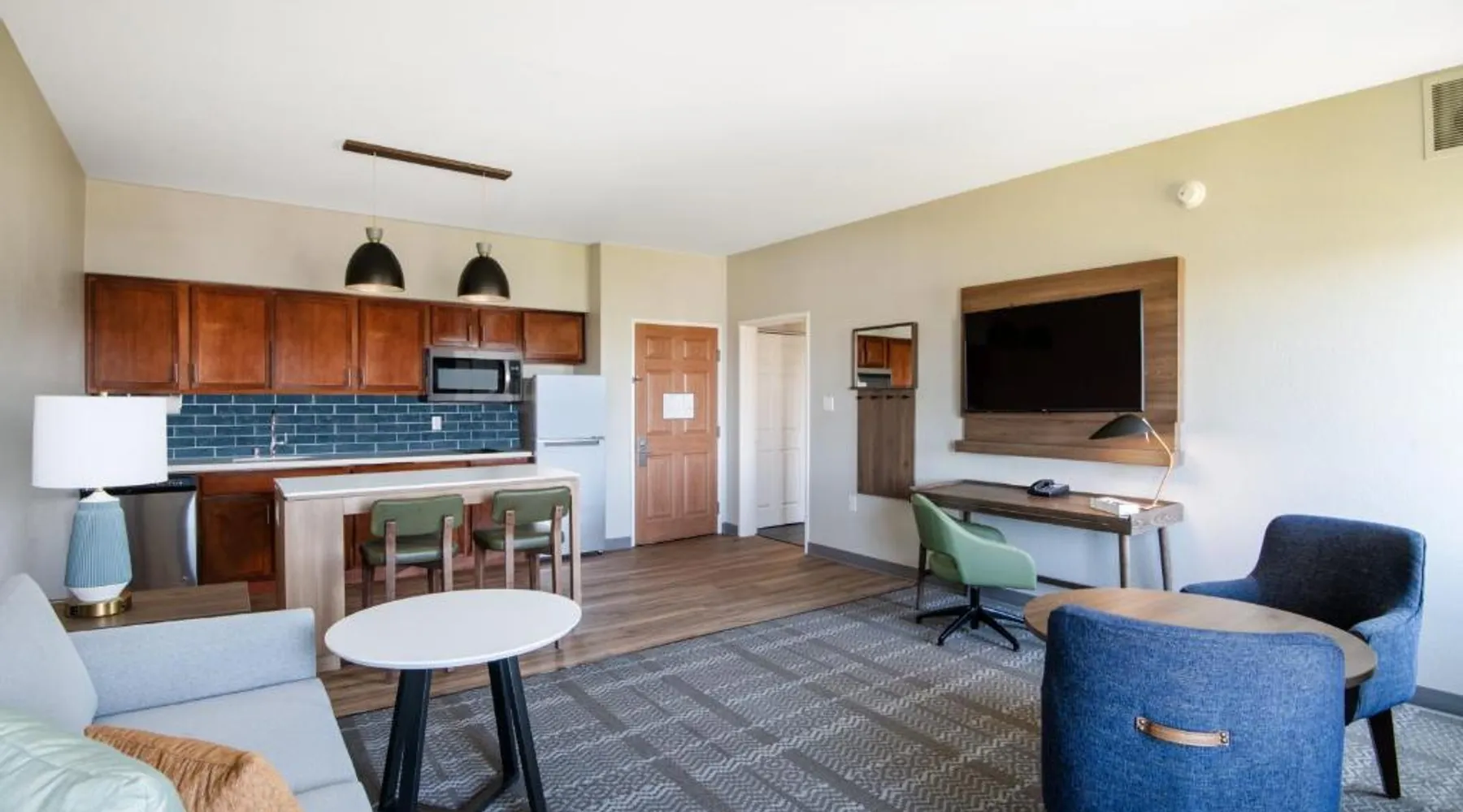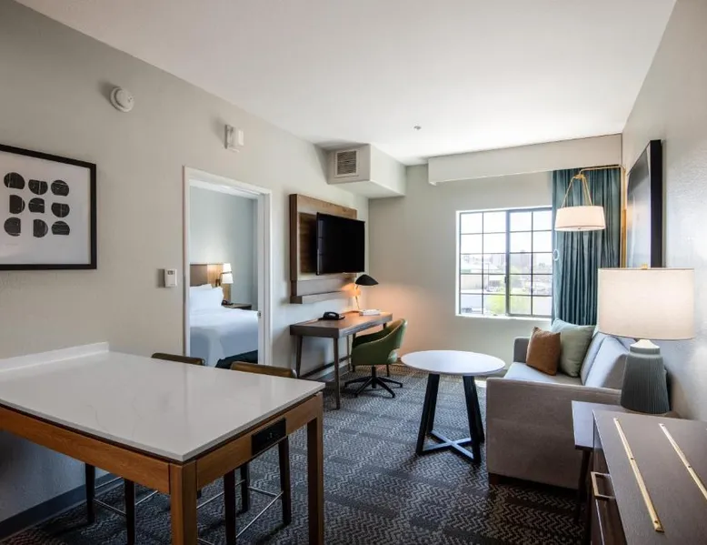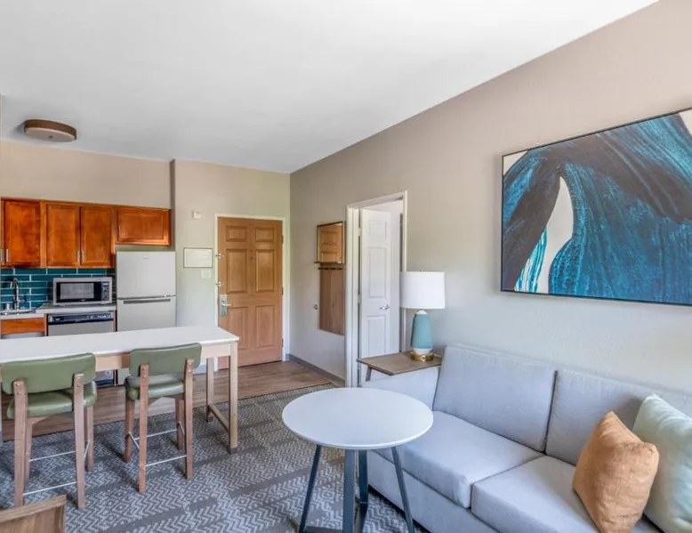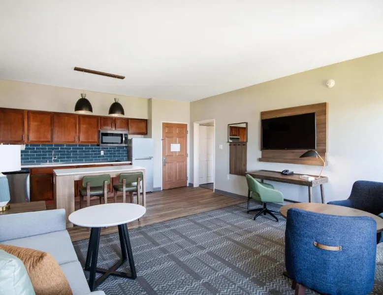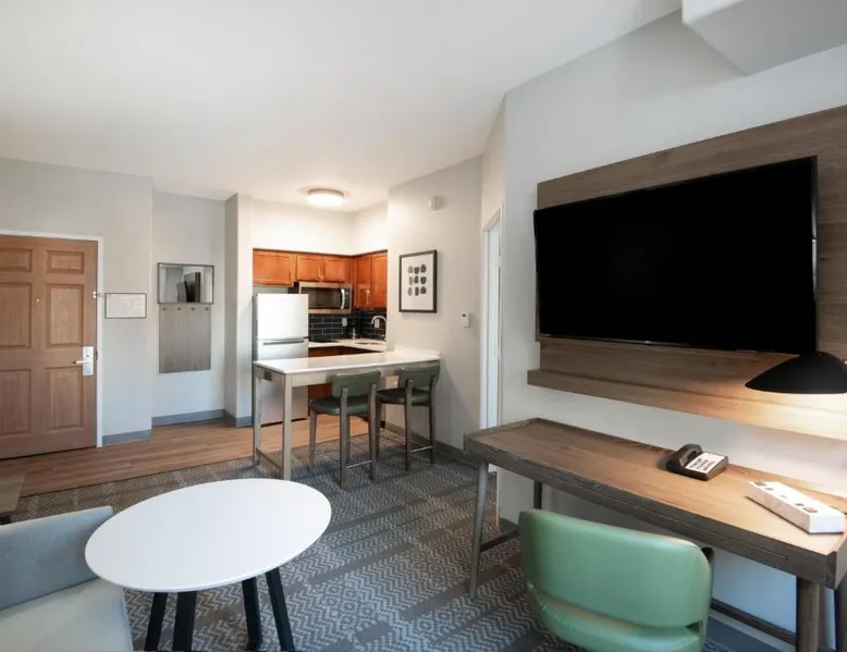 This all suite Glendale hotel features a year round outdoor pool and hot tub and serves a daily breakfast buffet. It offers suites with fully equipped kitchens. The city center of Phenix is a 25-minute drive away. Free WiFi is included in all air-conditioned suites at Staybridge Suites Phenix-Glendale and they feature a flat-screen cable satellite TV, a work desk and ironing facilities. A private bathroom is also included. BBQ facilities are provided at Phenix-Glendale Staybridge Suites. Guests have access to the on-site business center with fax and photocopying services. For convenience, a guest launderette is available. Gila River Arena is 0.6 mi from Staybridge Suites Phenix-Glendale, while State Farm Stadium is 0.9 mi from the property. The nearest airport is Phenix Sky Harbor Airport, 16 mi from Staybridge Suites Phenix-Glendale. Offering a fully equipped kitchen and free Wi-Fi, this air-conditioned suite includes a flat-screen cable satellite TV, a desk and a seating area.