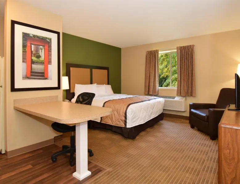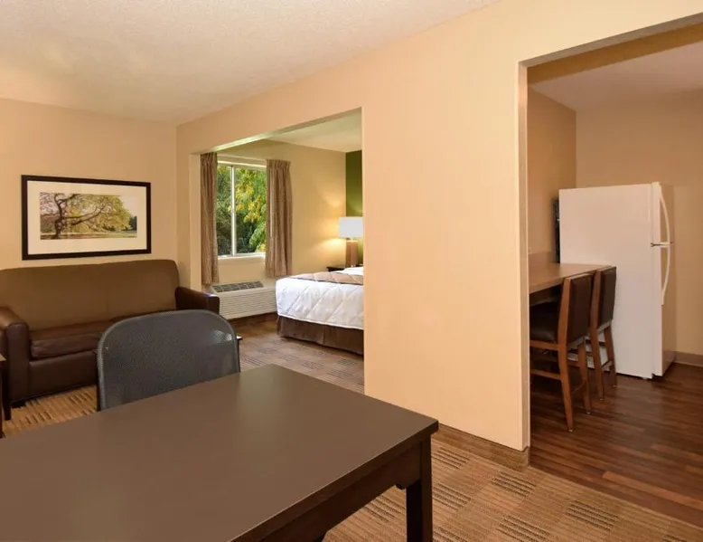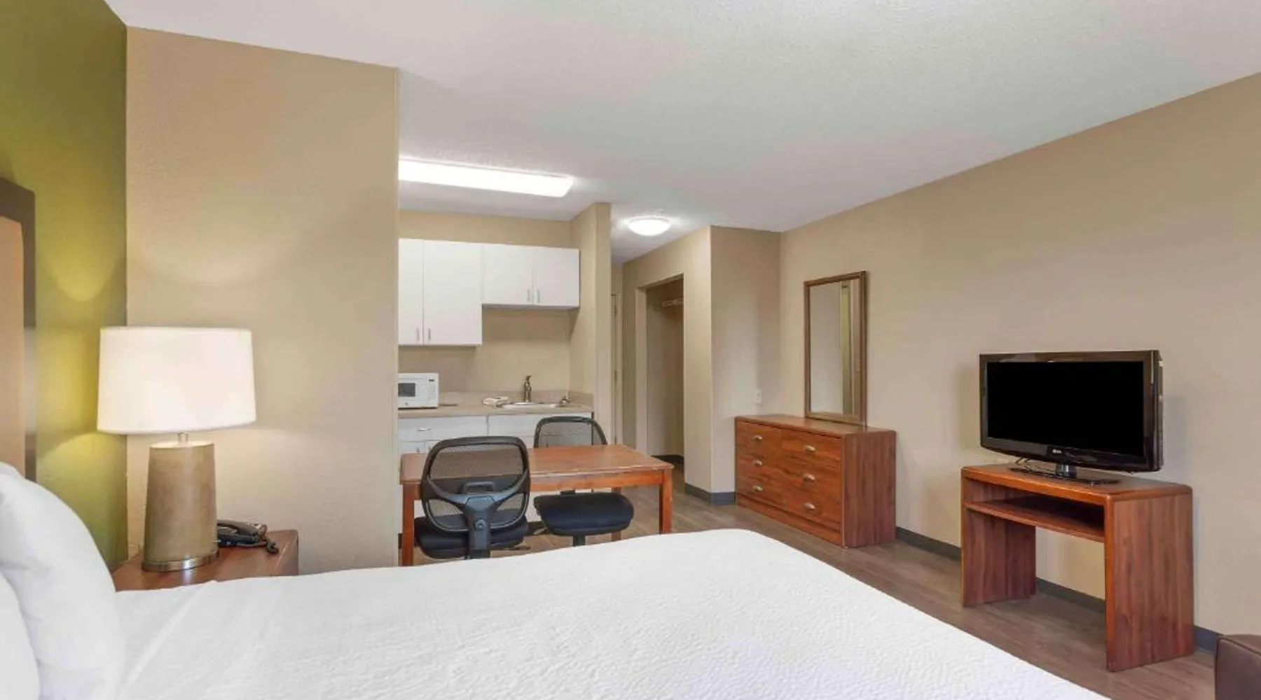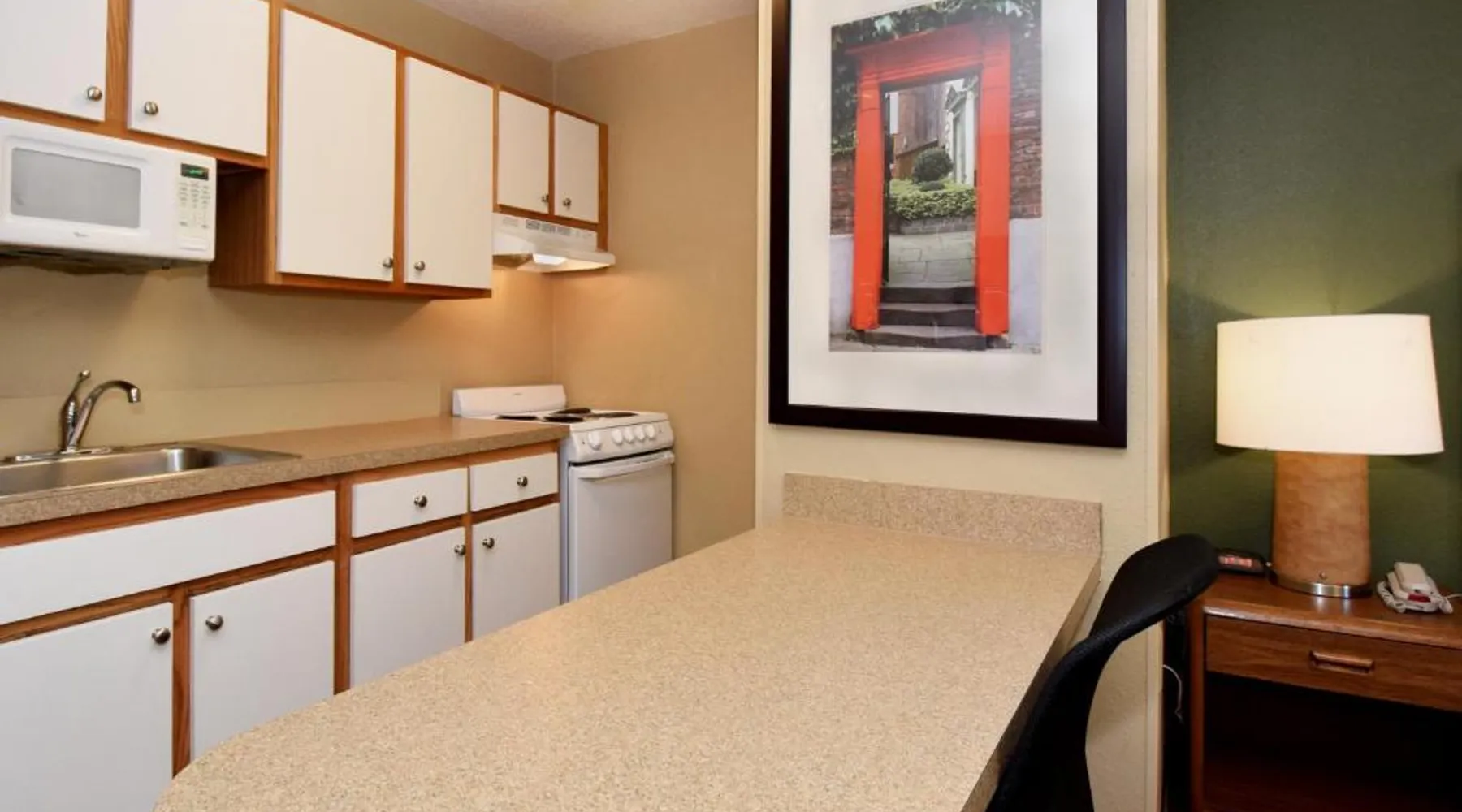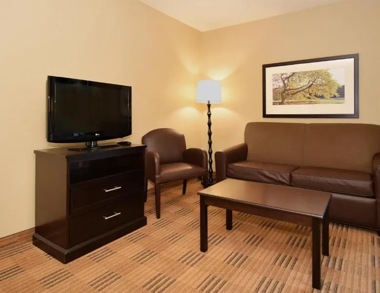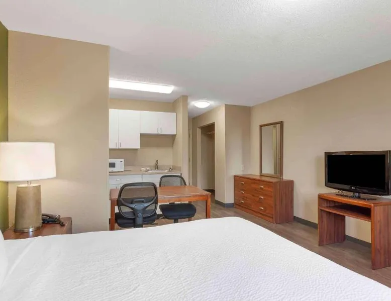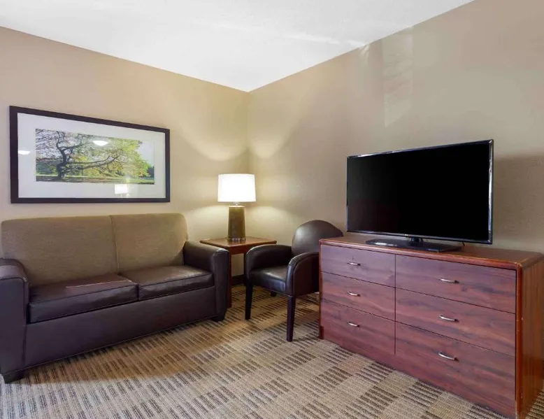 Comfortable Accommodations: Extended Stay America Select Suites - Memphis - Cordova in Memphis offers family rooms with air-conditioning, private bathrooms, and fully equipped kitchens. Each room includes a work desk, TV, and free toiletries. Convenient Facilities: Guests enjoy free WiFi, free on-site private parking, and a dining area. Additional amenities include a sofa bed, microwave, and oven. Prime Location: Located 16 mi from Memphis International Airport, the hotel is near attractions such as Bellevue Baptist Church (2.2 mi), Shelby Farms Park (4.3 mi), and Tennessee Shakespeare Company (6.2 mi). This nonsmoking studio features a fully equipped kitchen, a cable TV and a work desk.