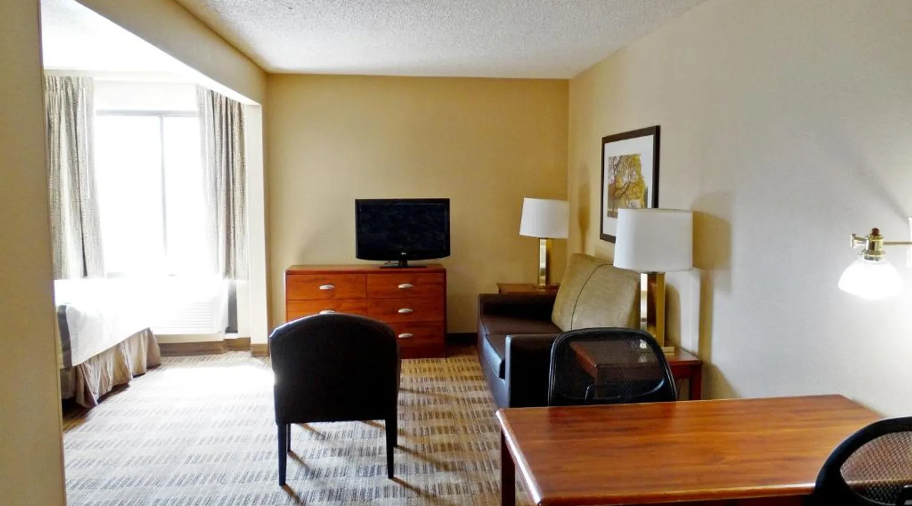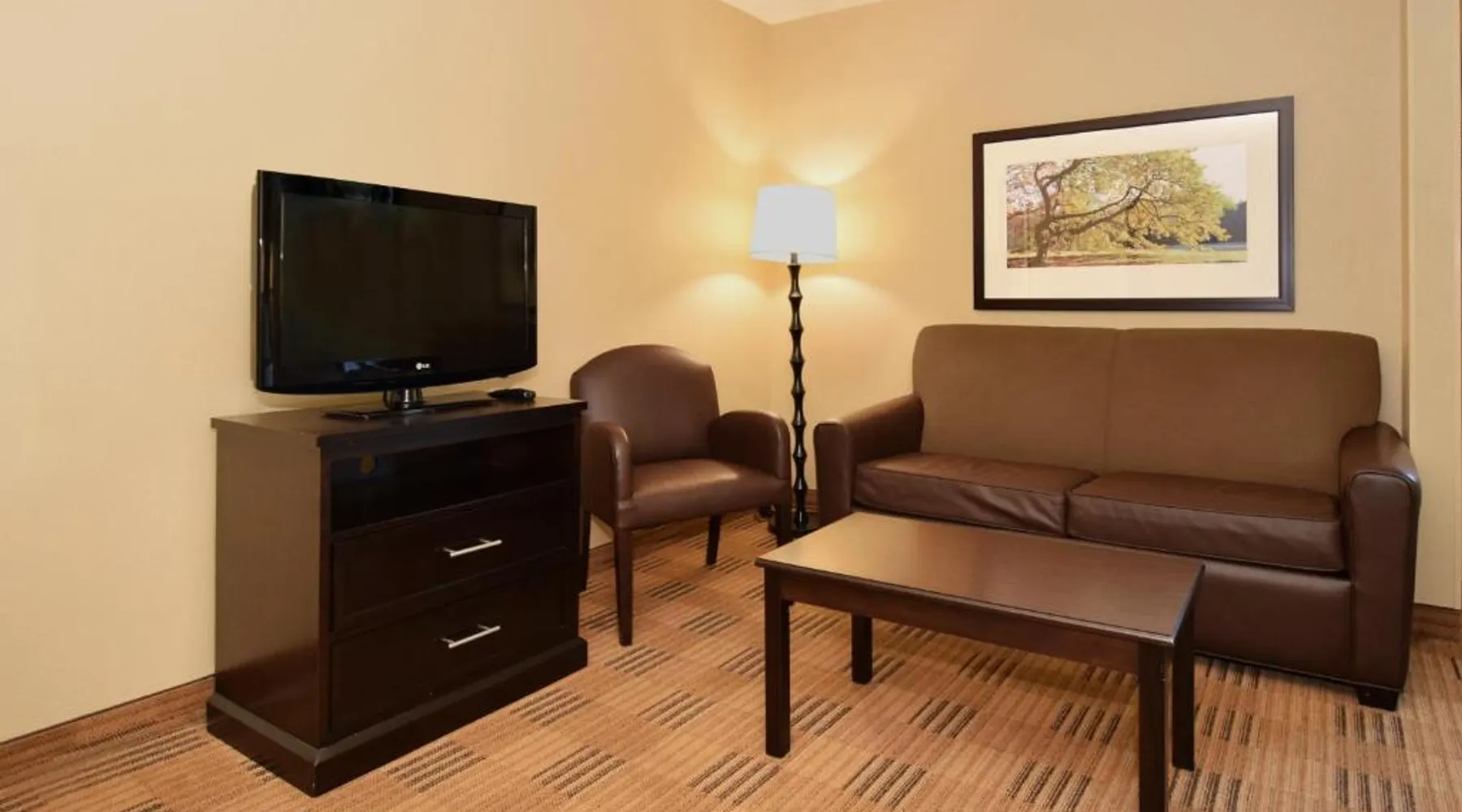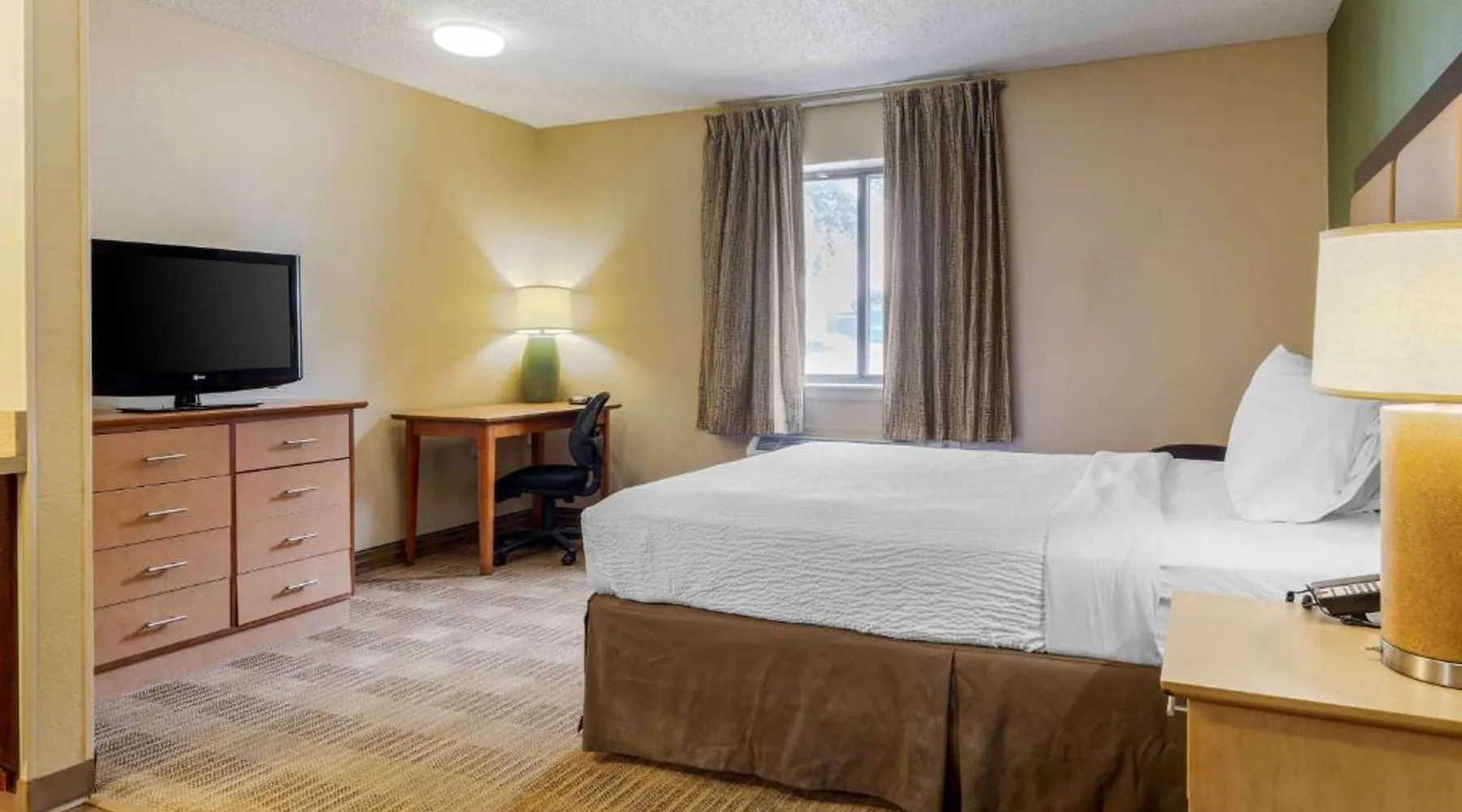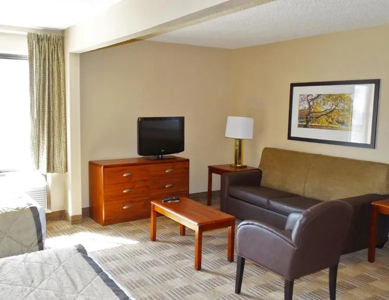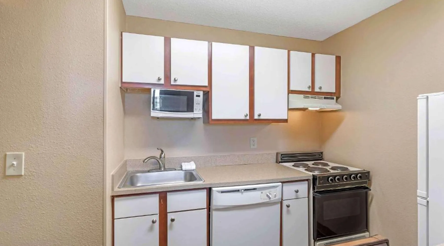 Comfortable Accommodations: Extended Stay America Select Suites - Memphis - Cordova in Memphis offers family rooms with air-conditioning, private bathrooms, and fully equipped kitchens. Each room includes a work desk, TV, and free toiletries. Convenient Facilities: Guests enjoy free WiFi, free on-site private parking, and a dining area. Additional amenities include a sofa bed, microwave, and oven. Prime Location: Located 16 mi from Memphis International Airport, the hotel is near attractions such as Bellevue Baptist Church (2.2 mi), Shelby Farms Park (4.3 mi), and Tennessee Shakespeare Company (6.2 mi). This nonsmoking studio features a fully equipped kitchen, a cable TV and a work desk.