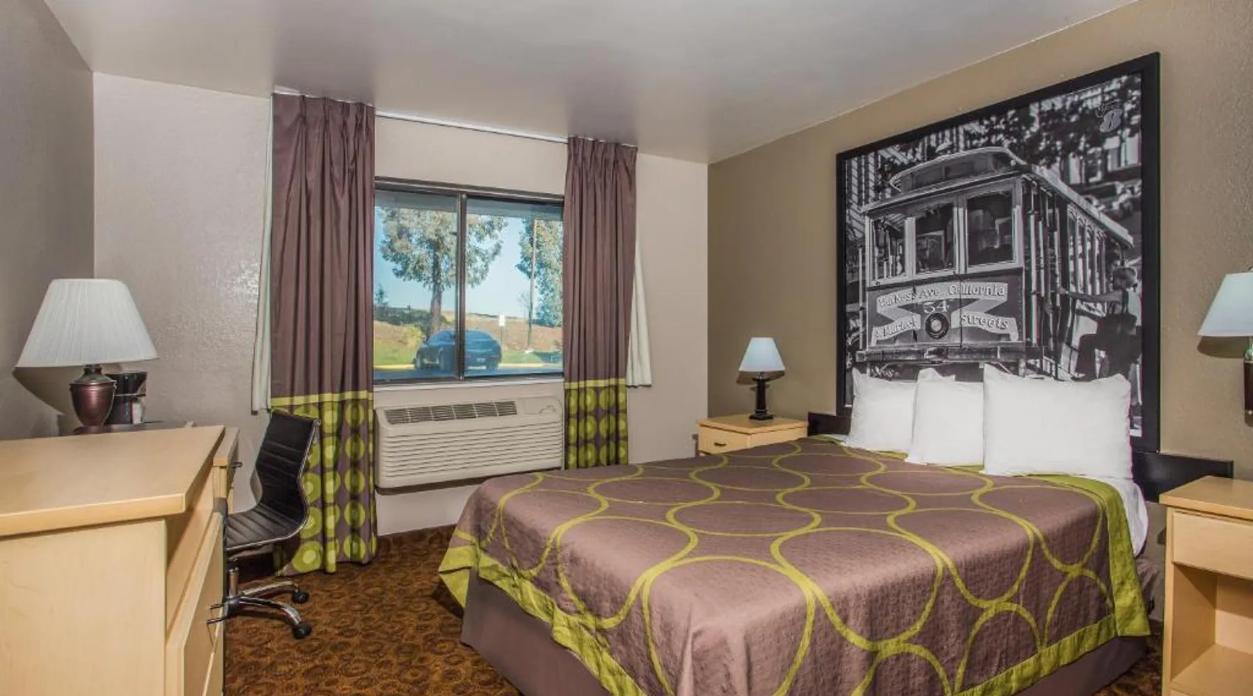 Located off Interstate 80, this hotel is 1 mile from Vacaville Premium Outlets. It features a seasonal outdoor pool, free Wi-Fi and traditional rooms with cable TV. The spacious rooms at Super 8 Vacaville provide coffee facilities, wood furniture and carpeted floors. All rooms have have refrigerators and include a 40-inch flat screen TV. A 24-hour front desk is available at the hotel along with on-site laundry facilities. Free parking is offered. The Green Tree Golf Course is a 9-minute drive from Vacaville Super 8. Ledgewood Creek Winery is 11.7 miles away. Featuring free toiletries, this quadruple room includes a private bathroom with a bath, a shower and a hairdryer. The air-conditioned quadruple room features a flat-screen TV with cable channels, a tea and coffee maker, tumble dryer, a carpeted floor as well as garden views. The unit has 2 beds.