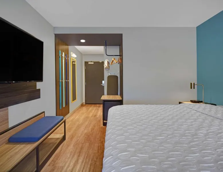 Comfortable Accommodations: Tru By Hilton Gaylord, Mi in Gaylord offers comfortable rooms with air-conditioning, parquet floors, and modern amenities including a work desk and TV. Each room includes a walk-in shower and free WiFi. Leisure Facilities: Guests can enjoy a saltwater swimming pool, indoor pool, and fitness center. The hotel provides free on-site private parking and an outdoor seating area. Dining Options: A child-friendly buffet breakfast is served daily, featuring American, vegetarian, and gluten-free options. Breakfast includes warm dishes, juice, pancakes, and fruits. Convenient Location: Located 50 mi from Pellston Regional Airport and 22 mi from Monument Golf Course. Guests appreciate the convenient location and excellent room cleanliness. The quadruple room features air conditioning, a tea and coffee maker, parquet floors, heating and a flat-screen TV with cable channels. The unit has 2 beds.