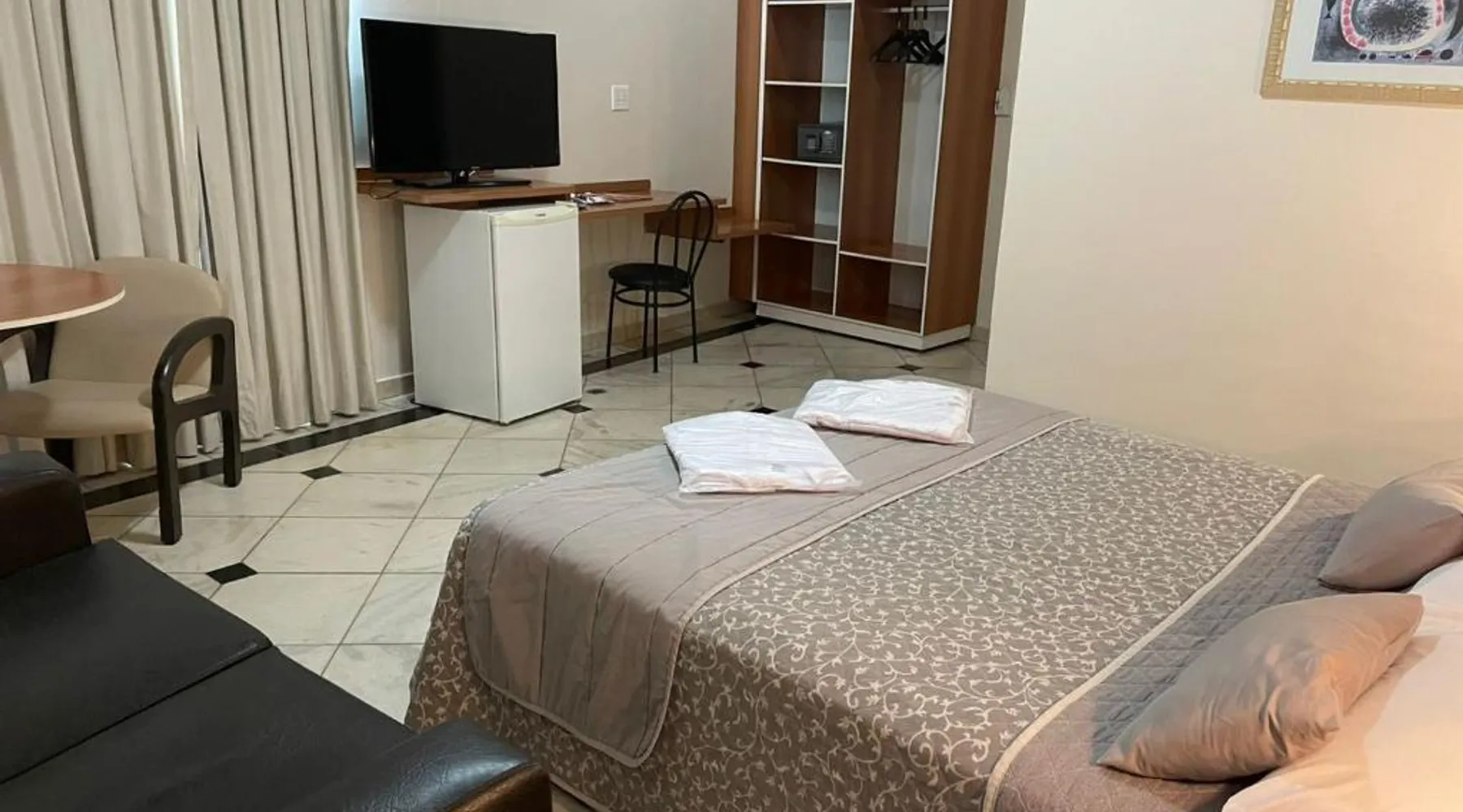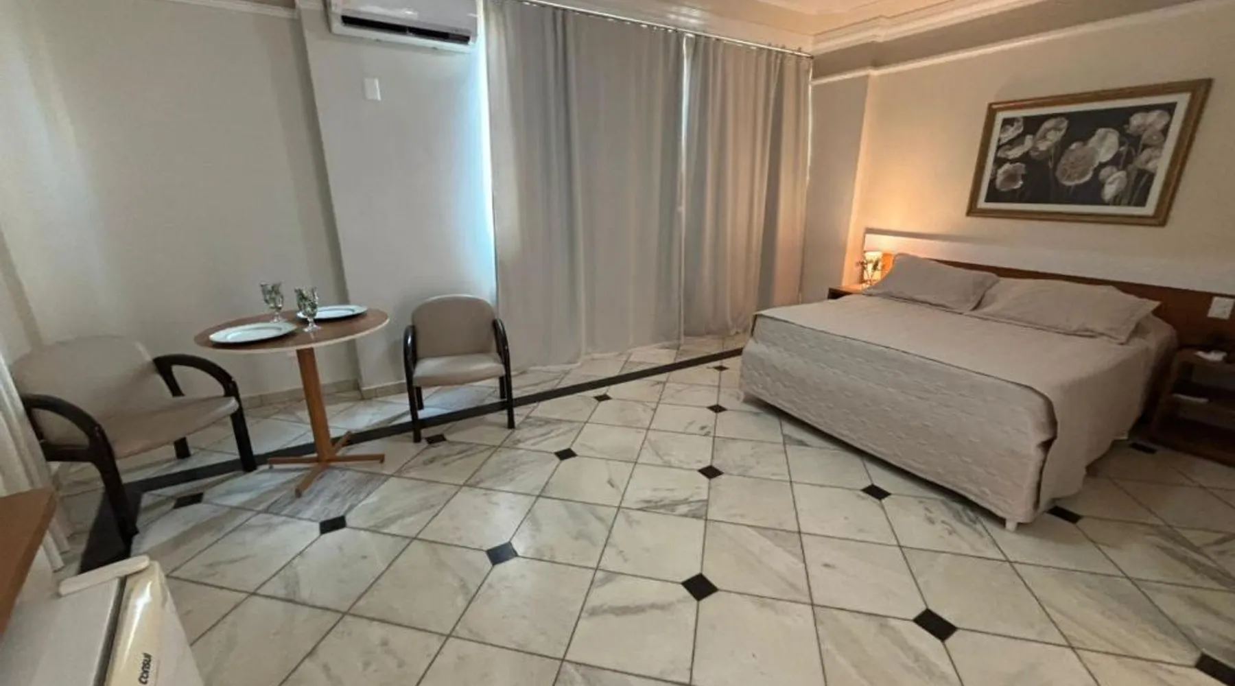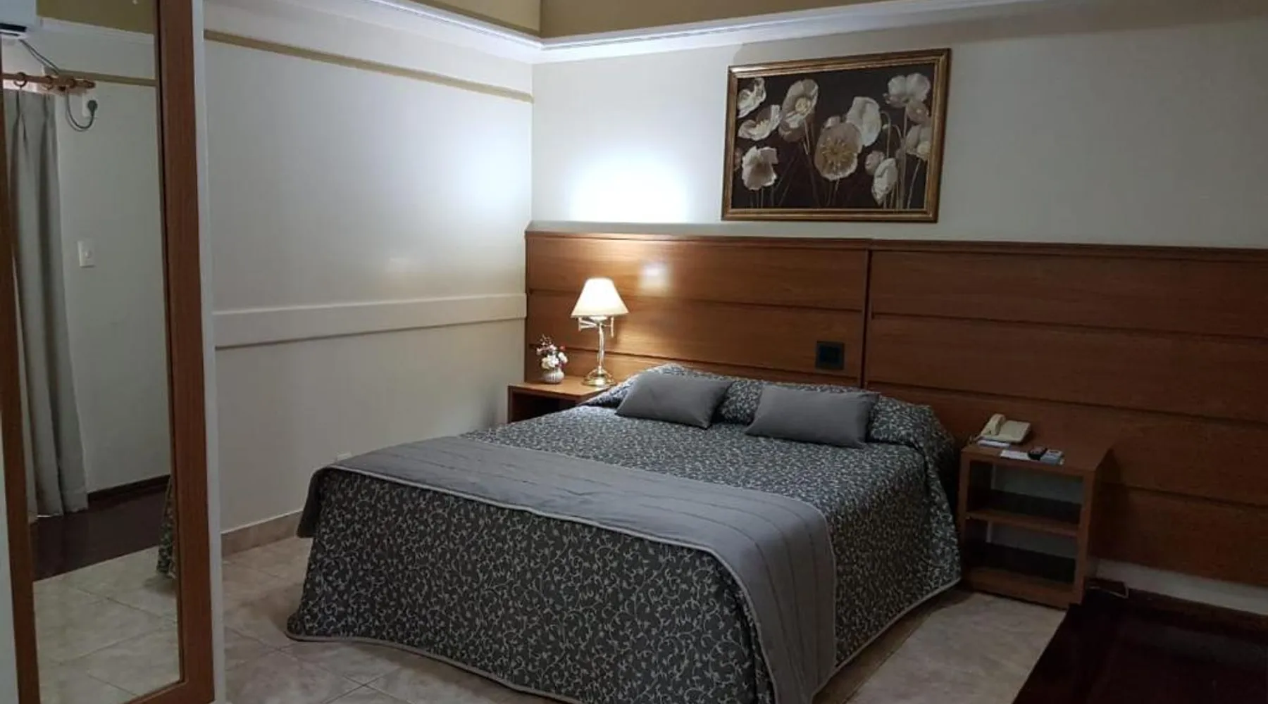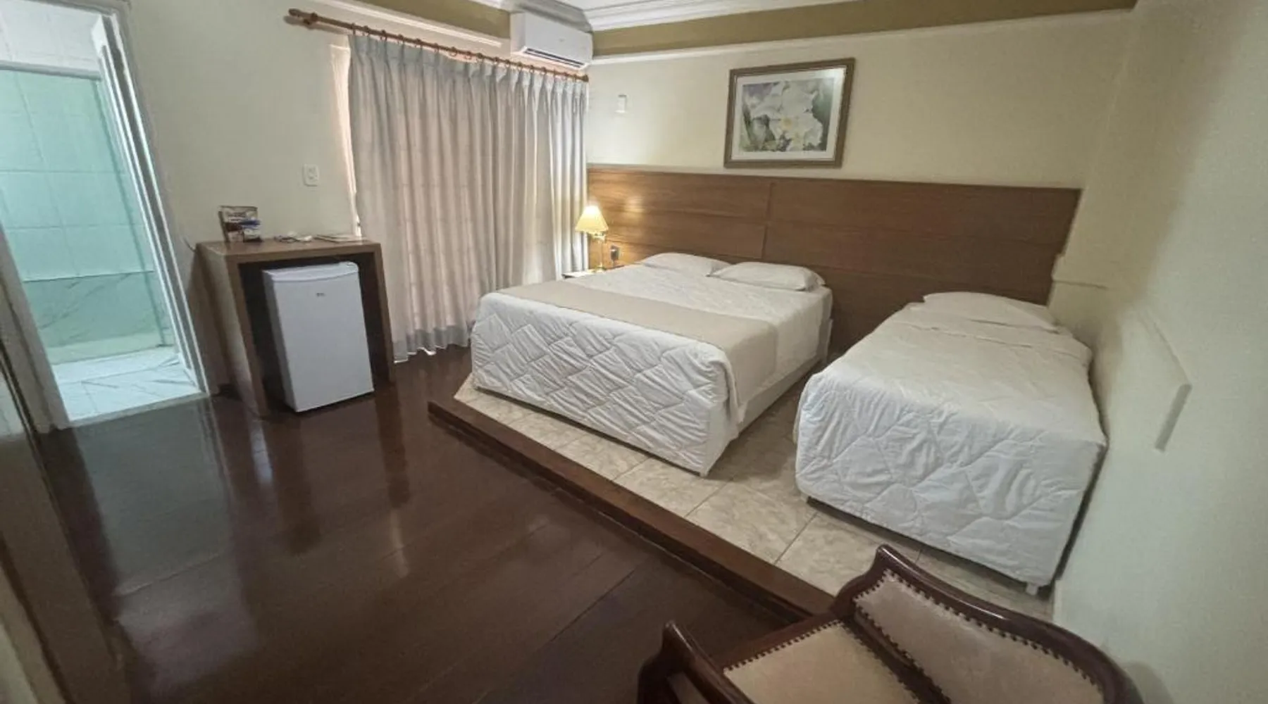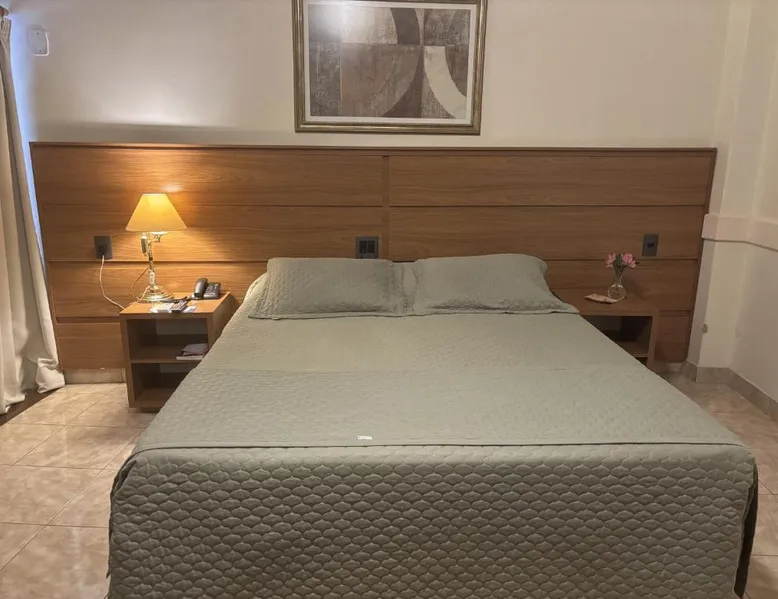 Tamareiras Park features a gym, outdoor pool and air-conditioned rooms with free Wi-Fi. Located in Uberaba Center, its restaurant serves an à la carte menu with a wine selection, and a daily breakfast with homemade delicacies. The rooms offer a classic décor with a mini-bar, cable TV and bathroom. Most feature a private balcony. Breakfast and a variety of meals can be ordered through room service. This hotel is just 1 mi from Uberaba Bus Station. Mário de Almeida Franco Airport can be reached within an 10-minute drive. Guests can enjoy foosball and pool tables in the game-room, or relax in the sauna. The 24-hour front desk can arrange laundry services. Tamareiras Park Hotel offers free valet parking. Equipped with air conditioning, this room contains a cable TV, a mini-bar and a private bathroom. Breakfast and a variety of meal options can be served in-room.