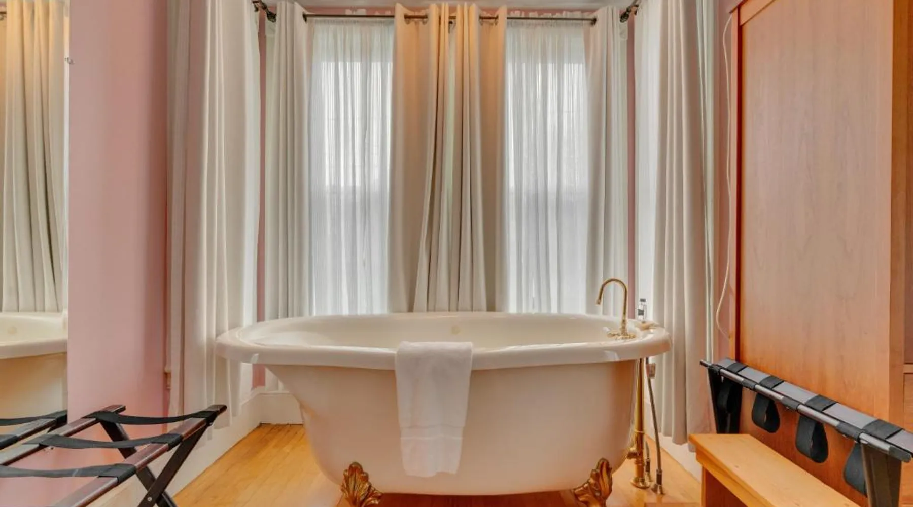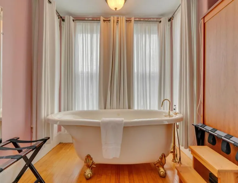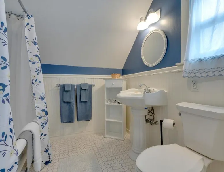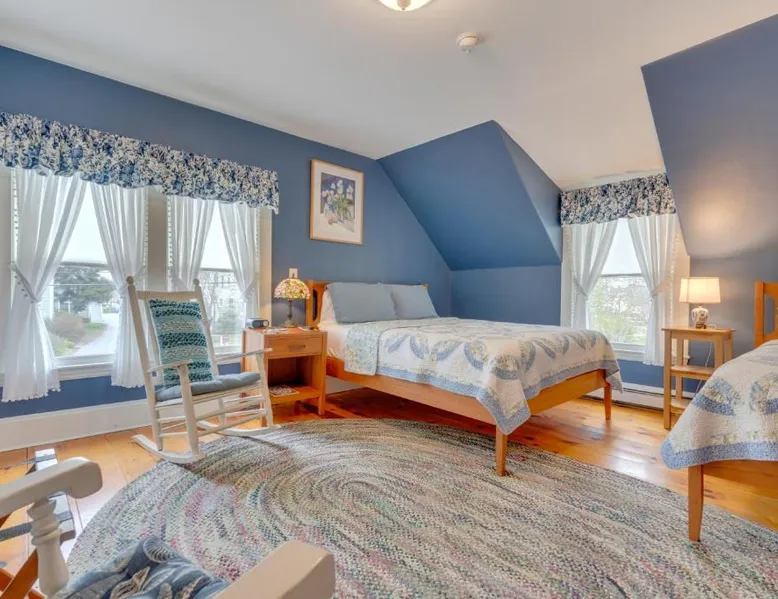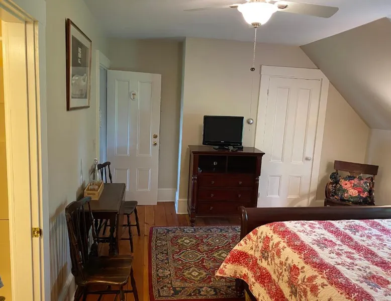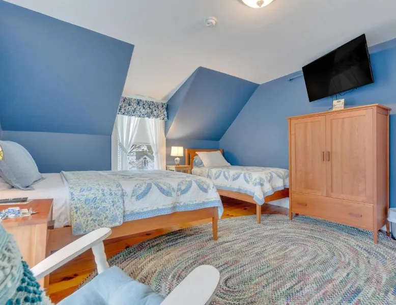 Historic Setting: James Place Inn Bed and Breakfast in Freeport offers a 5-star experience within a historic building. Guests enjoy a sun terrace, lush garden, and free WiFi throughout the property. Comfortable Accommodations: Rooms feature air-conditioning, private bathrooms with walk-in showers, and parquet floors. Additional amenities include balconies, kitchenettes, and spa baths, ensuring a relaxing stay. Exceptional Services: The property provides a paid airport shuttle service, lounge, wellness packages, and yoga classes. Free on-site private parking, an indoor play area, and family rooms cater to all guests. Prime Location: Located 21 mi from Portland International Jetport, the inn is near attractions such as Bowdoin College (11 mi) and Portland Museum of Art (17 mi). Guests appreciate the convenient location and excellent service. Located on the first floor, this room features skylights, a flat-screen TV with DVD player and a private bathroom with a spa bath.