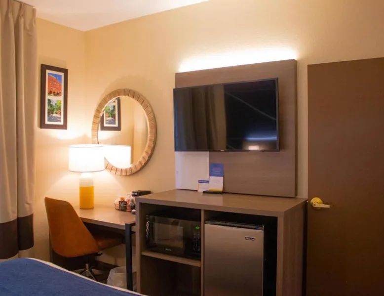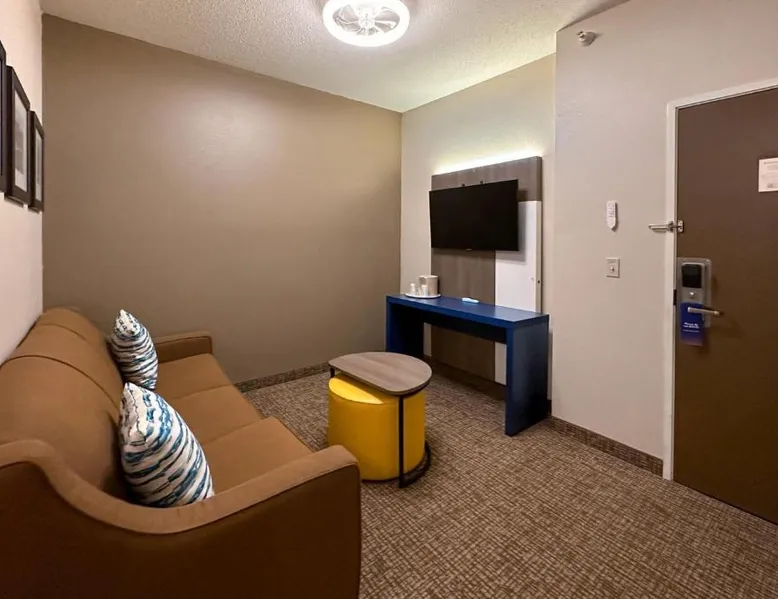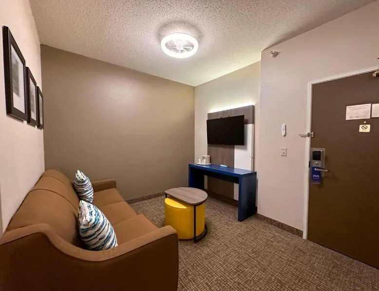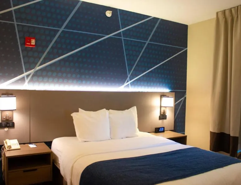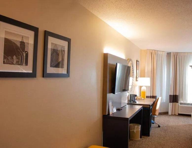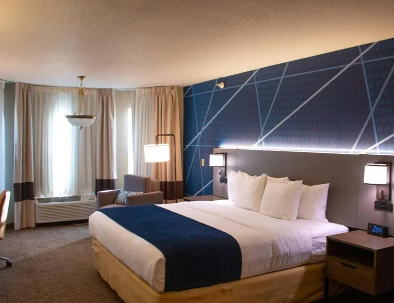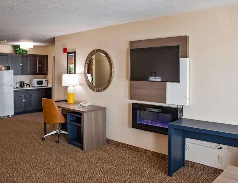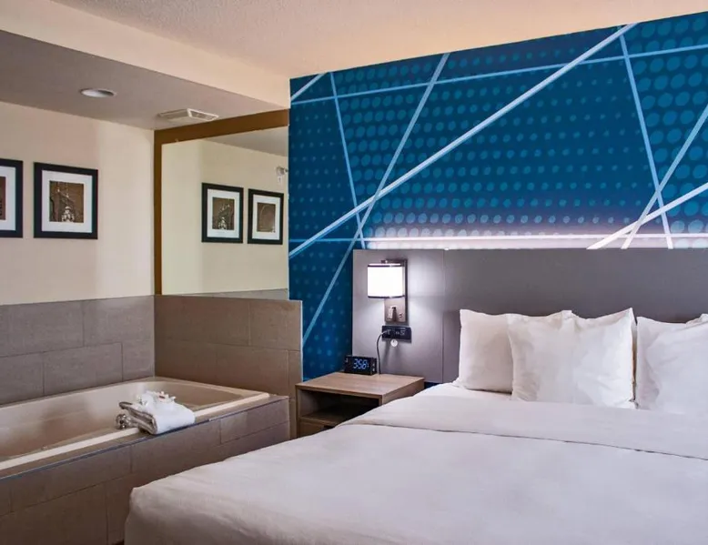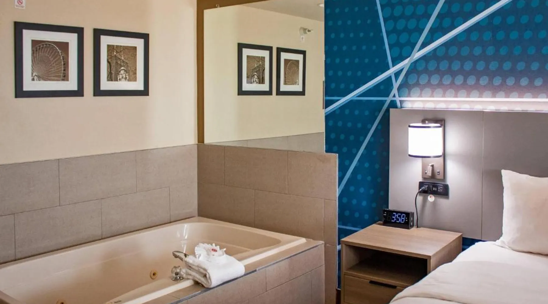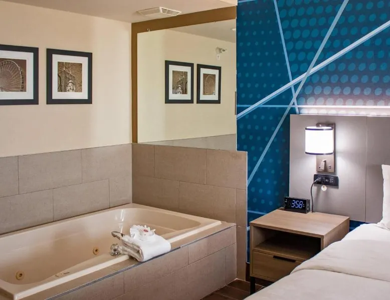 Comfortable Accommodations: Comfort Inn & Suites Geneva- West Chicago in Geneva offers air-conditioned rooms with private bathrooms, free WiFi, and modern amenities. Each room includes a work desk, TV, and complimentary toiletries. Leisure Facilities: Guests can enjoy an indoor swimming pool, hot tub, and spa bath. Additional amenities include a lounge, outdoor seating area, and picnic space. Free on-site private parking is available. Dining Options: A variety of breakfast options are provided, including continental, buffet, and vegetarian. Breakfast includes warm dishes, fresh pastries, pancakes, cheese, fruits, and juice. Convenient Location: Located 23 mi from Chicago O'Hare International Airport, the hotel is near Northwestern Medicine Field (1.1 mi) and Batavia Depot Museum (3 mi). Guests appreciate the convenient location and room cleanliness. This double room's standout feature is the hot tub. The spacious double room offers air conditioning, a tea and coffee maker, as well as a private bathroom featuring a bath and a shower. The double room provides a seating area, a carpeted floor, heating, as well as a flat-screen TV with cable channels. The unit offers 1 bed.