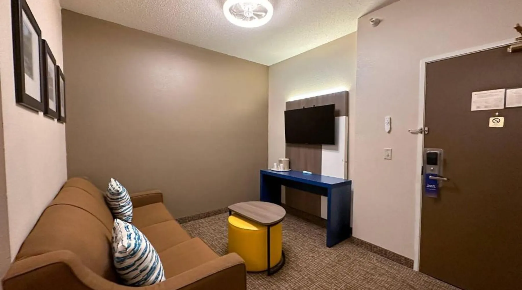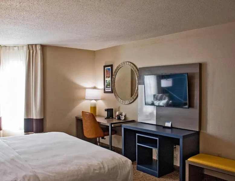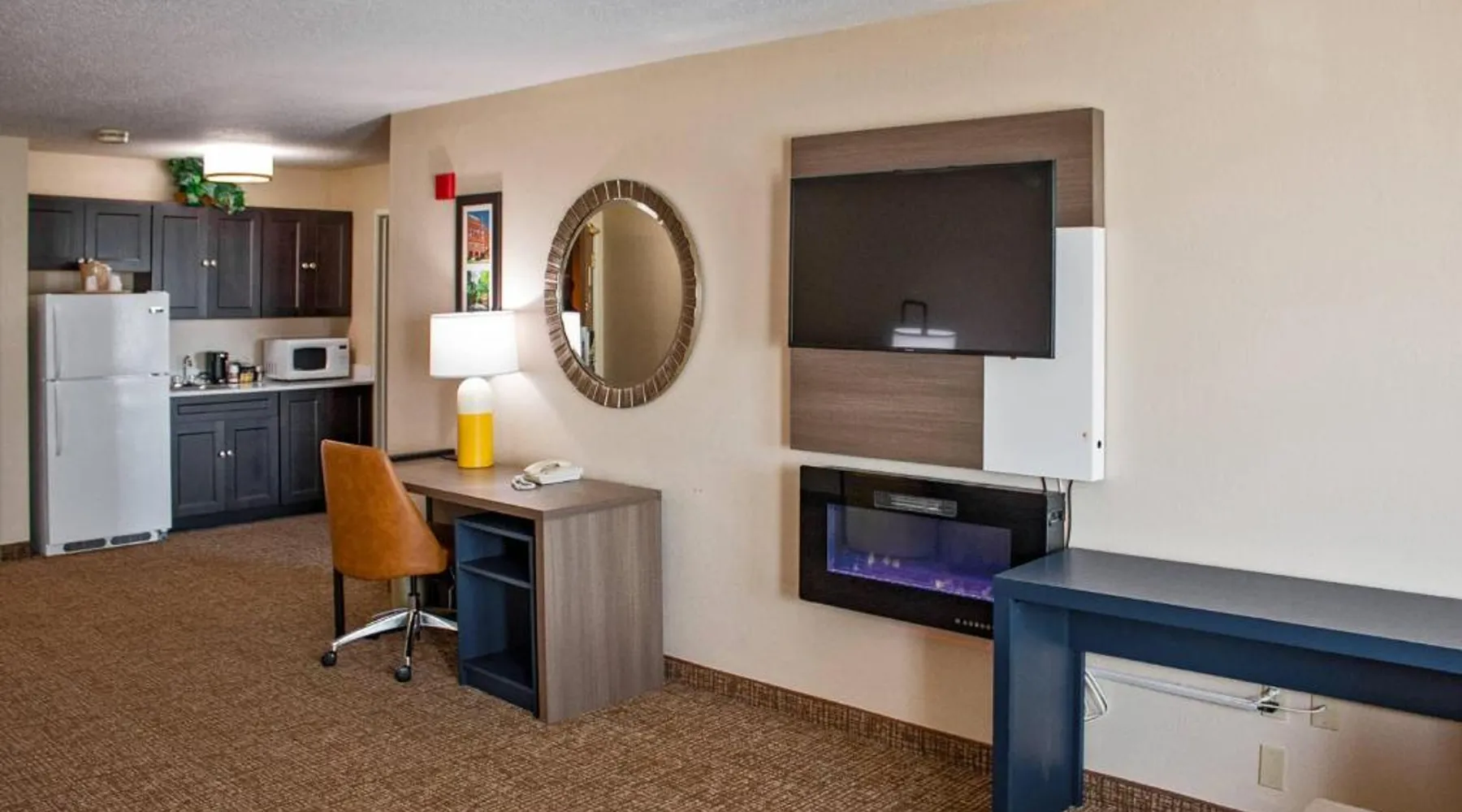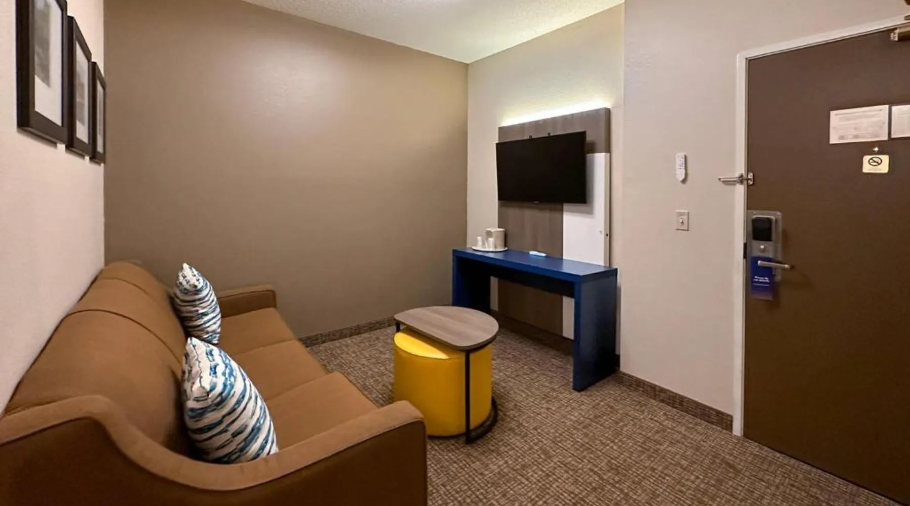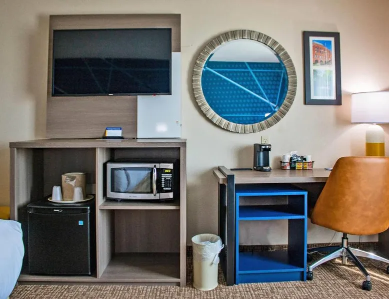 Comfortable Accommodations: Comfort Inn & Suites Geneva- West Chicago in Geneva offers air-conditioned rooms with private bathrooms, free WiFi, and modern amenities. Each room includes a work desk, TV, and complimentary toiletries. Leisure Facilities: Guests can enjoy an indoor swimming pool, hot tub, and spa bath. Additional amenities include a lounge, outdoor seating area, and picnic space. Free on-site private parking is available. Dining Options: A variety of breakfast options are provided, including continental, buffet, and vegetarian. Breakfast includes warm dishes, fresh pastries, pancakes, cheese, fruits, and juice. Convenient Location: Located 23 mi from Chicago O'Hare International Airport, the hotel is near Northwestern Medicine Field (1.1 mi) and Batavia Depot Museum (3 mi). Guests appreciate the convenient location and room cleanliness. This double room's standout feature is the hot tub. The spacious double room offers air conditioning, a tea and coffee maker, as well as a private bathroom featuring a bath and a shower. The double room provides a seating area, a carpeted floor, heating, as well as a flat-screen TV with cable channels. The unit offers 1 bed.