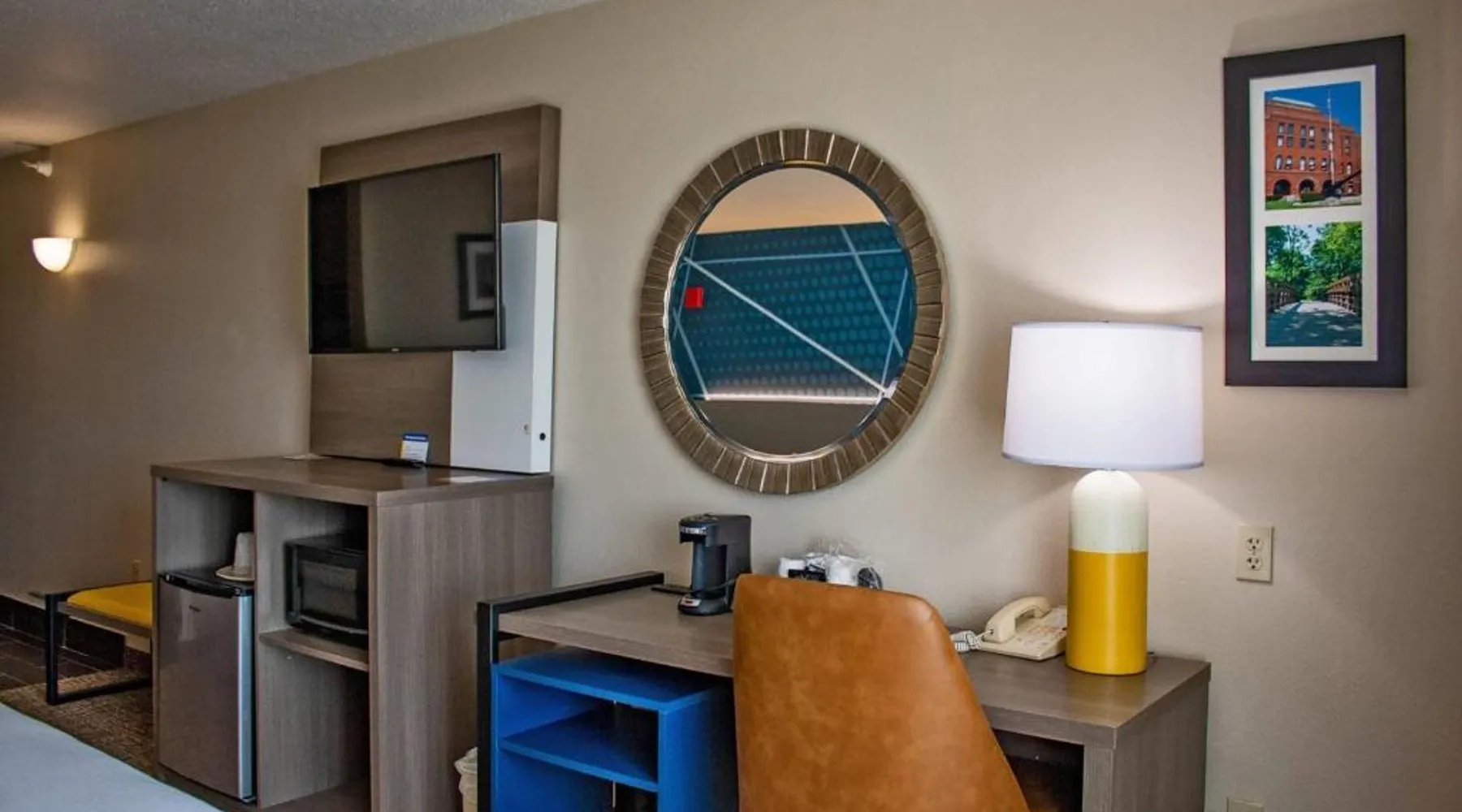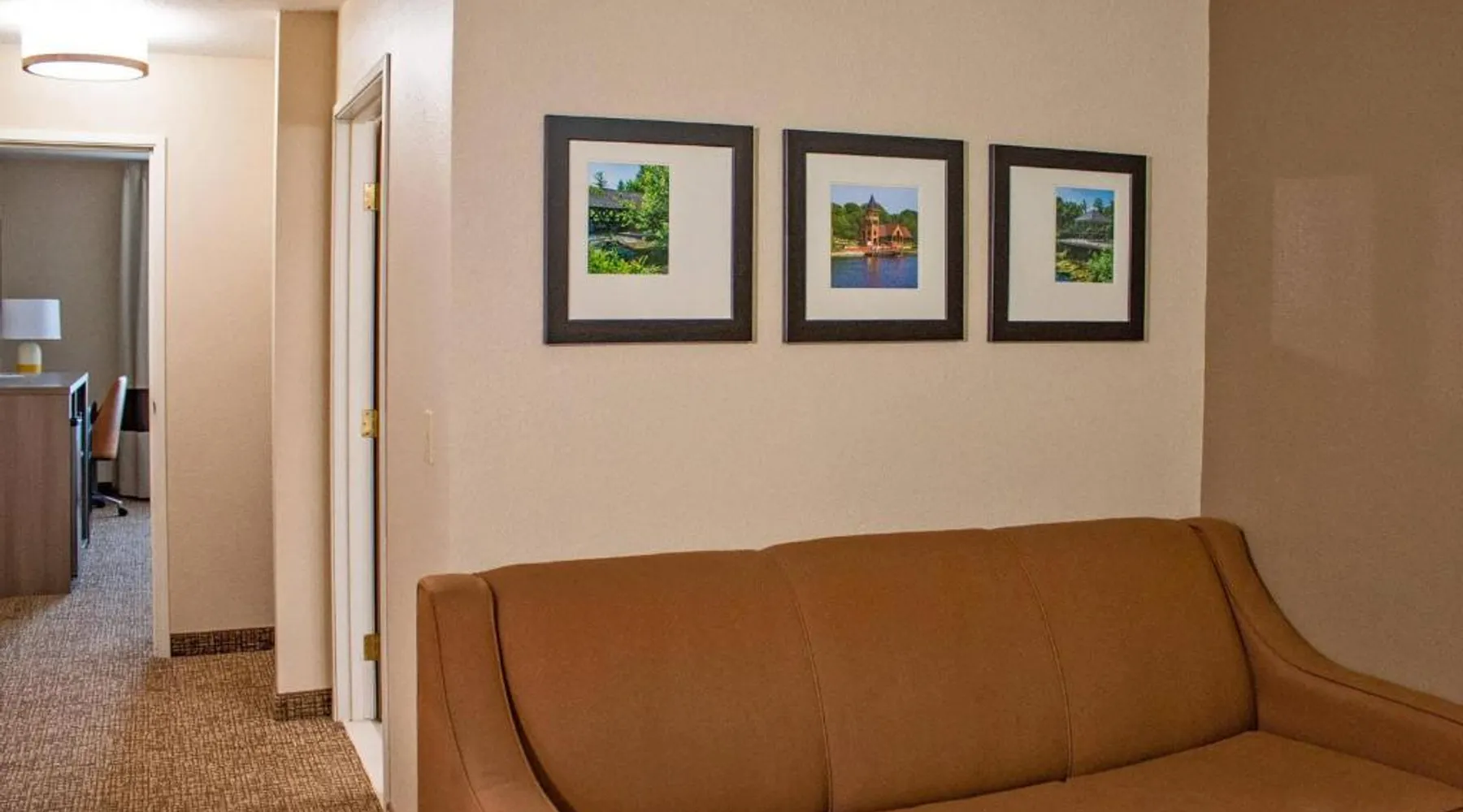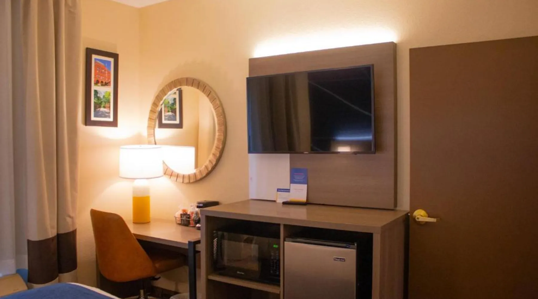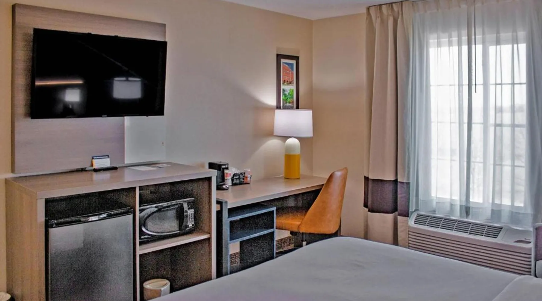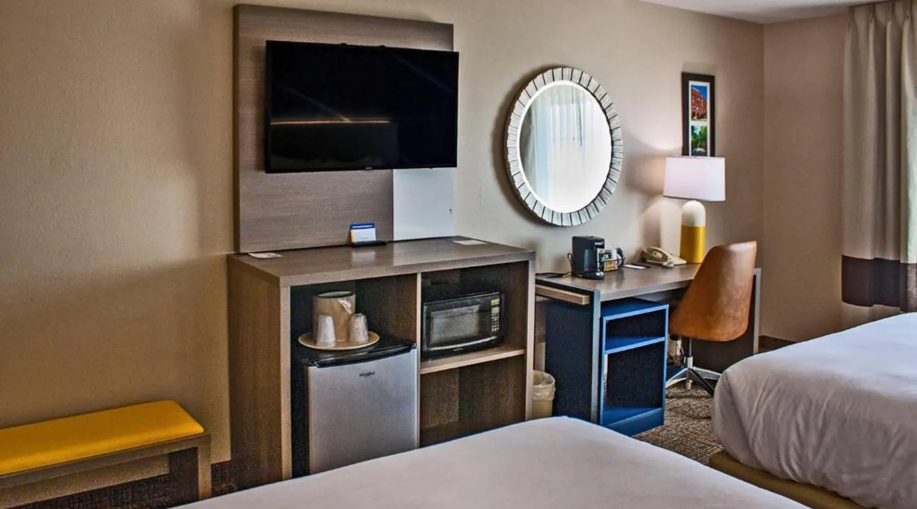 Comfortable Accommodations: Comfort Inn & Suites Geneva- West Chicago in Geneva offers air-conditioned rooms with private bathrooms, free WiFi, and modern amenities. Each room includes a work desk, TV, and complimentary toiletries. Leisure Facilities: Guests can enjoy an indoor swimming pool, hot tub, and spa bath. Additional amenities include a lounge, outdoor seating area, and picnic space. Free on-site private parking is available. Dining Options: A variety of breakfast options are provided, including continental, buffet, and vegetarian. Breakfast includes warm dishes, fresh pastries, pancakes, cheese, fruits, and juice. Convenient Location: Located 23 mi from Chicago O'Hare International Airport, the hotel is near Northwestern Medicine Field (1.1 mi) and Batavia Depot Museum (3 mi). Guests appreciate the convenient location and room cleanliness. This double room's standout feature is the hot tub. The spacious double room offers air conditioning, a tea and coffee maker, as well as a private bathroom featuring a bath and a shower. The double room provides a seating area, a carpeted floor, heating, as well as a flat-screen TV with cable channels. The unit offers 1 bed.