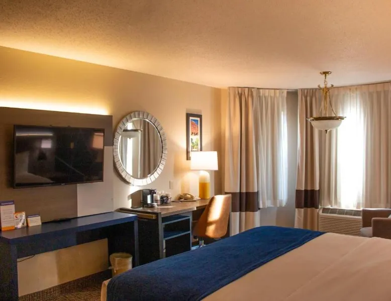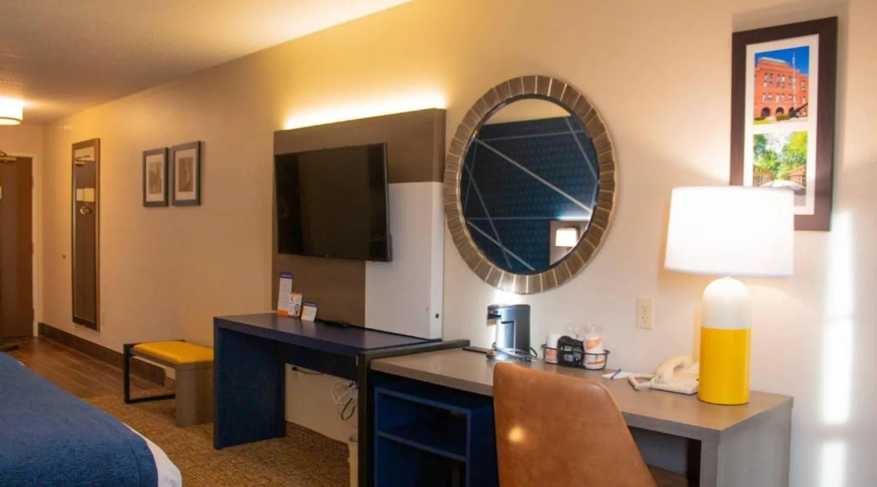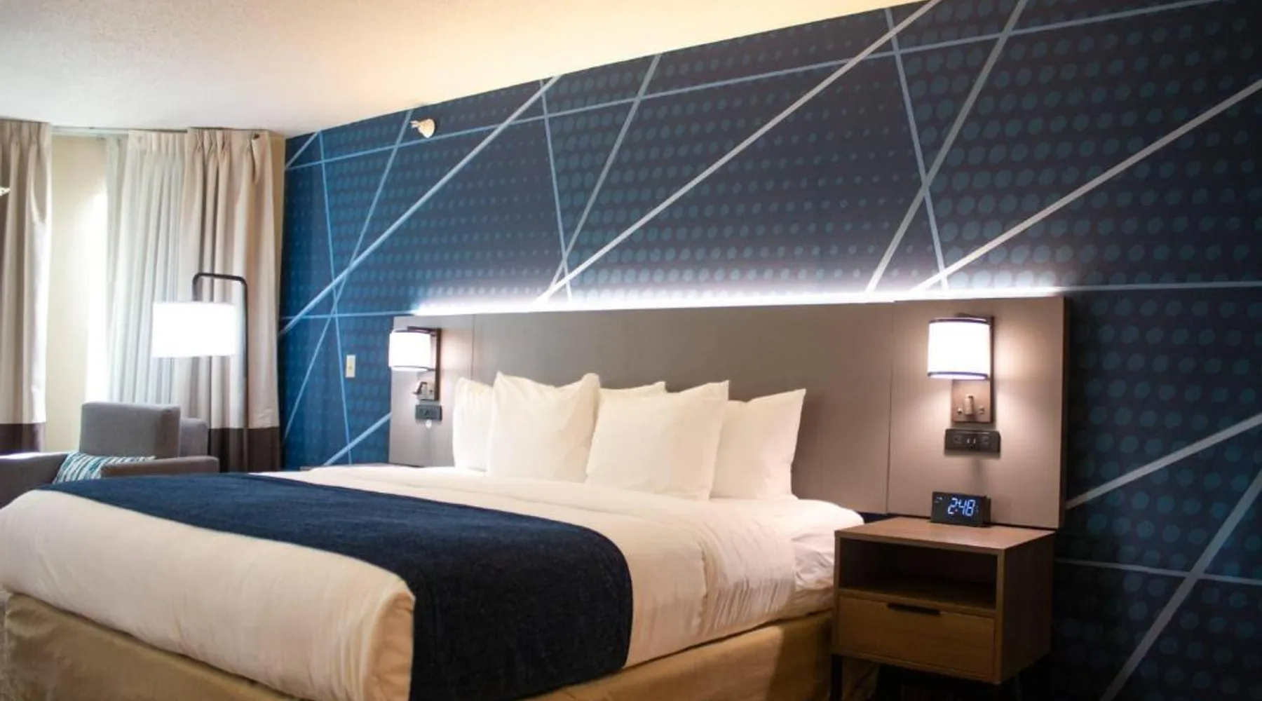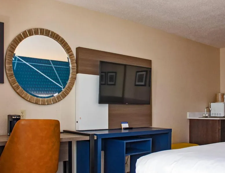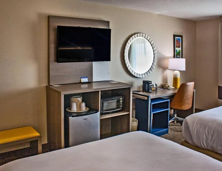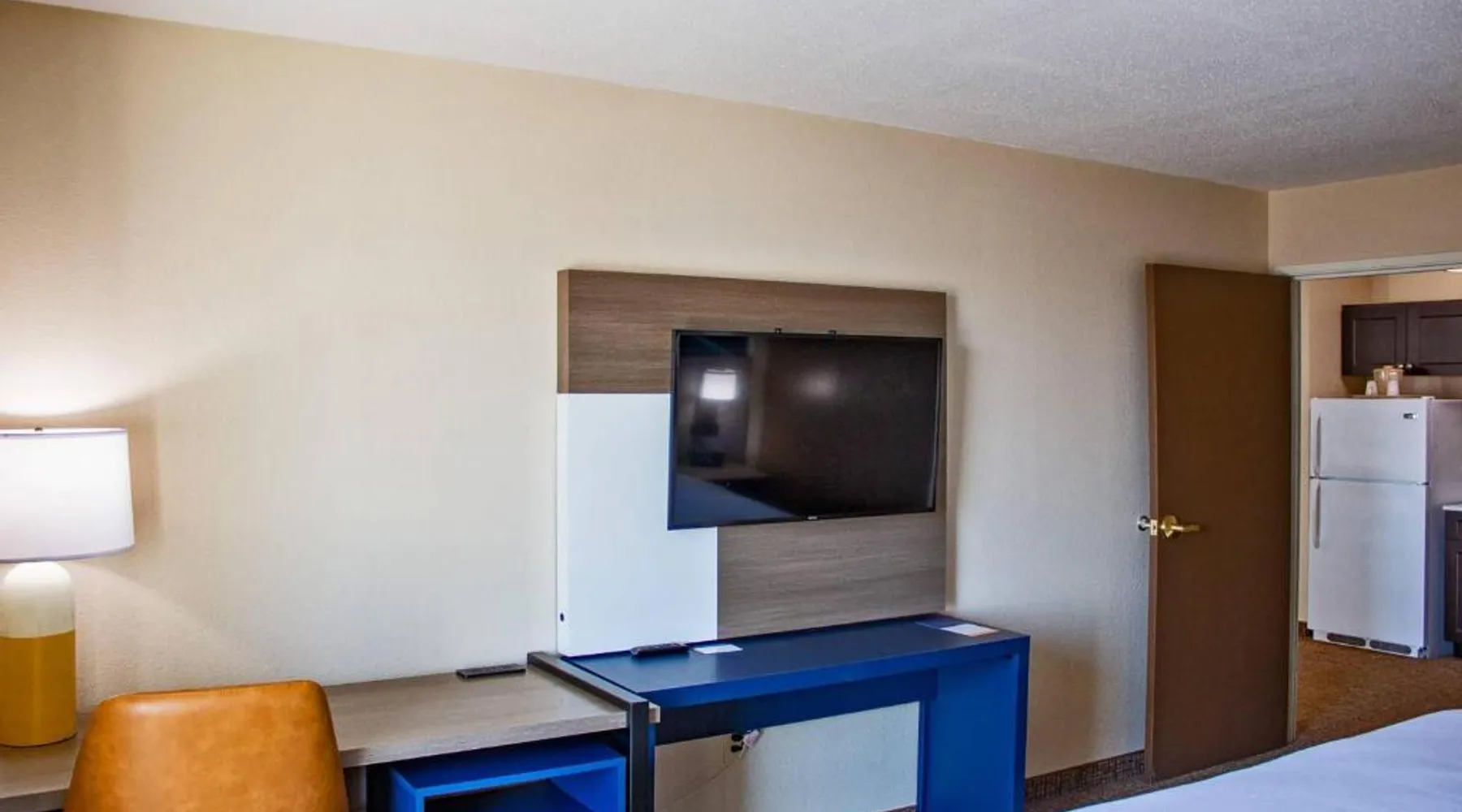 Comfortable Accommodations: Comfort Inn & Suites Geneva- West Chicago in Geneva offers air-conditioned rooms with private bathrooms, free WiFi, and modern amenities. Each room includes a work desk, TV, and complimentary toiletries. Leisure Facilities: Guests can enjoy an indoor swimming pool, hot tub, and spa bath. Additional amenities include a lounge, outdoor seating area, and picnic space. Free on-site private parking is available. Dining Options: A variety of breakfast options are provided, including continental, buffet, and vegetarian. Breakfast includes warm dishes, fresh pastries, pancakes, cheese, fruits, and juice. Convenient Location: Located 23 mi from Chicago O'Hare International Airport, the hotel is near Northwestern Medicine Field (1.1 mi) and Batavia Depot Museum (3 mi). Guests appreciate the convenient location and room cleanliness. This double room's standout feature is the hot tub. The spacious double room offers air conditioning, a tea and coffee maker, as well as a private bathroom featuring a bath and a shower. The double room provides a seating area, a carpeted floor, heating, as well as a flat-screen TV with cable channels. The unit offers 1 bed.