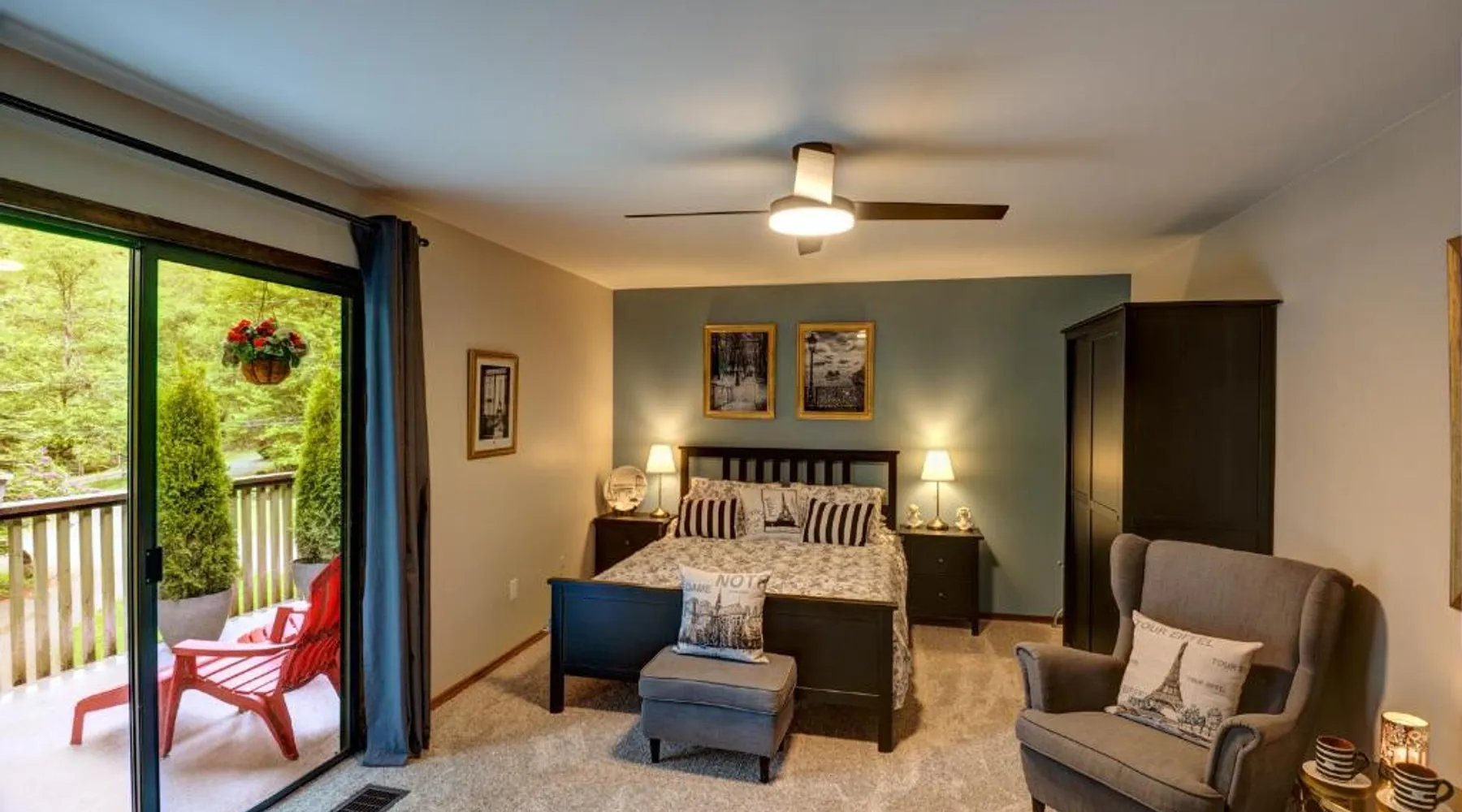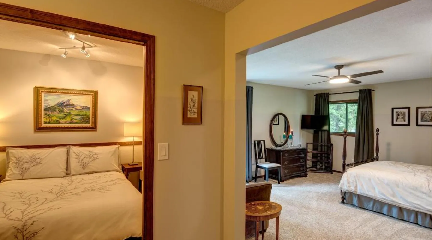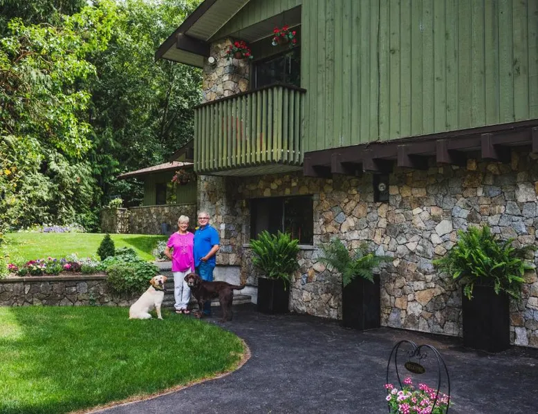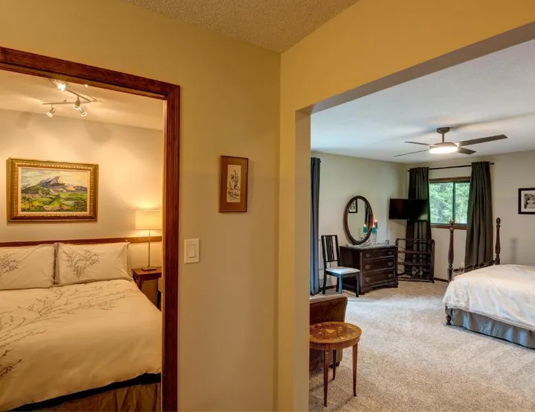 Elegant Accommodations: Misty Meadows B and B in Langford offers family rooms with private bathrooms, balconies, and garden views. Each room includes a TV, soundproofing, and free WiFi. Outdoor Spaces: Guests can relax on the sun terrace or in the garden. The property features an outdoor seating area, picnic spots, and free on-site private parking. Comfortable Amenities: The bed and breakfast provides free WiFi, a work desk, and soundproofing. Additional amenities include bathrobes, a dining area, and a sofa bed. Dining Options: Breakfast options include American, full English/Irish, vegetarian, and gluten-free. The dining area offers outdoor seating and a variety of menus. Location and Attractions: Located 9.9 mi from Victoria Inner Harbor Airport, the property is near Camosun College (5.6 mi) and The Butchart Gardens (9.3 mi). A balcony with garden views is offered in this room. Free Wi-Fi, a flat-screen cable TV and a sofa are provided.