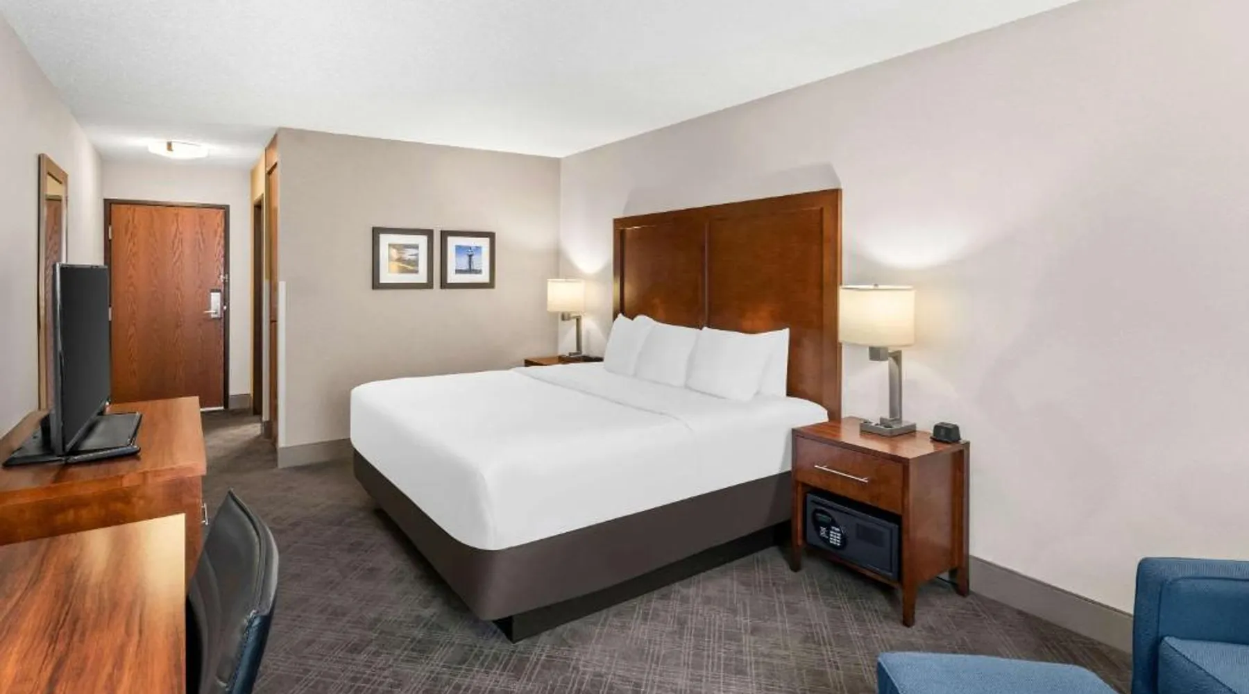 Located in Duluth, Comfort Inn Duluth West is 3.1 mi from Lake Superior and the Aerial Elevator Bridge. This hotel offers a 24-hour front desk and continental breakfast. Free WiFi is offered. Rooms are equipped with a flat-screen television, coffee maker, hair dryer and an iron. A refrigerator and microwave are included in every room. King rooms offer a seating area and work desk. A weeknight hospitality hour with appetizers, mixed drinks, beer and wine is offered. The hotel offers a free 24-hour coffee and tea bar. Guests can also enjoy the indoor heated pool, hot tub and sauna. A business center and guest laundry facilities are available. Enger Park and Tower is 2.1 mi from the hotel, while Great Lakes Aquarium is 3.1 mi away. Duluth International Airport is 6.8 mi from the property. Providing free toiletries and bathrobes, this double room includes a private bathroom with a bath or a shower and a hairdryer. The spacious air-conditioned double room provides a flat-screen TV with cable channels, a tea and coffee maker, a seating area and a wardrobe. The unit offers 1 bed.