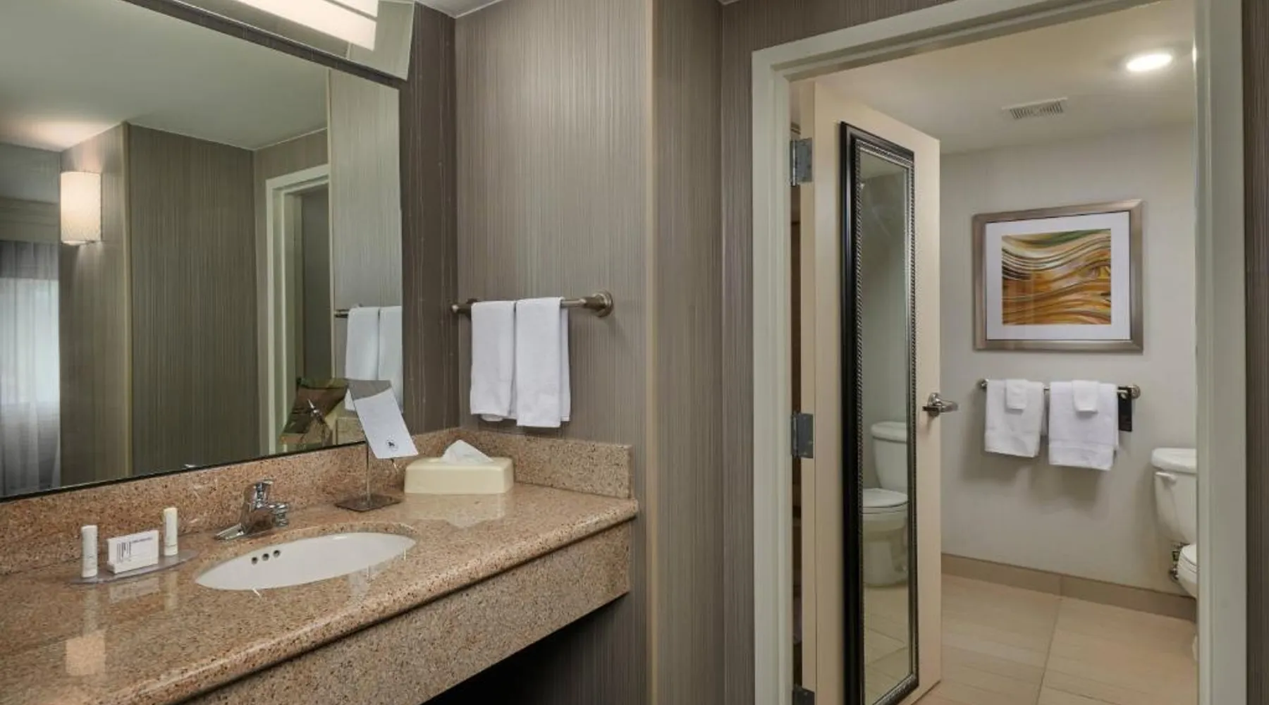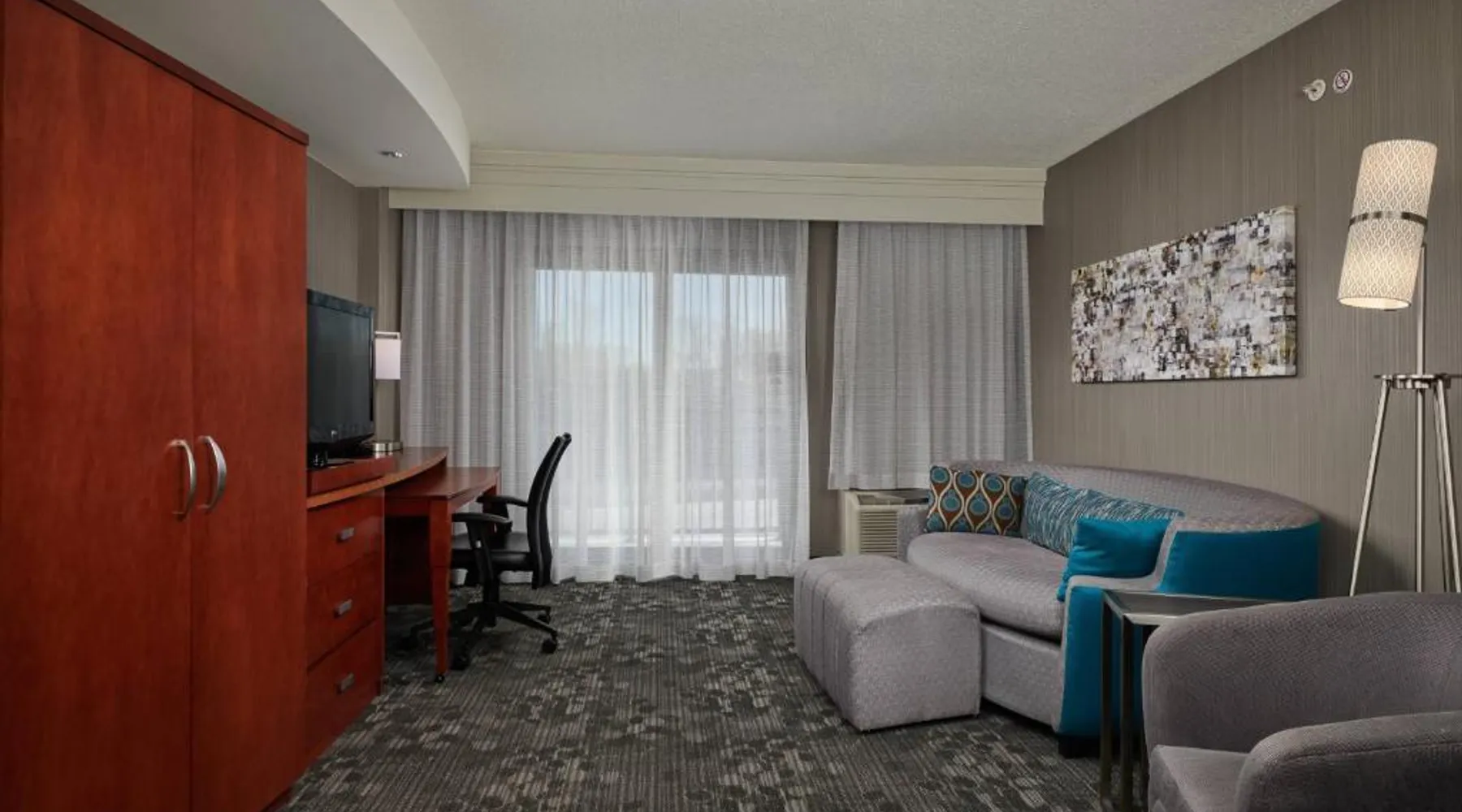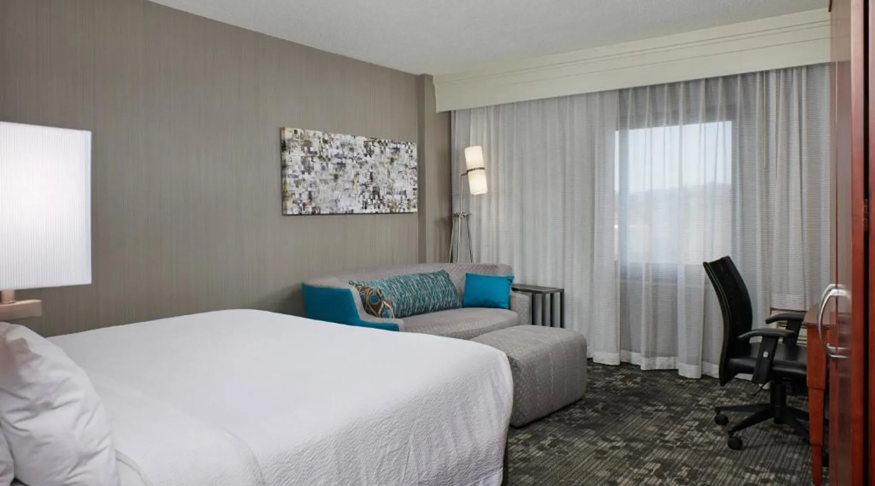 Comfortable Accommodations: Courtyard Bristol in Bristol offers rooms with air-conditioning, balconies, and private bathrooms. Each room includes a tea and coffee maker, free toiletries, and a work desk. Exceptional Facilities: Guests can enjoy a fitness center, indoor swimming pool, and free use of bicycles. The hotel features a restaurant, bar, and lounge, alongside a minimarket and 24-hour front desk. Convenient Location: Located 22 mi from Tri-Cities Regional Airport and 14 mi from Bristol Motor Speedway, the hotel provides easy access to local attractions. Guest Satisfaction: Visitors appreciate the convenient location, attentive staff, and impeccable room cleanliness. Featuring separate living, sleeping and working areas, this room offers a sofa bed, a microwave, a refrigerator and a coffee maker.