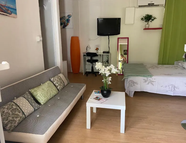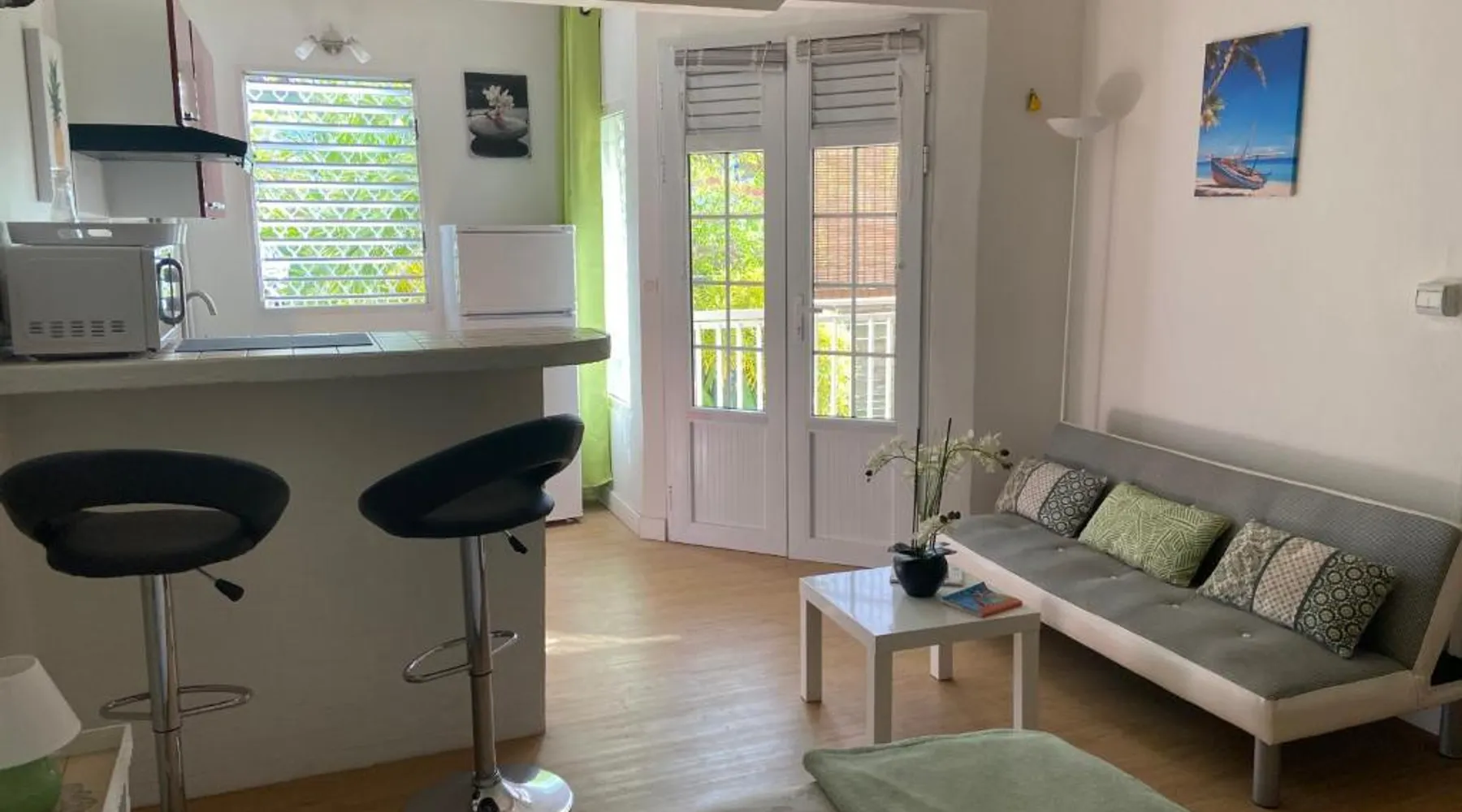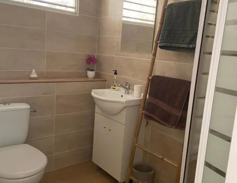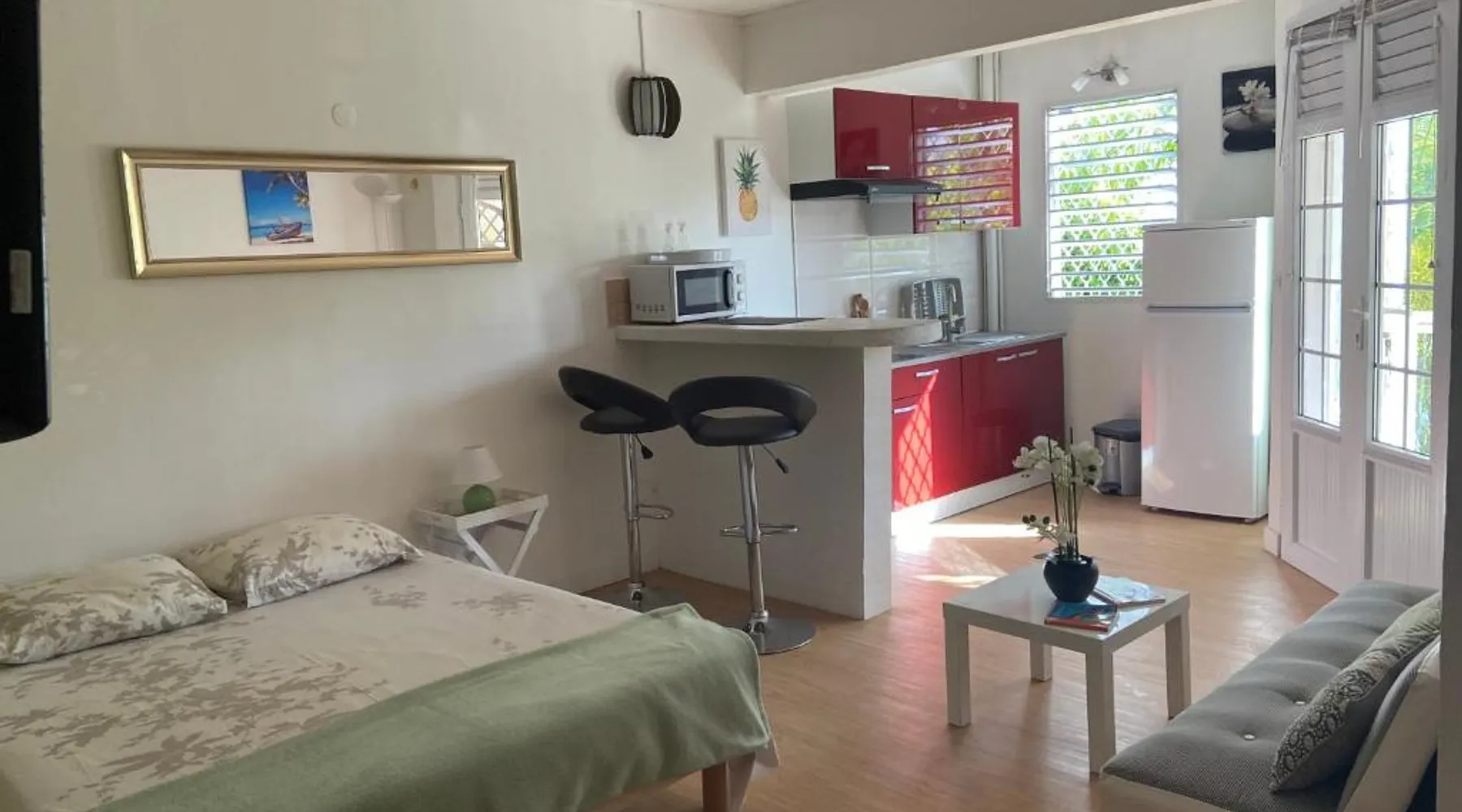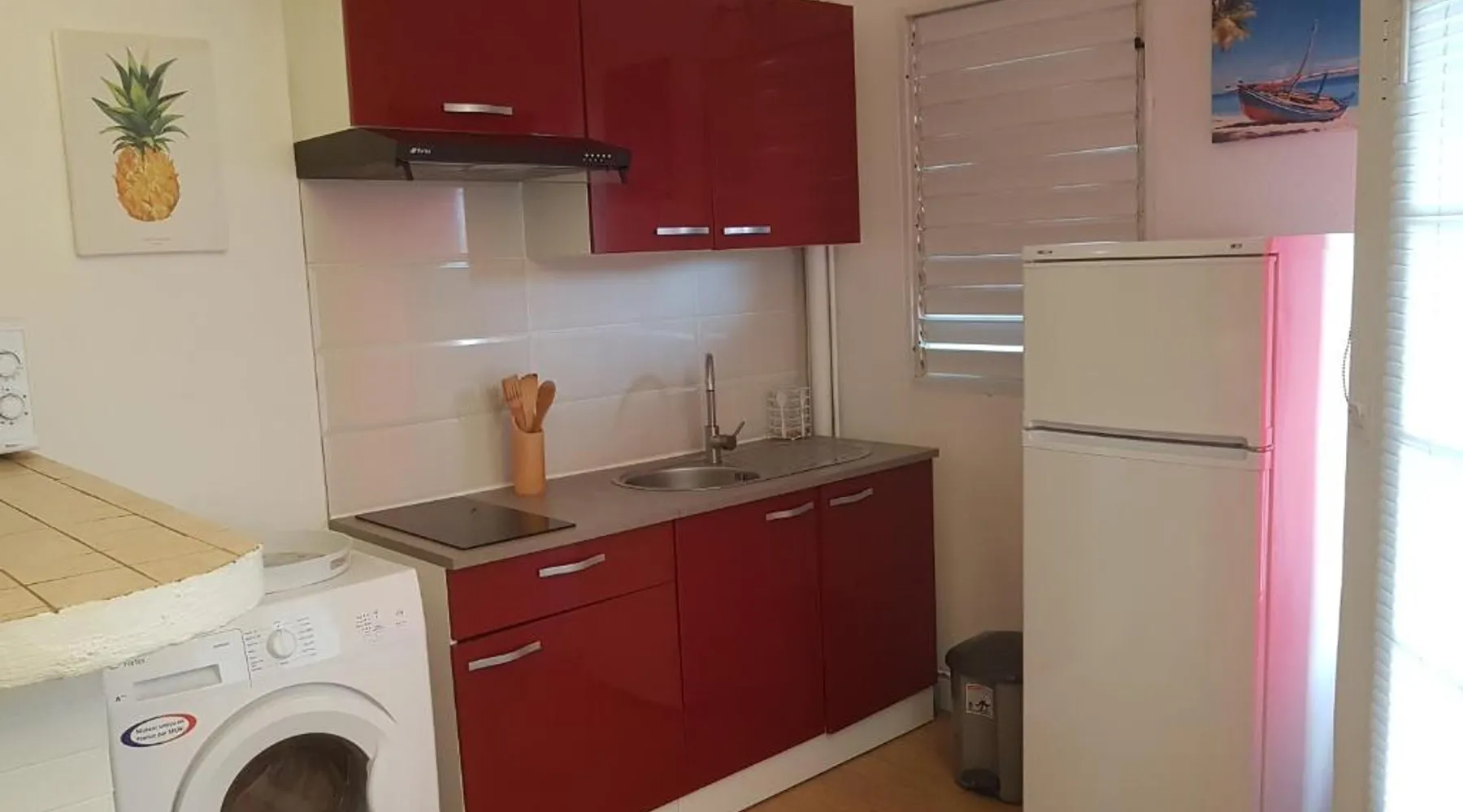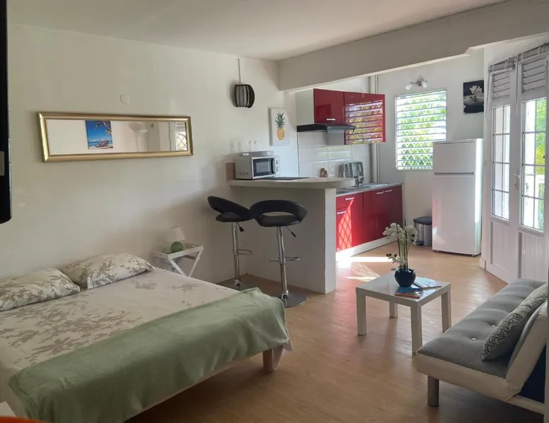 Comfortable Living Space: LES HAUTS DE L'ANSE in Les Trois Ilets offers a one-bedroom apartment with a terrace and garden views. The ground-floor unit features a kitchenette, washing machine, and parquet floors. Modern Amenities: Guests enjoy free WiFi, air-conditioning, and a work desk. The apartment includes a dining area, sofa bed, and a TV. Additional facilities include a tennis court and paid shuttle service. Convenient Location: Located 16 mi from Martinique Aime Cesaire International Airport, the property is steps from Anse Mitan and 1.2 mi from Anse a l'Ane Beach. Nearby activities include fishing, walking tours, and scuba diving. Highly rated by guests. In the fully equipped kitchen, guests will find a stovetop, a refrigerator, kitchenware and a microwave. The air-conditioned apartment provides a flat-screen TV with satellite channels, a washing machine, a private entrance, a tea and coffee maker as well as garden views. The unit offers 1 bed.