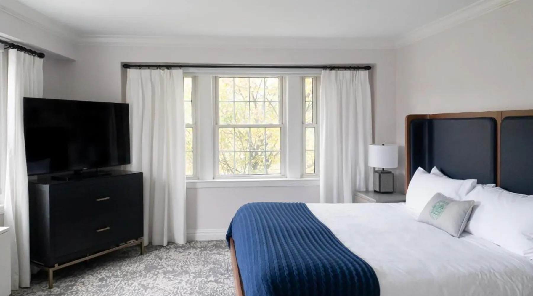 Located in the center of the Dartmouth College campus in Hanover, New Hampshire, this historic hotel features on-site dining, a gym, and rooms with free Wi-Fi. Each colonial-style room at Hanover Inn Dartmouth is furnished with dark hardwood furniture. They are equipped with cable TV and a work desk. Room service is available. PINE, the on-site restaurant, offers dining with a farm-to-table philosophy, featuring ingredients available in and around New England. The Montshire Museum of Science is a mile from Hanover Inn Dartmouth at Dartmouth College. The Hopkins Center for the Arts and the Hood Museum are connected to the property. This room has a flat-screen TV.