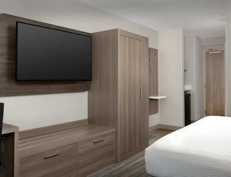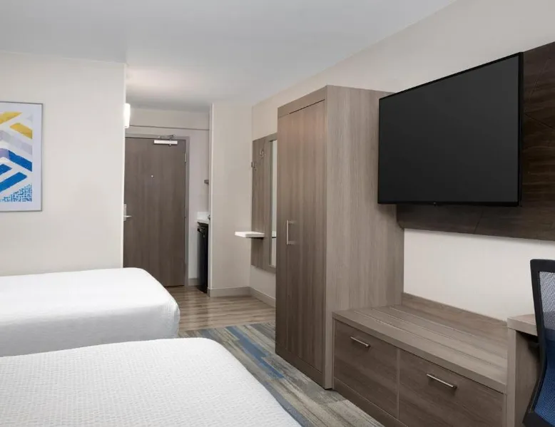 Located 10 miles from downtown Washington D.C., this hotel offers free Wi-Fi. Guest rooms include cable TV, a microwave and a refrigerator. At the Holiday Inn Express Washington DC-BW Parkway, each room includes coffee facilities. The rooms also provide a safety deposit box and bathroom amenities. A gym and a business center are located at the Holiday Inn Express Washington D.C. The hotel also includes vending machines. The University of Maryland is 8.6 miles from the hotel. Fort George G. Meade is 8.5 miles from the Holiday Inn Express BW Parkway. This room features a flat-screen TV, microwave, fridge and tea/coffee-making facilities.