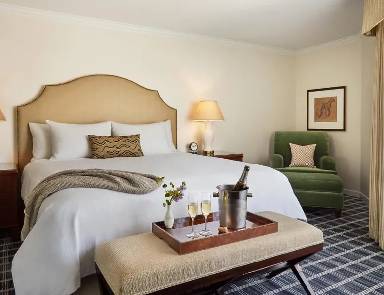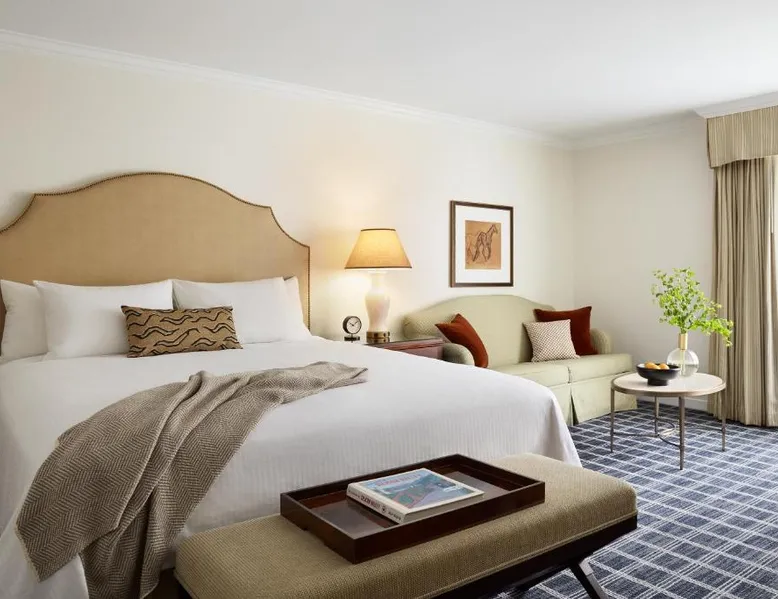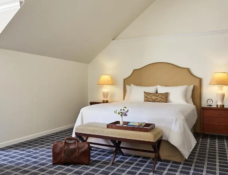 Next to Stanford University, on the San Francisco Peninsula, this Menlo Park, California hotel offers luxury amenities, contemporary guestrooms and a lively on-site restaurant. The Stanford Park Hotel is a completely nonsmoking hotel with a year-round heated swimming pool and hot tub. Guests can enjoy an intense workout in the fitness center or relax by the firepits with a glass of wine. From live music in the courtyard during the summer, to plush sofas by the fireplace in the living room, there is something perfect to fit every mood. All guestrooms at The Stanford Park are spacious and feature upscale bedding, with sofas or oversize chairs with an ottoman. The newly updated bathrooms feature double vanities and walk-in showers, plush bathrobes, and bath linens. Additional amenities include bottled water, Nespresso coffee makers and Bodum tea kettles. The Menlo Tavern at The Stanford Park Hotel serves elevated American cuisine for breakfast, lunch, dinner and weekend brunches. Guests can also relax with a craft cocktail or sample a glass of wine or beer from a unique regional collection at the elegant hotel lounge. The Stanford Park Hotel charges a nightly amenity/destination fee of $20 per room. This amenity/destination fee is taxable at 12% and is not in itself a tax. The total amenity/destination fee inclusive of tax is $22.40. Hotel amenities and services include self-parking, wired and wireless internet in guest rooms and public spaces, 24-hour fitness center access, local and toll-free telephone calls, borrow a bicycle program (including two e-bikes), welcome beverages provided by the reception staff, daily morning coffee service from 6am-10am, freshly baked cookies served nightly from 8PM to 9PM, shoeshine service. This triple room's special feature is the fireplace. The spacious triple room provides air conditioning, a tea and coffee maker and a safe deposit box. The unit offers 1 bed.