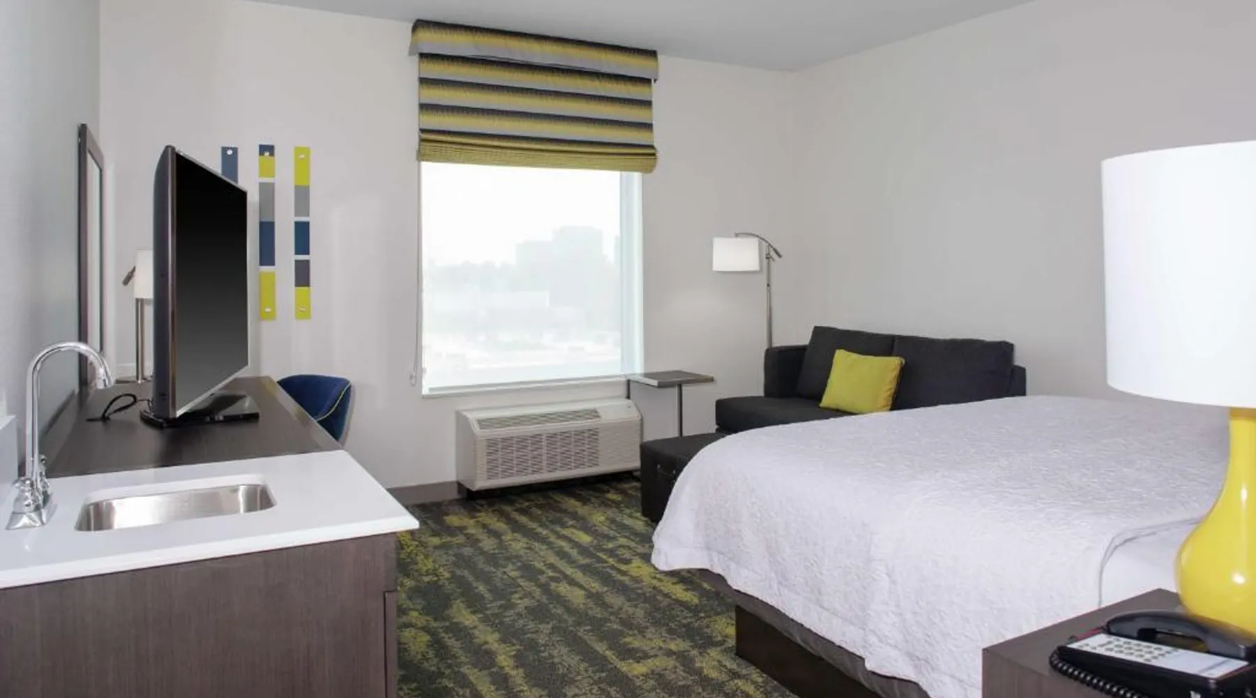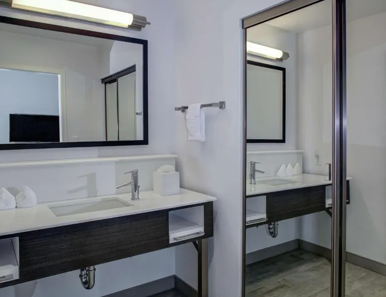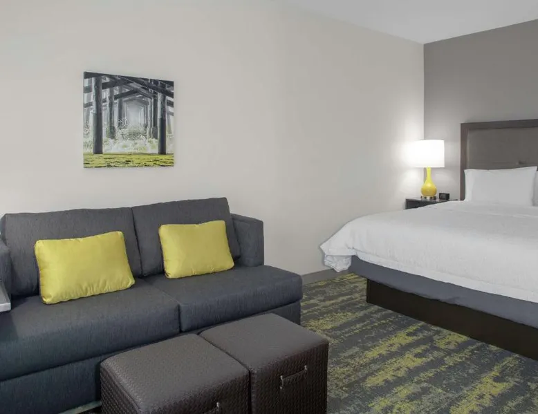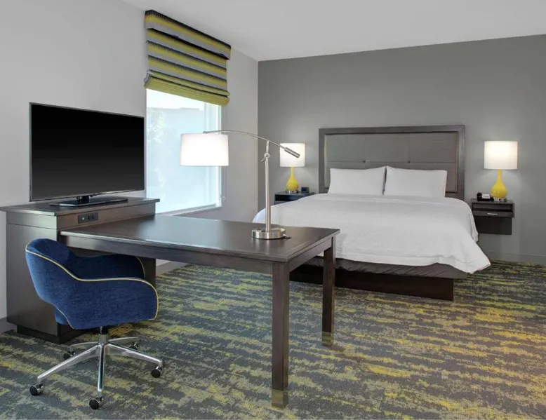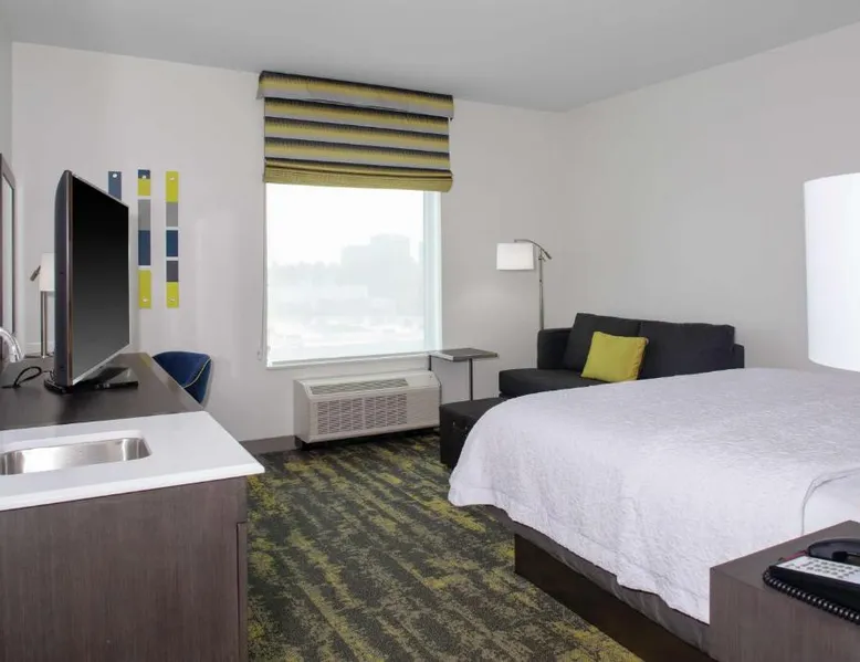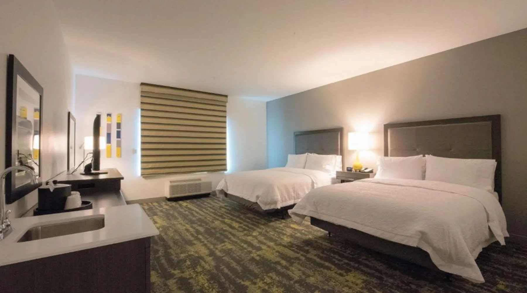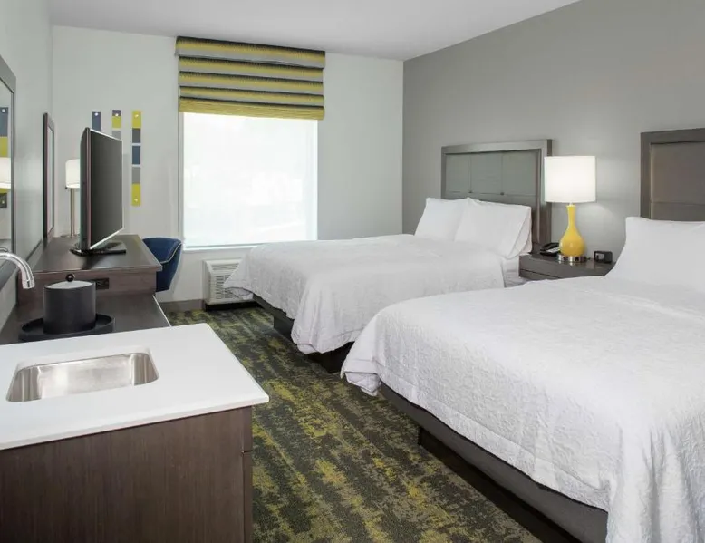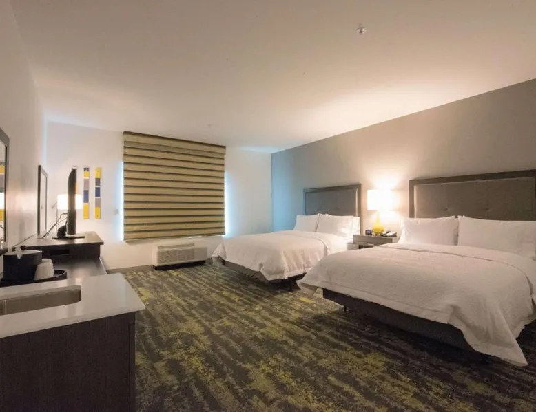 Comfortable Accommodations: Hampton Inn & Suites Irvine/Orange County Airport in Irvine offers family rooms with private bathrooms, sofa beds, and modern amenities including free WiFi, air-conditioning, and flat-screen TVs. Exceptional Facilities: Guests can enjoy a fitness center, sun terrace, outdoor swimming pool, and a bar. Additional facilities include a lounge, business area, and free airport shuttle service. Convenient Location: Located 0.6 mi from John Wayne Airport, the hotel is near attractions such as South Coast Plaza (3.1 mi), Fashion Island (5.6 mi), and Disneyland (13 mi). Paid on-site private parking is available. Guest Satisfaction: Highly rated for its breakfast, room cleanliness, and convenient location. This studio features a tea and coffee maker, a seating area and a TV. The unit offers 2 beds.