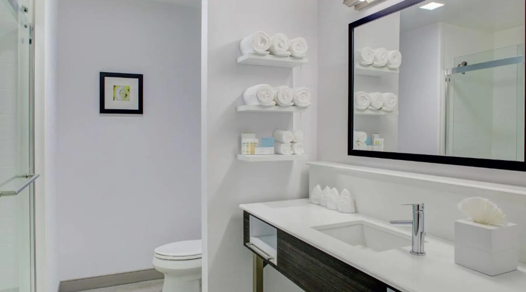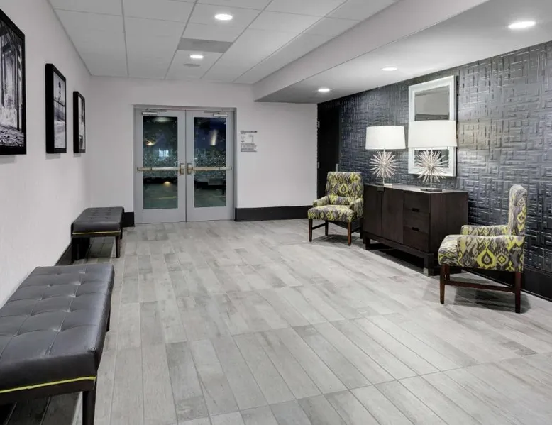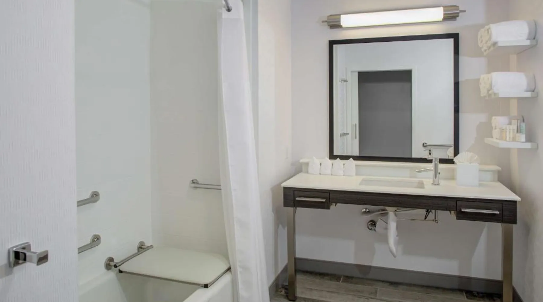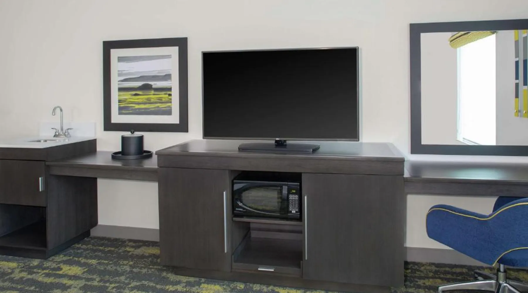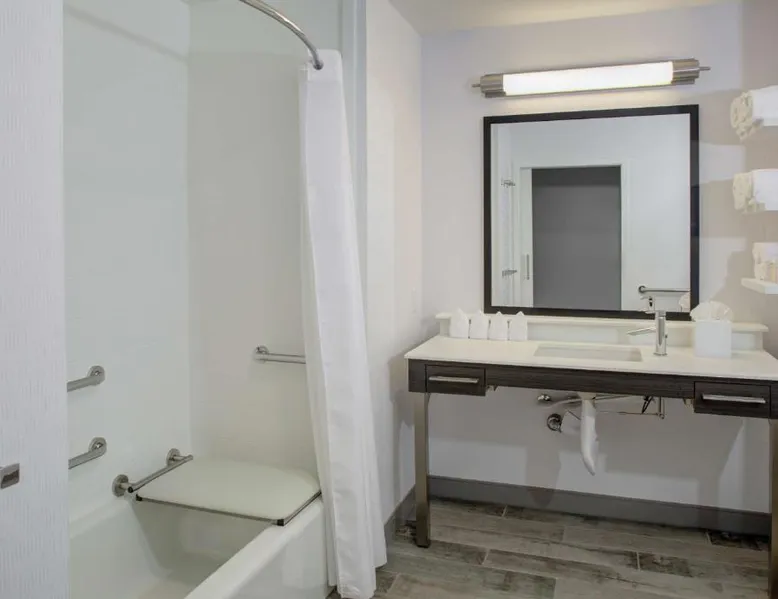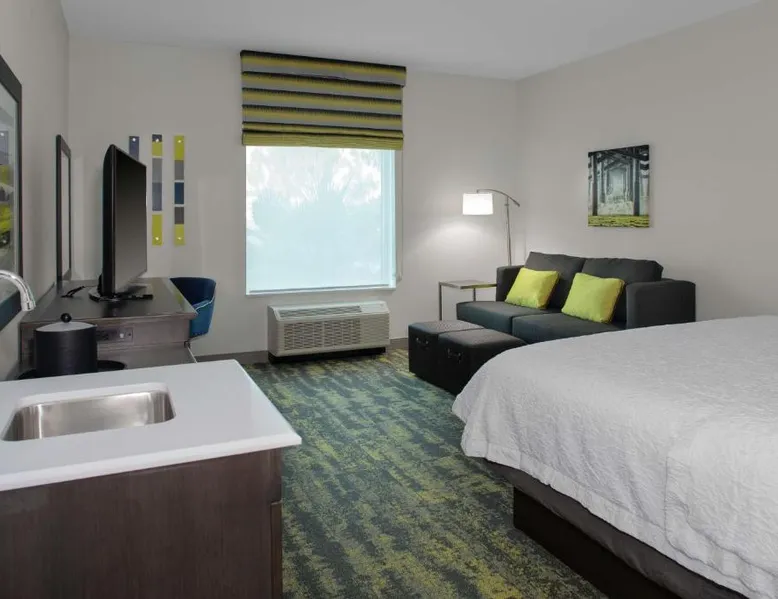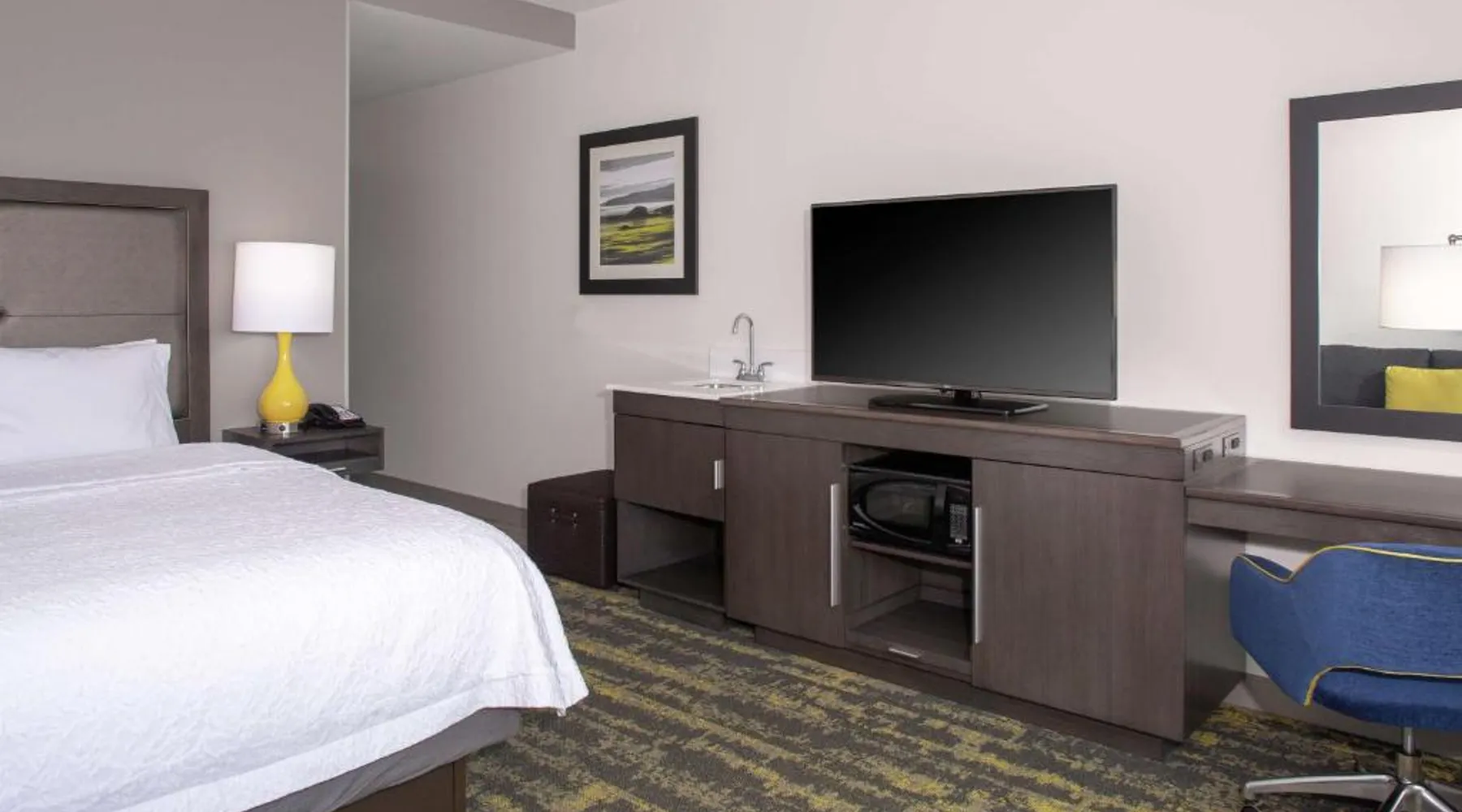 Comfortable Accommodations: Hampton Inn & Suites Irvine/Orange County Airport in Irvine offers family rooms with private bathrooms, sofa beds, and modern amenities including free WiFi, air-conditioning, and flat-screen TVs. Exceptional Facilities: Guests can enjoy a fitness center, sun terrace, outdoor swimming pool, and a bar. Additional facilities include a lounge, business area, and free airport shuttle service. Convenient Location: Located 0.6 mi from John Wayne Airport, the hotel is near attractions such as South Coast Plaza (3.1 mi), Fashion Island (5.6 mi), and Disneyland (13 mi). Paid on-site private parking is available. Guest Satisfaction: Highly rated for its breakfast, room cleanliness, and convenient location. This studio features a tea and coffee maker, a seating area and a TV. The unit offers 2 beds.