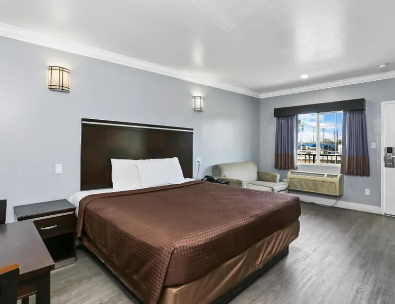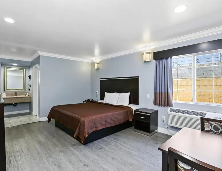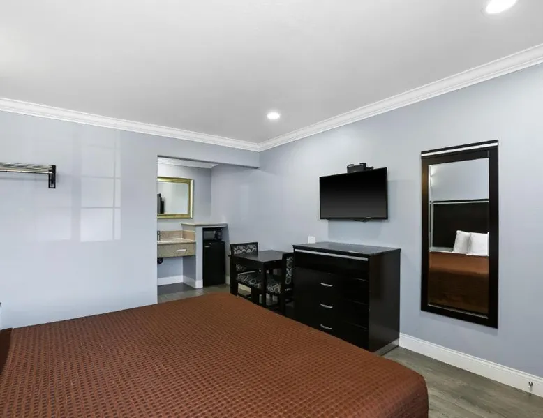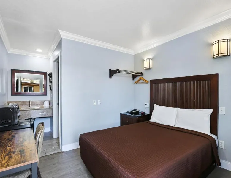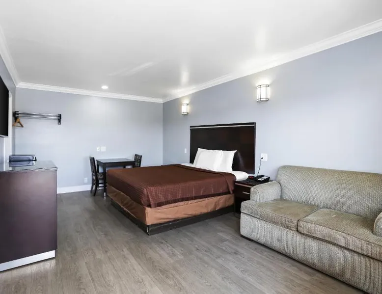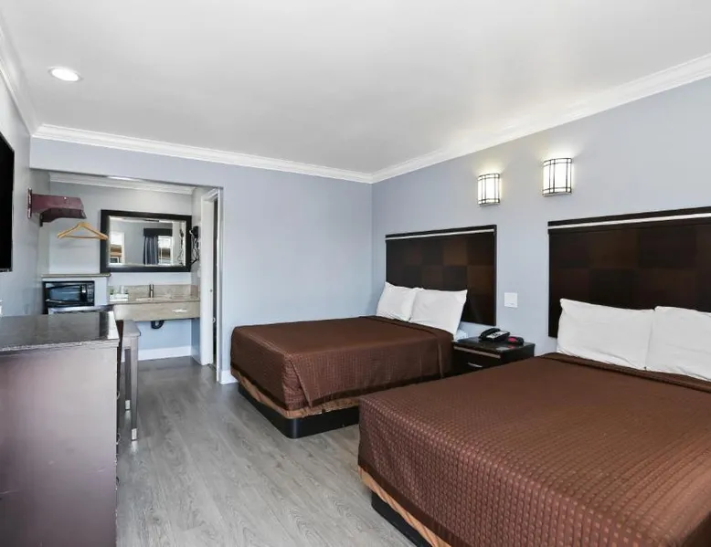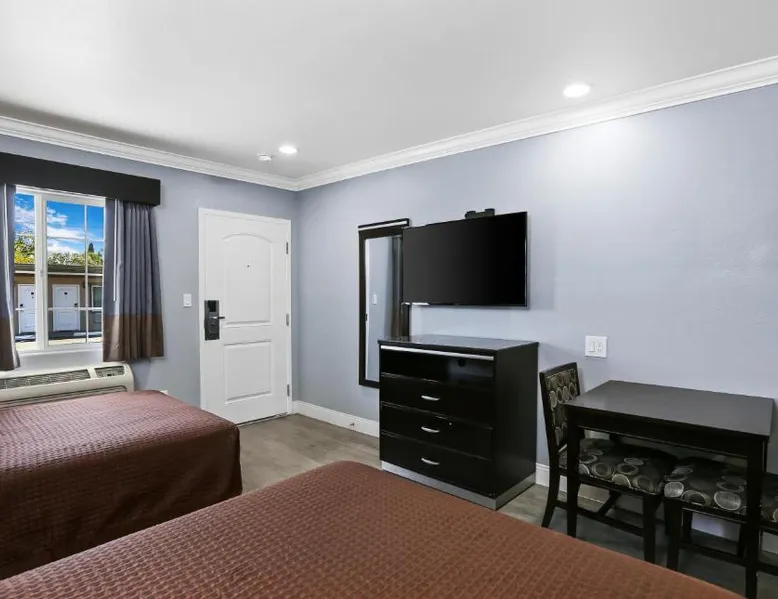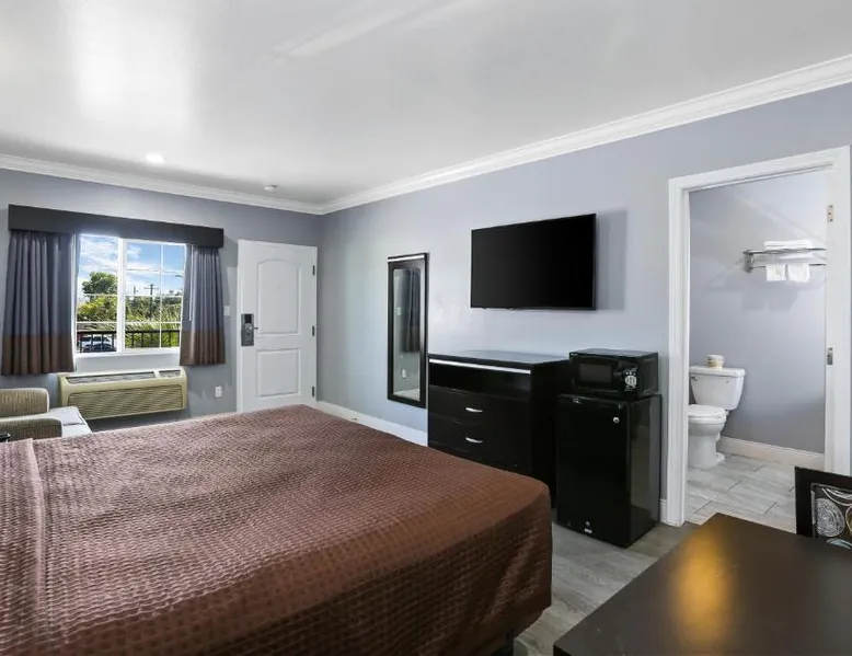 This California hotel is 4 miles from Fullerton Amtrak Station and offers free WiFi. Accommodations at Harbor Inn & Suites La Habra provide microwaves and refrigerators. Decorated with light brown accents, each guest room is equipped with a flat-screen cable TV with extended film and sports channels such as HBO and ESPN. There is a work desk in each room. Kitchenette rooms and suites with spa baths are available. During their stay, guests can enjoy free local calls and free parking. The hotel also offers a 24-hour front desk. La Habra Harbor Inn & Suites is within 2 miles of Fullerton Municipal Golf Course and The Children’s Museum at La Habra. California State University is 5 miles away. The unit offers 2 beds.