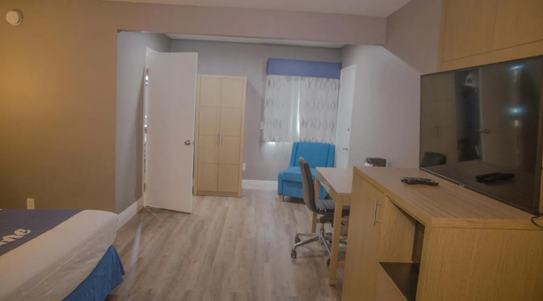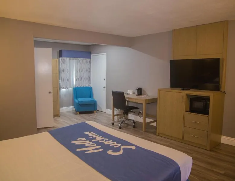 This hotel is located 1.5 miles from downtown Redwood City and 4.4 miles from Stanford University. It features spacious rooms with a flat-screen cable TV and serves a grab and go breakfast. A microwave, refrigerator and coffee maker are standard in every room at the Days Inn Redwood City. All rooms include free WiFi and a work desk. Free access to the seasonal outdoor pool is provided to all guests of the Redwood City Days Inn. A small gym and business center are also available. Parking is free at the Days Inn. Hiller Aviation Museum and Sharon Heights Golf Club are both within 11 minutes' drive away. This suite's special feature is the hot tub. Providing free toiletries, this suite includes a private bathroom with a walk-in shower, a bath and a hairdryer. The suite provides air conditioning, a tea and coffee maker, heating, a flat-screen TV with streaming services, as well as pool views. The unit offers 1 bed.