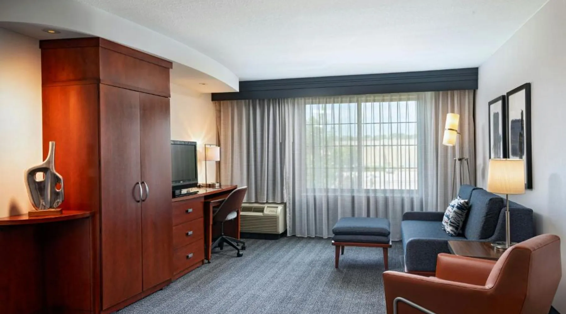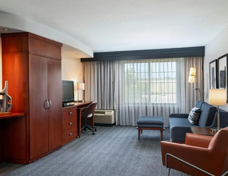 Comfortable Accommodations: Courtyard by Marriott Omaha Aksarben Village in Omaha offers air-conditioned rooms with private bathrooms, tea and coffee makers, and free WiFi. Each room includes a work desk, refrigerator, and seating area. Dining and Leisure: Guests can enjoy American cuisine at the on-site restaurant, which serves dinner with gluten-free options. The hotel features an indoor swimming pool, terrace, and bar. Free on-site parking is available. Convenient Location: Located 8.7 mi from Eppley Airfield, the hotel is near attractions such as Td Ameritrade Park Omaha (6.2 mi) and Omaha Community Playhouse (1.9 mi). An ice-skating rink is in the surrounding area. Highly rated by guests. Featuring a sofa bed, this room offers a small fridge and free Wi-Fi. Tea and coffee-making facilities are included.