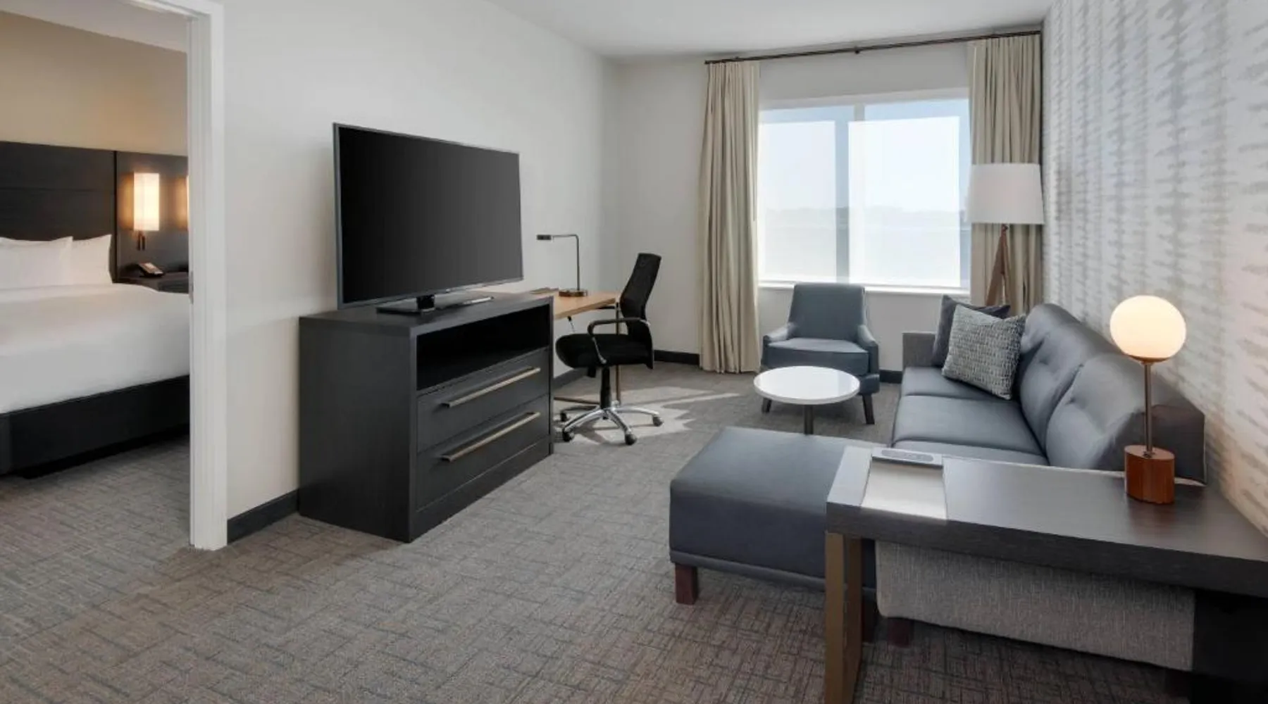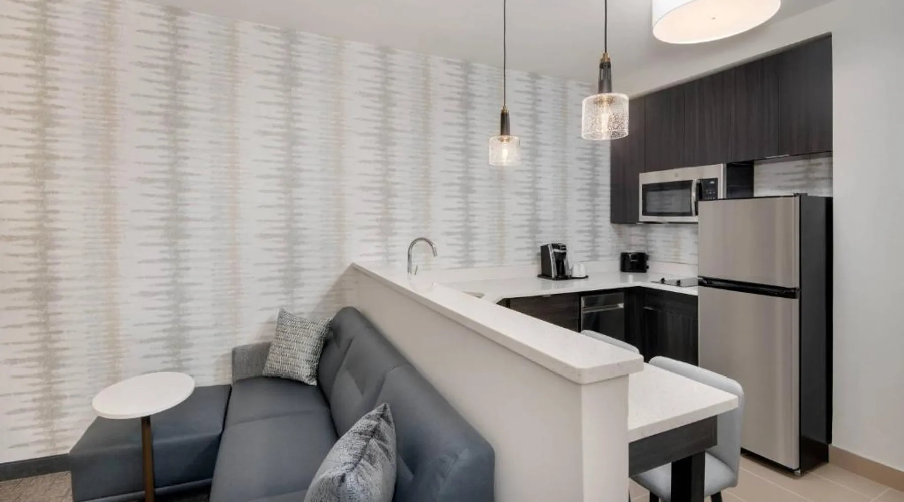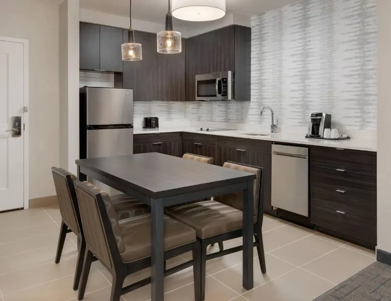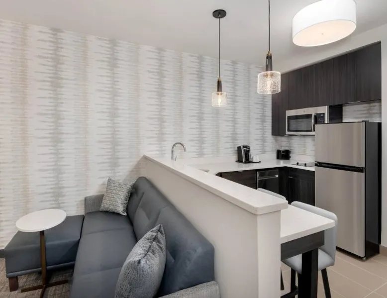 Comfortable Accommodations: Residence Inn by Marriott Indianapolis Keystone in Indianapolis offers spacious rooms with free WiFi, air-conditioning, and modern amenities. Each room includes a sofa bed, refrigerator, microwave, dishwasher, TV, and a tea and coffee maker. Exceptional Facilities: Guests can enjoy a fitness center, indoor swimming pool, terrace, bar, and free use of bicycles. Additional facilities include a 24-hour front desk, housekeeping service, electric vehicle charging station, and car hire. Convenient Location: Located 14 mi from Lucas Oil Stadium and 16 mi from Indianapolis Motor Speedway, the hotel is near attractions such as the Children's Museum of Indianapolis (9.9 mi) and the Indianapolis Museum of Art (11 mi). Free on-site parking is available. Highly Rated by Guests: Residence Inn by Marriott Indianapolis Keystone is highly rated by guests for its excellent service and comfortable accommodations. This suite features a tea and coffee maker and a TV.