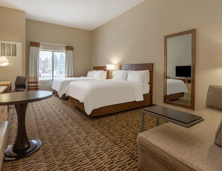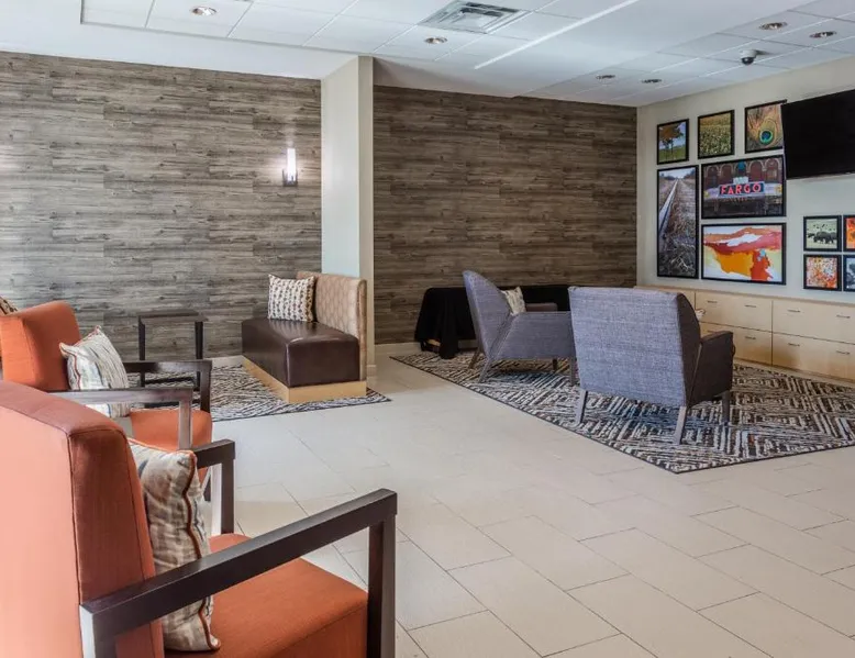 Comfortable Accommodations: Candlewood Suites Fargo South-Medical Center by IHG in Fargo offers family rooms with air-conditioning, private bathrooms, work desks, and carpeted floors. Each room includes a TV, wardrobe, and sofa bed. Exceptional Facilities: Guests enjoy an indoor swimming pool, fitness center, and free WiFi. Additional amenities include an outdoor fireplace, hot tub, 24-hour front desk, minimarket, business area, laundry service, outdoor seating, barbecue facilities, and luggage storage. Convenient Location: Located 5 mi from Hector International Airport, the hotel is near attractions such as Red River Zoo (1.3 mi), Fargo Civic Center (4.3 mi), and FargoDome (6.2 mi). Highly rated for its kitchen, room cleanliness, and comfort. This air-conditioned suite includes a flat-screen TV with cable channels and a private bathroom. The unit offers 2 beds.