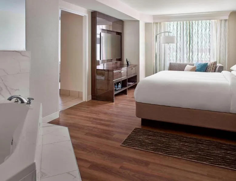 Comfortable Accommodations: Rooms feature air-conditioning, private bathrooms, and modern amenities such as free WiFi, flat-screen TVs, and work desks. Additional comforts include bathrobes, tea and coffee makers, and free toiletries. Dining Options: The hotel offers a traditional and modern restaurant serving Italian cuisine with vegetarian, gluten-free, and dairy-free options. Guests can enjoy brunch, lunch, and dinner in a welcoming atmosphere. Leisure Facilities: A seasonal outdoor swimming pool and indoor pool provide relaxation. The property also features a hot tub, fitness center, and outdoor seating areas. Convenient Location: Located in Augusta, the hotel is 7.5 mi from Augusta Regional Airport. Nearby attractions include the Augusta Museum of History (12-minute walk) and Augusta National Golf Club (5 mi). Guests appreciate the convenient location and excellent service. Offering free toiletries, this suite includes a private bathroom with a bath, a shower and a hairdryer. The air-conditioned suite offers a flat-screen TV with streaming services, a tea and coffee maker, a seating area, a wardrobe as well as city views.