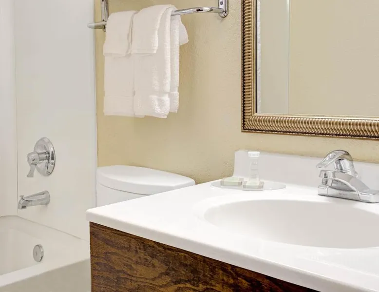 Comfortable Accommodations: Super 8 by Wyndham College Park Wash DC Area in College Park offers family rooms with air-conditioning, private bathrooms, TVs, and free WiFi. Each room includes a tea and coffee maker, hairdryer, work desk, free toiletries, bath or shower. Convenient Facilities: Guests enjoy free on-site parking, ensuring ease of access. The hotel provides a welcoming environment with English-speaking reception staff. Prime Location: Located 17 mi from Ronald Reagan Washington National Airport, the hotel is near attractions such as Walter E Washington Convention Center (9.9 mi), Washington Union Station (11 mi), and The National Mall (11 mi). Guests appreciate the convenient location for city trips. This air-conditioned double room is consisted of of a TV with cable channels and a private bathroom.