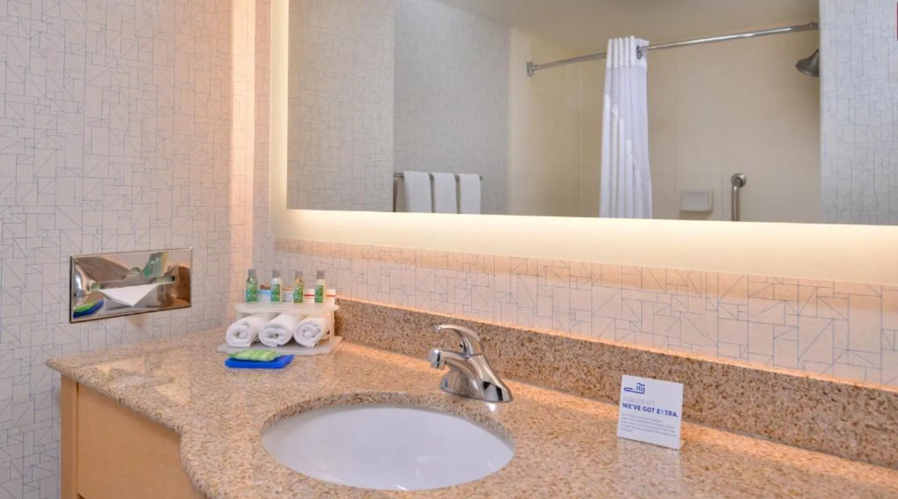 Comfortable Accommodations: Holiday Inn Express Stockton Southeast by IHG in Stockton offers air-conditioned rooms with free WiFi, private bathrooms, and modern amenities. Each room includes a work desk, TV, and free toiletries. Leisure Facilities: Guests can enjoy an indoor swimming pool, hot tub, fitness room, and lounge. Additional facilities include a minimarket, coffee shop, and 24-hour front desk. Convenient Location: Located 1.9 mi from Stockton Metropolitan Airport, the hotel is near University of the Pacific (9.9 mi) and Newport Casino (25 mi). Free on-site parking is available. Guest Satisfaction: Highly rated for safety, staff support, and room cleanliness. Featuring a spa bath, this room offers a spacious seating area, free Wi-Fi and a flat-screen satellite TV.