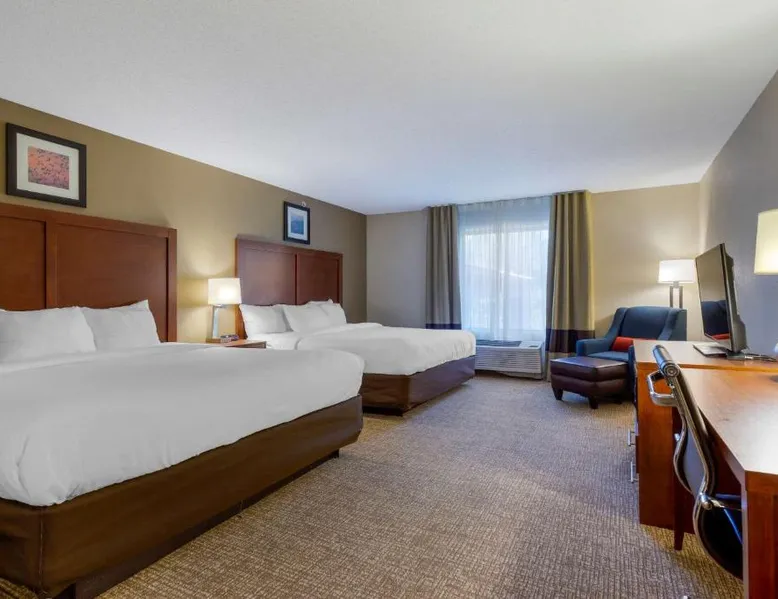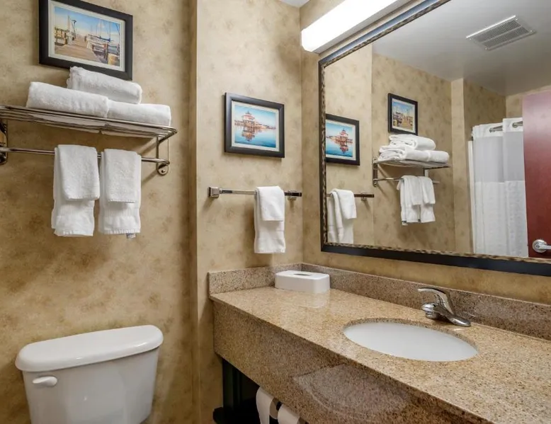The new Comfort Inn & Suites hotel offers a great location, just three miles from Chesapeake College. This Cambridge, MD hotel is also near attractions like Blackwater National Wildlife Refuge, the Brannock Maritime Museum, the Richardson Maritime Museum, Sailwinds Park and Nathan of Dorchester, a traditional Chesapeake Bay skipjack built to preserve the nautical heritage of Dorchester County. All well-appointed guest rooms and suites offer all the conveniences needed to ensure you feel at home. In-room amenities include microwaves, refrigerators, coffee makers, hair dryers, curved shower rods, desks, irons, ironing boards and cable television. Some rooms have sofa sleepers. Nonsmoking rooms can be requested. Laundry facilities are located on the premises for your added convenience. Guests of this Cambridge, MD hotel are invited to enjoy amenities and features like: Free breakfast with hot waffles, served daily; Free wireless high-speed Internet access; Free local calls; Exercise room The on-site meeting room can accommodate most events and business functions. Access to copy and fax services is offered. The beautiful city of Cambridge is the county seat of Dorchester County and is one of the oldest towns in Maryland. Our surrounding area is a great place for fishing enthusiasts with favorite species like rockfish, bluefish, speckled trout and flounder. The spacious double room features air conditioning, a tea and coffee maker, as well as a private bathroom boasting a bath and a shower. The double room provides a wardrobe, a safe deposit box, parquet floors, a tiled floor, as well as a flat-screen TV with cable channels. The unit has 1 bed.