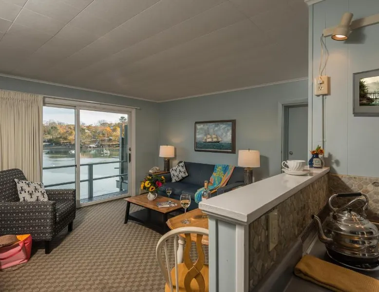 Comfortable Accommodations: Dockside Guest Quarters in York offers family rooms with sea views, balconies, and private bathrooms. Each room includes air-conditioning, a TV, and a sofa bed. Exceptional Facilities: Guests enjoy a sun terrace, garden, and free use of bicycles. The property features a restaurant serving American cuisine, a bar, and free WiFi. Additional amenities include a games room, children's playground, and free on-site private parking. Delicious Breakfast: A continental breakfast is served with local specialties, warm dishes, fresh pastries, cheese, fruits, and juice. Gluten-free options are available. Prime Location: Located 1.2 mi from York Harbor Beach and 14 mi from Portsmouth International Airport at Pease. Nearby attractions include Ogunquit Playhouse and Ogunquit Museum of American Art. Boasting a private entrance, this air-conditioned suite features 1 bedroom, 1 bathroom and a living room. Featuring a balcony with sea views, this suite also features a coffee machine and a TV. The unit has 2 beds.