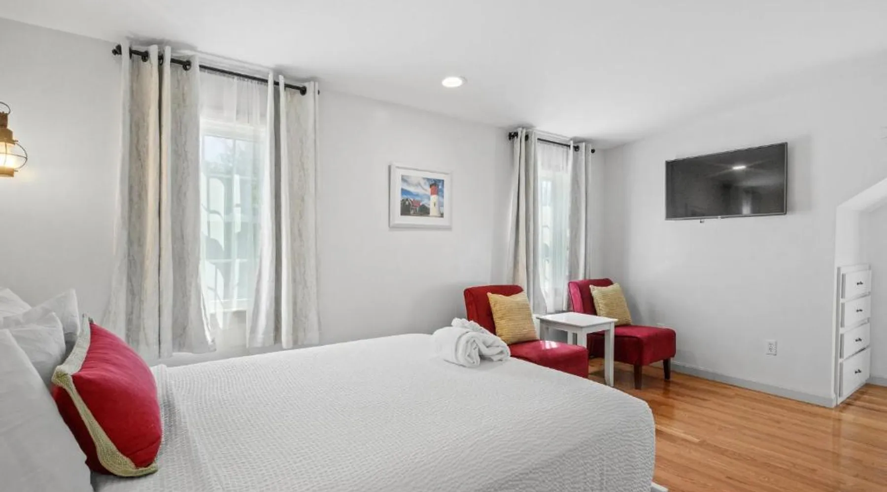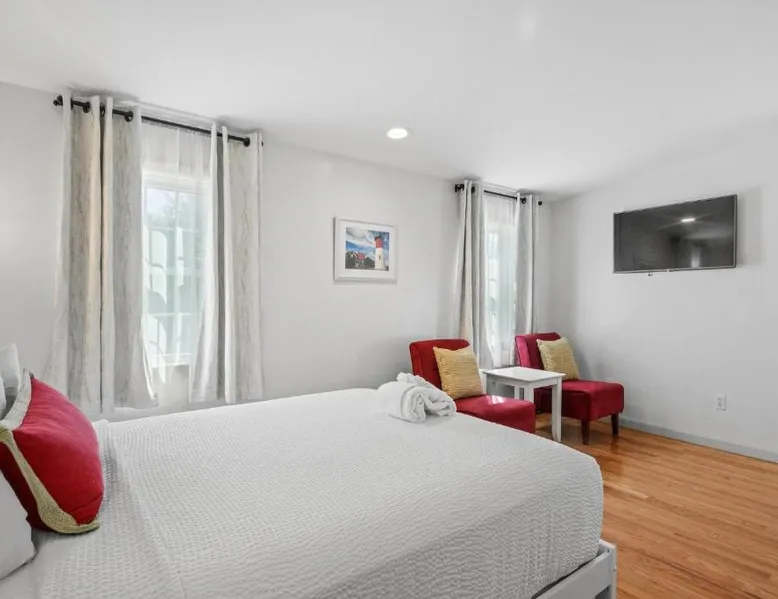 This Eastham inn offers free Wi-Fi and rooms equipped with a refrigerator. The Nauset Lighthouse is 5 minutes’ drive. Cable TV and a work desk are offered in each room at Eagle Wing Inn. Tea and coffee-making facilities are also included. Continental breakfast is served each morning and it features hot coffee or tea along with fresh baked muffins, fresh fruit, cereal, oatmeal and a fresh juice selection. Guests can swim in the outdoor pool. A small reading library along with fax and photocopying services are also offered. Eagle Wing Inn Eastham is 3 miles from Coast Guard Beach. Cape Cod National Seashore is 2 miles away. This suite features a spa bath, microwave and cable TV. It includes a To Go Breakfast Bag.
