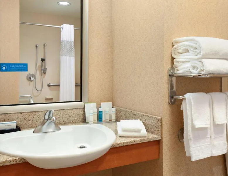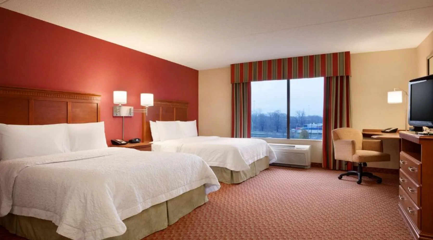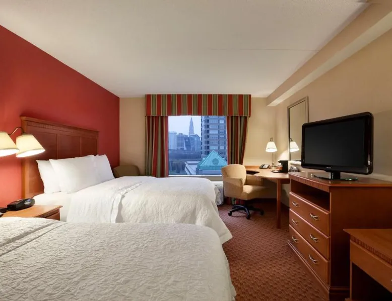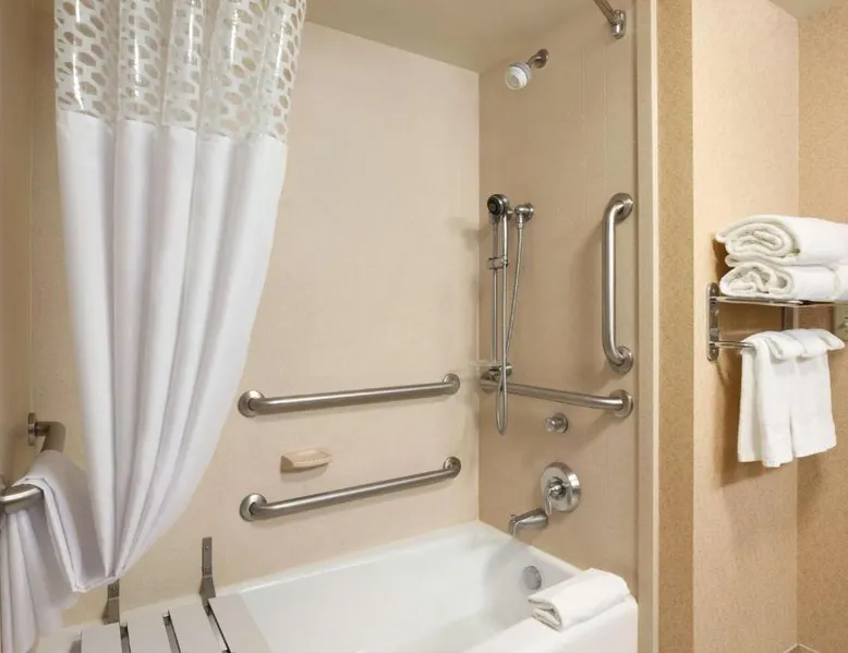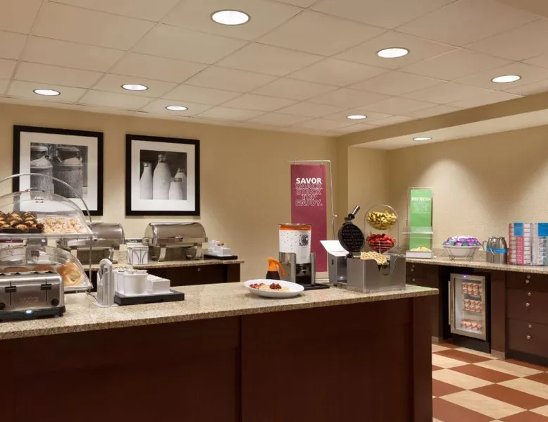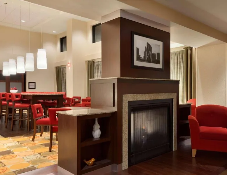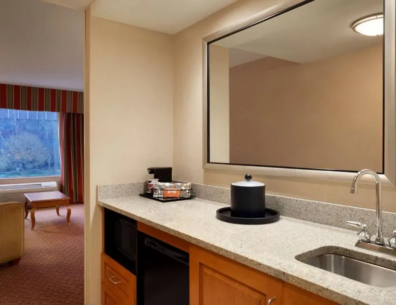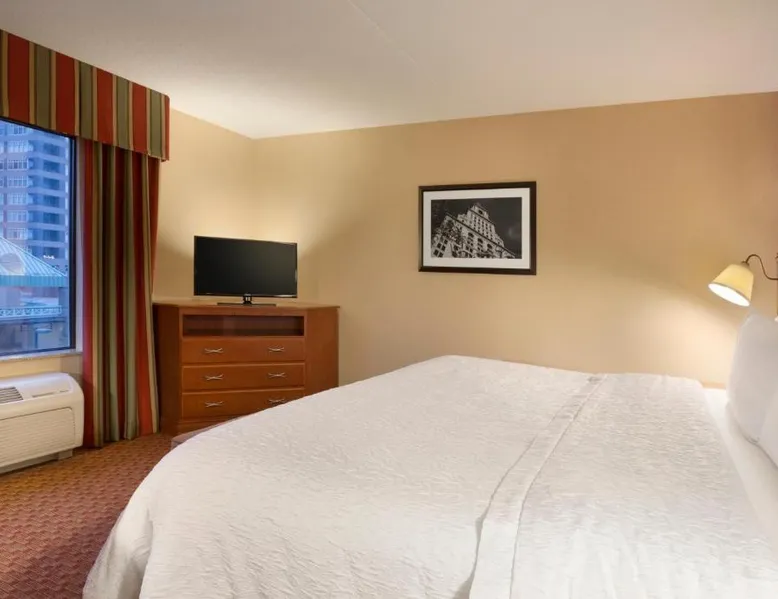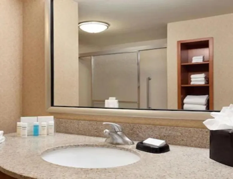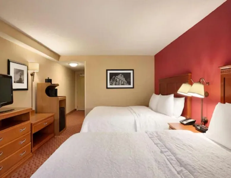 Hampton Inn and Suites East Hartford offers spacious rooms with flat screen TV’s, free Wi-Fi, and plush bedding. Downtown Hartford is a 5-minute drive from the hotel. Cable TV with HBO channels is available in every room along with a work desk and a coffee maker. Rooms offer a sitting area with sofa beds available in select rooms. This Hampton Inn also features a hot breakfast and a 24-hour fitness and business center. Guests can also lounge on the outdoor terrace. Mark Twain House and Museum is 3 miles away and the Hartford Stage is a 5-minute drive from the property. This room features a flat-screen TV, microwave, refrigerator, and a separate sitting area with a sofa bed.