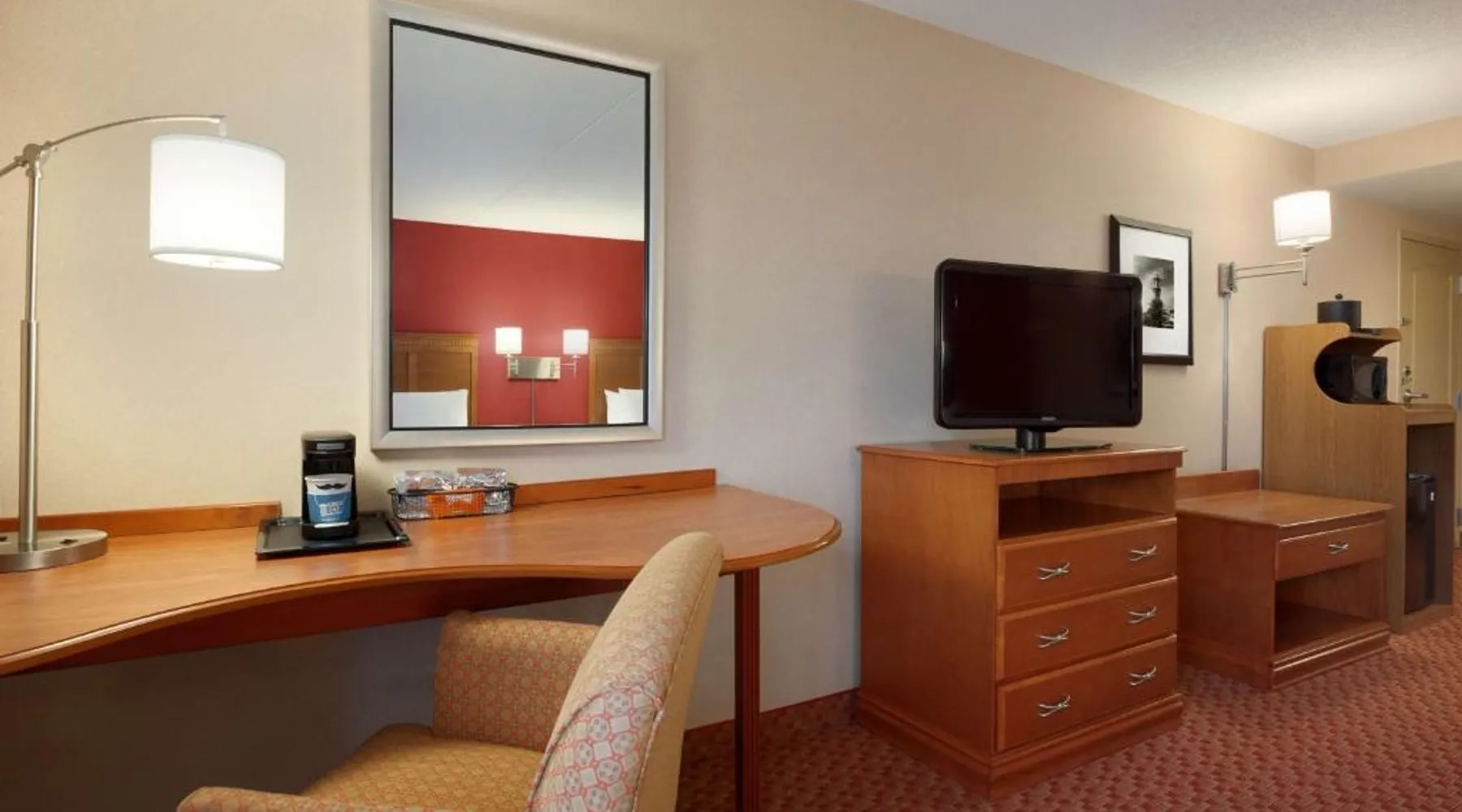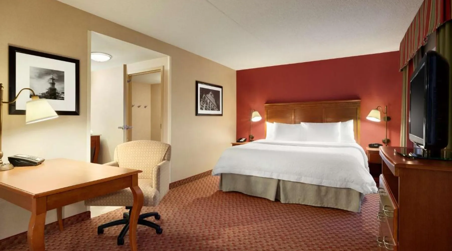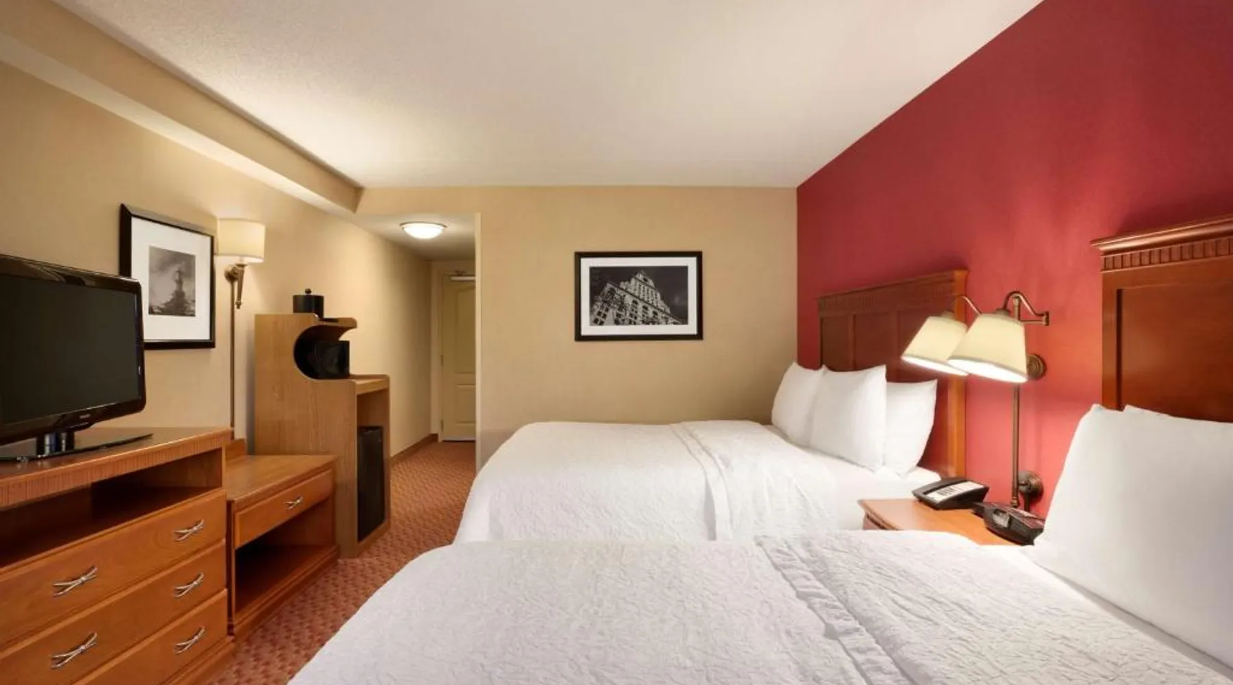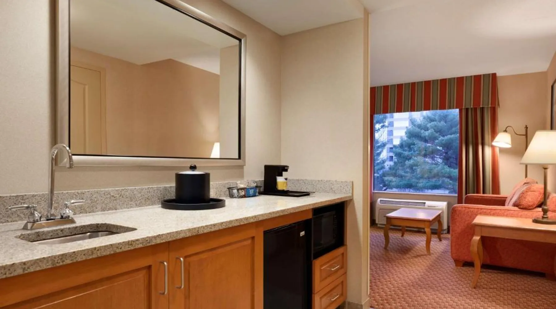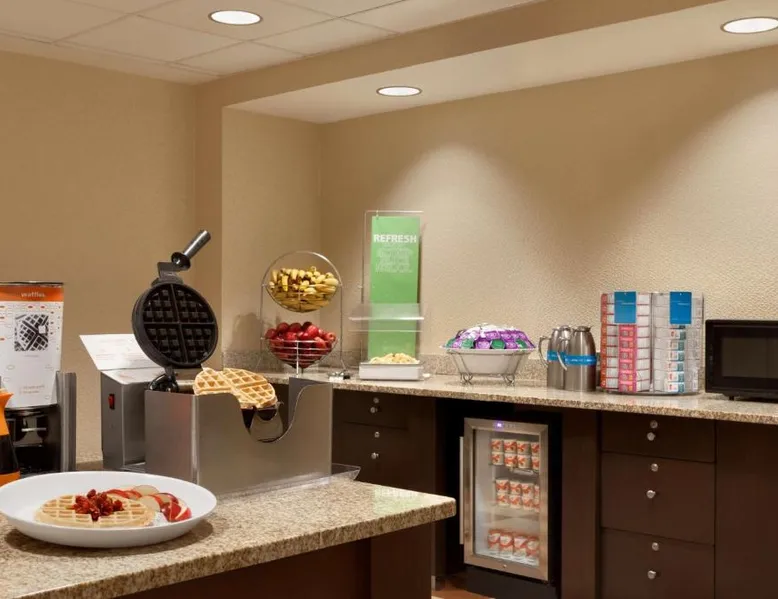 Hampton Inn and Suites East Hartford offers spacious rooms with flat screen TV’s, free Wi-Fi, and plush bedding. Downtown Hartford is a 5-minute drive from the hotel. Cable TV with HBO channels is available in every room along with a work desk and a coffee maker. Rooms offer a sitting area with sofa beds available in select rooms. This Hampton Inn also features a hot breakfast and a 24-hour fitness and business center. Guests can also lounge on the outdoor terrace. Mark Twain House and Museum is 3 miles away and the Hartford Stage is a 5-minute drive from the property. This room features a flat-screen TV, microwave, refrigerator, and a separate sitting area with a sofa bed.