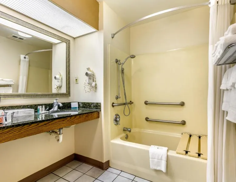 Conveniently located off of Interstate 26, the Quality Inn in Johnson City, TN, offers easy access to a variety of popular local attractions including Boone Lake, Appalachian Fairgrounds and Gray Fossil Museum. This Johnson City, Tennessee hotel is also convenient to Freedom Hall Civic Center, The Mall at Johnson City and Bristol Motor Speedway. All guest rooms offer a flat-screen television with cable, coffee maker, desk, refrigerator, microwave, pillow-top mattress, hair dryer, alarm clock, iron and ironing board. Guests of the Quality Inn hotel are invited to relax in the seasonal outdoor pool and work out in the Fitness Center. There is one meeting room. Additional amenities include: Free hot breakfast; Free wireless high-speed Internet access; Free newspaper M-F This is a pet-friendly hotel, with four-legged friends allowed to stay for a fee. The quadruple room provides air conditioning, heating, as well as a private bathroom featuring a bath or a shower and a hairdryer. The unit offers 2 beds.