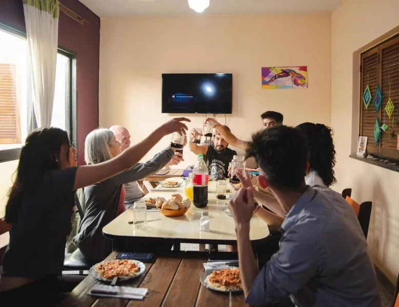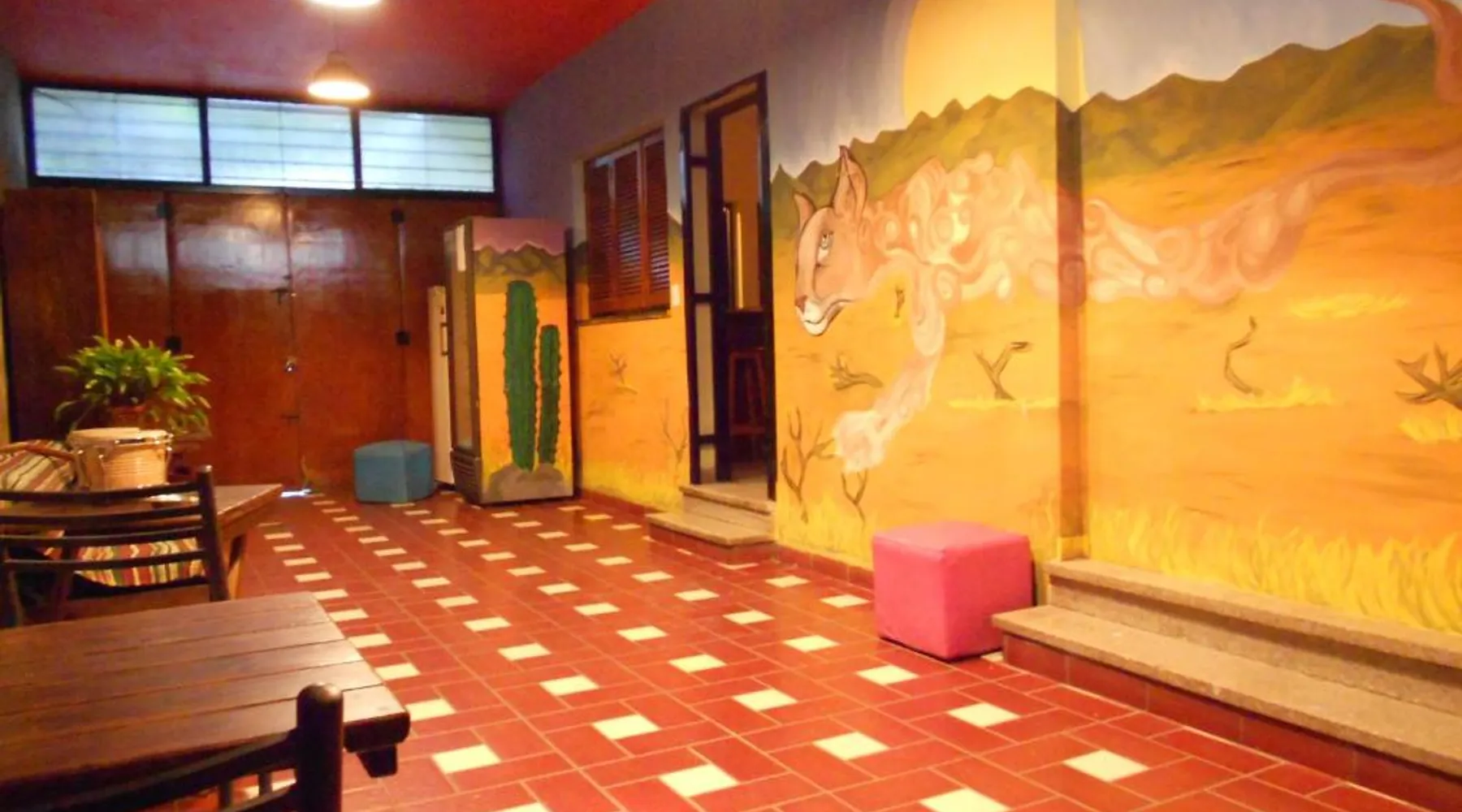 Comfortable Accommodations: Hostel Trotamundos in San Juan offers family rooms with private bathrooms, air-conditioning, and garden views. Each room includes a kitchenette, wardrobe, and free WiFi. Leisure Facilities: Guests can relax on the sun terrace, in the garden, or by the seasonal outdoor swimming pool. The property features a bar, lounge, games room, and outdoor seating area. Dining Experience: A buffet breakfast with juice and pancakes is served daily. Additional amenities include a shared kitchen, washing machine, and streaming services. Convenient Location: Located 5.6 mi from Domingo Faustino Sarmiento Airport and 6.2 mi from San Juan del Bicentenario Stadium. Public transport options nearby enhance the stay. Features comfortable beds, air conditioning and a private bathroom. Rates include linen and breakfast.