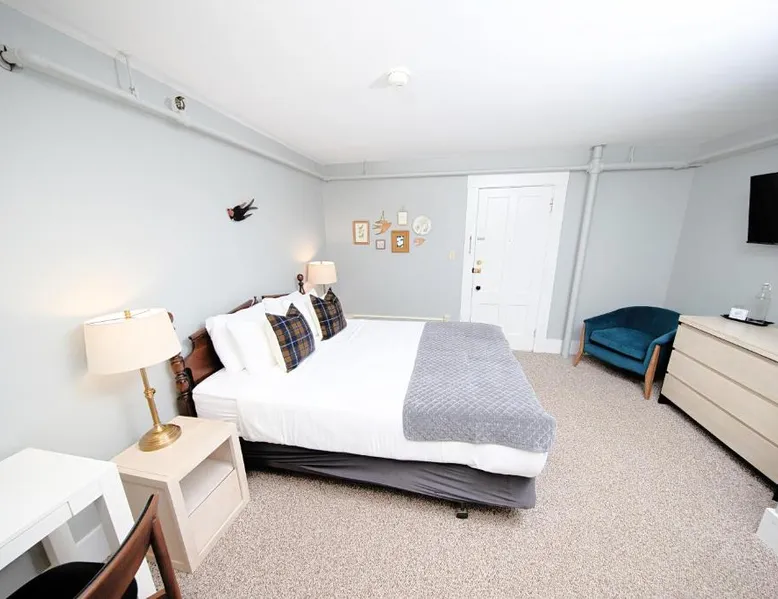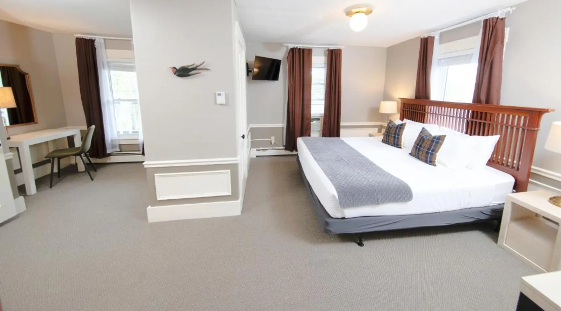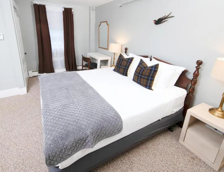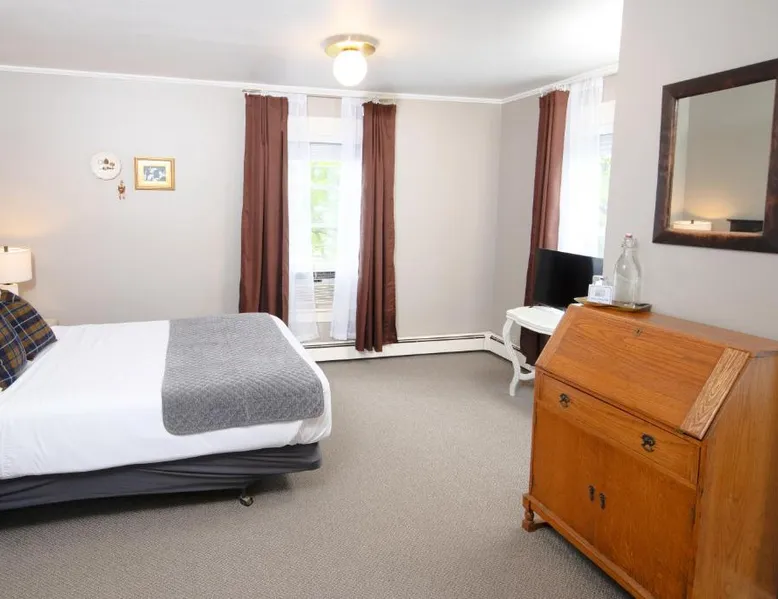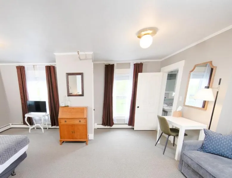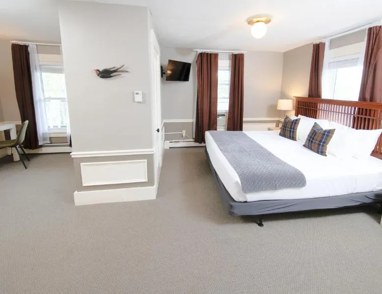 Comfortable Accommodations: The New London Inn in New London offers family rooms with air-conditioning, private bathrooms, and garden views. Each room includes a work desk, TV, and free WiFi. Dining Experience: Guests can enjoy traditional American and Italian cuisine at the on-site restaurant. The bar provides a relaxing atmosphere with a variety of beverages. Leisure Activities: The inn features a garden, terrace, outdoor fireplace, and picnic area. Activities available include fishing, skiing, and hiking. Convenient Location: Located 29 mi from Lebanon Municipal Airport, the inn is a short walk from Banks Gallery. Nearby attractions include Lake Sunapee Golf Course and Mt Sunapee State Park. Guest Favorites: Guests highly rate the property staff and bar, making it a preferred choice for relaxation and dining. This double room has a cable TV, spa bath and air conditioning.