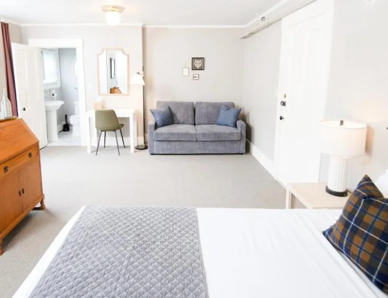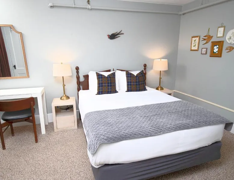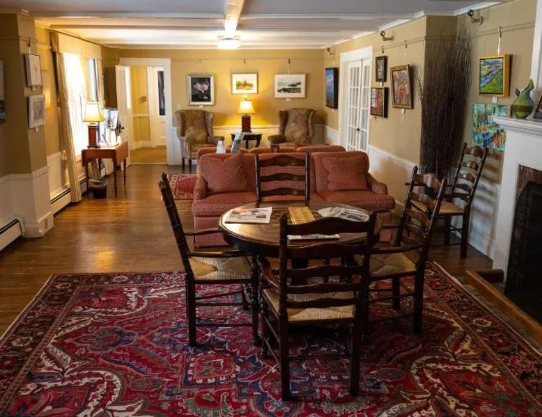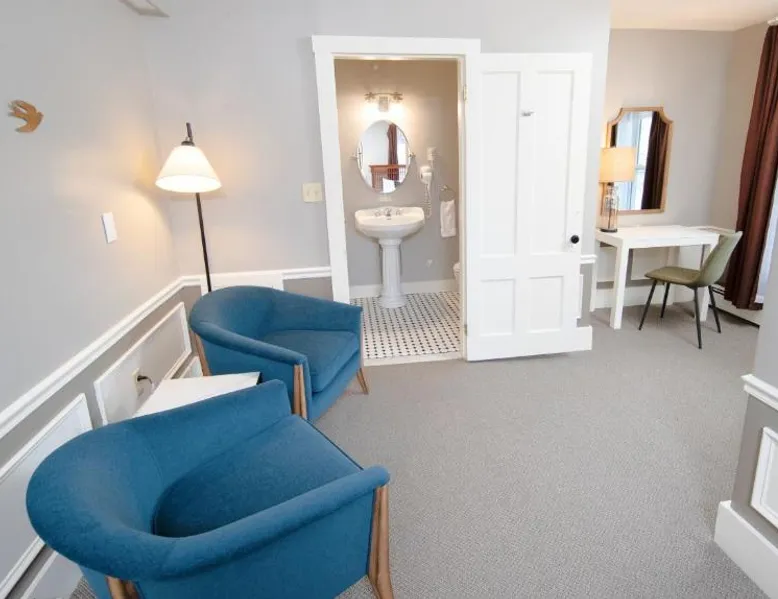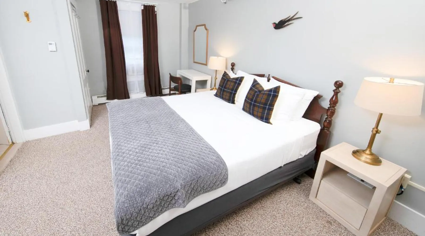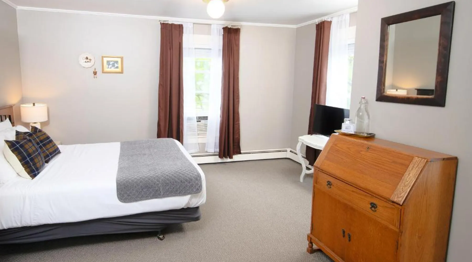 Comfortable Accommodations: The New London Inn in New London offers family rooms with air-conditioning, private bathrooms, and garden views. Each room includes a work desk, TV, and free WiFi. Dining Experience: Guests can enjoy traditional American and Italian cuisine at the on-site restaurant. The bar provides a relaxing atmosphere with a variety of beverages. Leisure Activities: The inn features a garden, terrace, outdoor fireplace, and picnic area. Activities available include fishing, skiing, and hiking. Convenient Location: Located 29 mi from Lebanon Municipal Airport, the inn is a short walk from Banks Gallery. Nearby attractions include Lake Sunapee Golf Course and Mt Sunapee State Park. Guest Favorites: Guests highly rate the property staff and bar, making it a preferred choice for relaxation and dining. This double room has a cable TV, spa bath and air conditioning.