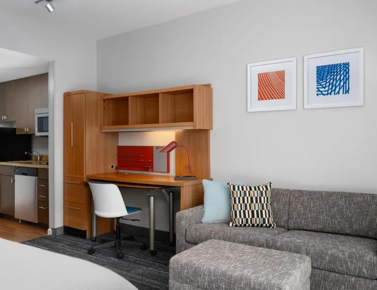TownePlace Suites by Marriott Champaign offers accommodations in Champaign. Each room is fitted with a flat-screen TV. Certain rooms have a seating area to relax in after a busy day. You will find a coffee machine in the room. All rooms are equipped with a private bathroom equipped with a bath or shower. For your comfort, you will find free toiletries and a hair dryer. There is a 24-hour front desk at the property. Arthur is 30 mi from TownePlace Suites Champaign, while Monticello is 19 mi away. Central Illinois Regional Airport is 45 mi from the property. Providing free toiletries, this studio includes a private bathroom with a bath, a shower and a hairdryer. Guests can make meals in the kitchen that is equipped with a stovetop, a refrigerator, a dishwasher and kitchenware. The air-conditioned studio provides a flat-screen TV with cable channels, a tea and coffee maker, a seating area, a wardrobe as well as city views. The unit offers 2 beds.
