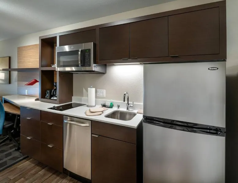 Comfortable Accommodations: TownePlace Suites by Marriott Milwaukee Oak Creek in Oak Creek offers family rooms with private bathrooms, air-conditioning, and free WiFi. Each room includes a kitchen, work desk, and modern amenities. Exceptional Facilities: Guests can enjoy a fitness center, indoor swimming pool, terrace, and free bicycles. Additional facilities include an outdoor fireplace, outdoor seating area, and free on-site parking. Convenient Location: Located 2.5 mi from Milwaukee Mitchell International Airport, the hotel is near attractions such as Mitchell Park Conservatory (12 mi) and the Harley-Davidson Museum (11 mi). Free continental and buffet breakfasts are available. Guest Satisfaction: Highly rated for room cleanliness, the hotel ensures a pleasant stay with excellent service. Offering free toiletries, this double room includes a private bathroom with a bath and a hairdryer. The well-fitted kitchen features a refrigerator, kitchenware and a microwave. The spacious air-conditioned double room offers a flat-screen TV with streaming services, a tea and coffee maker, a wardrobe and tumble dryer. The unit offers 1 bed.