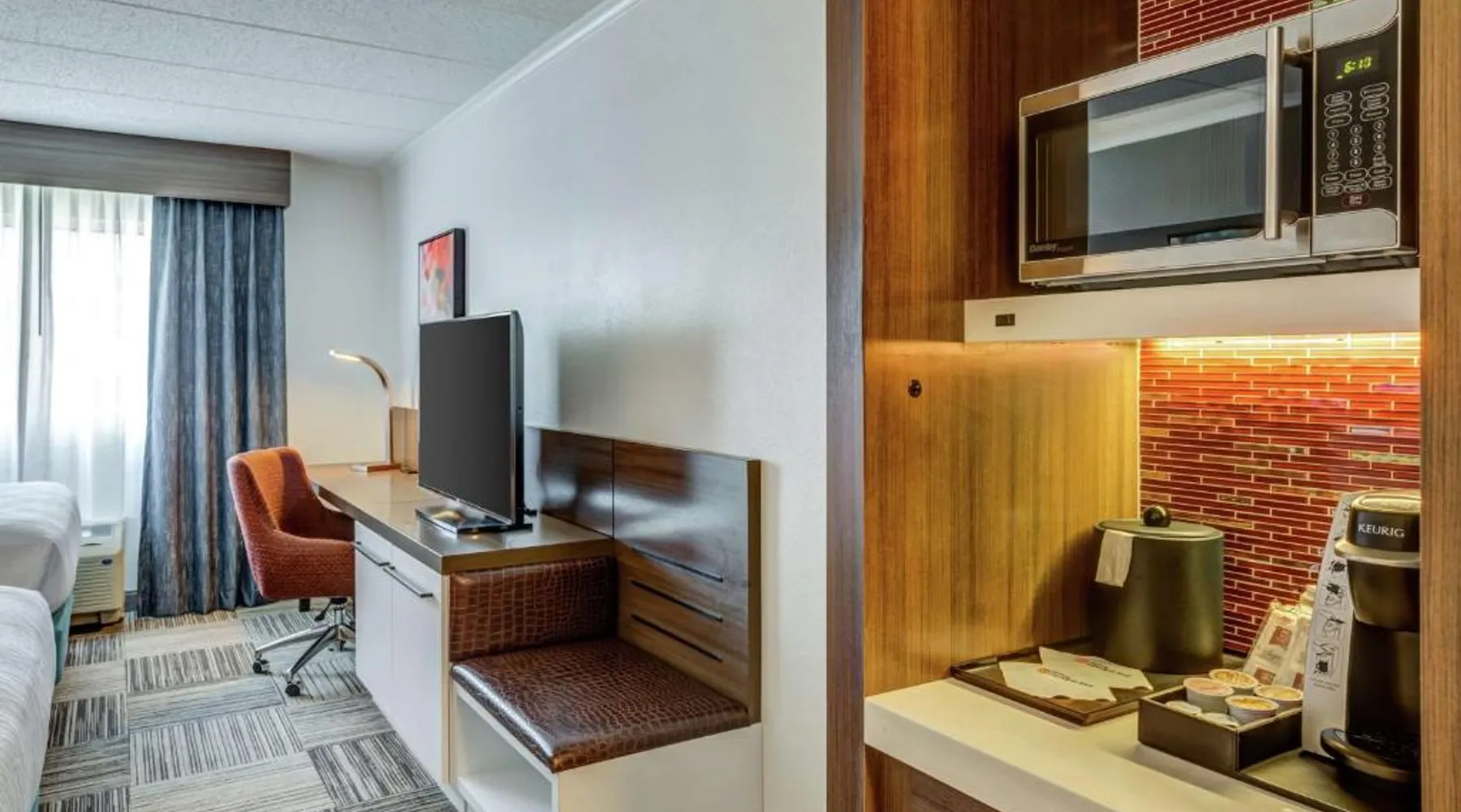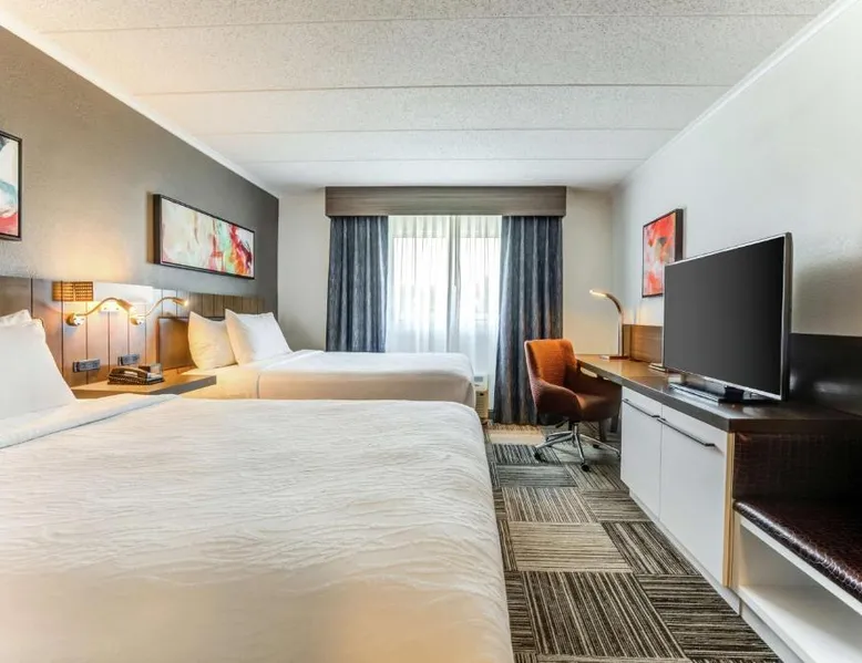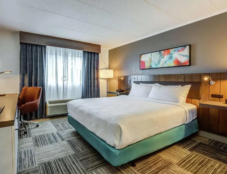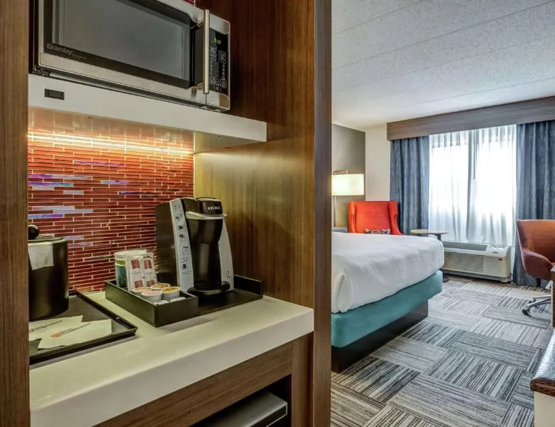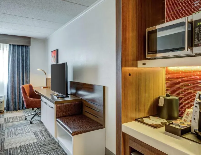 Directly off highway I-95 and within driving distance of downtown Boston, this hotel features on-site dining options, modern facilities and easy access to area attractions, including Faneuil Hall. The Hilton Garden Inn Boston Waltham is only a short drive from popular sites including the Boston Aquarium and Fenway Park, home to baseball's Red Sox. The historic cities of Lexington and Concord are also easily accessible. Guests staying at the Boston Waltham Hilton Garden Inn can enjoy a breakfast buffet for a charge at the on-site Great American Grill restaurant or purchase snacks from the on-site 24-hour convenience store. The hotel also features an indoor swimming pool and state-of-the-art fitness facilities. The hearing accessible room offers doorbells and phones with audio, vibration or strobe alerts. A flat-screen HDTV and a hospitality center that includes a mini-fridge, microwave and Keurig coffeemaker are offered as well. Complimentary WiFi is also available.