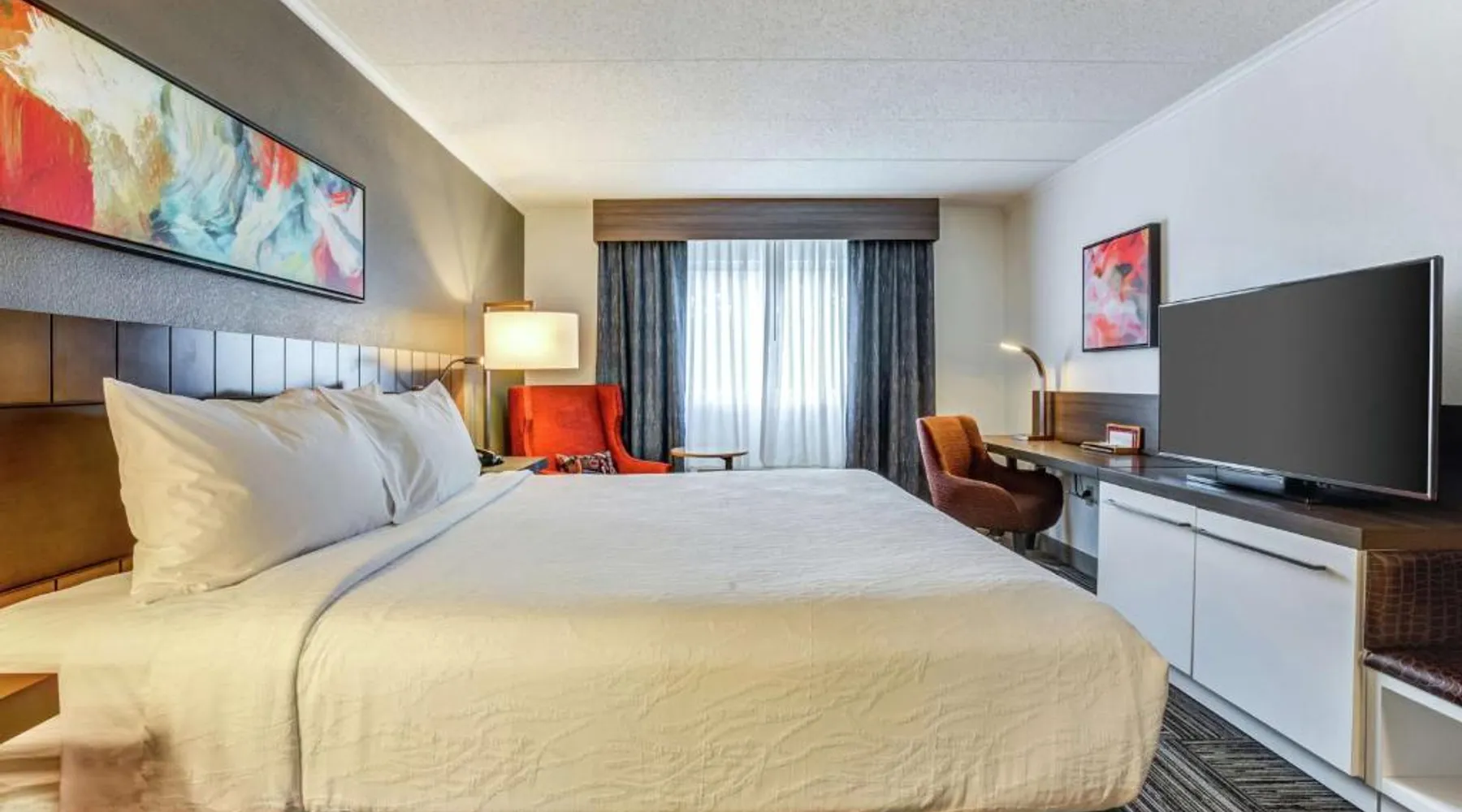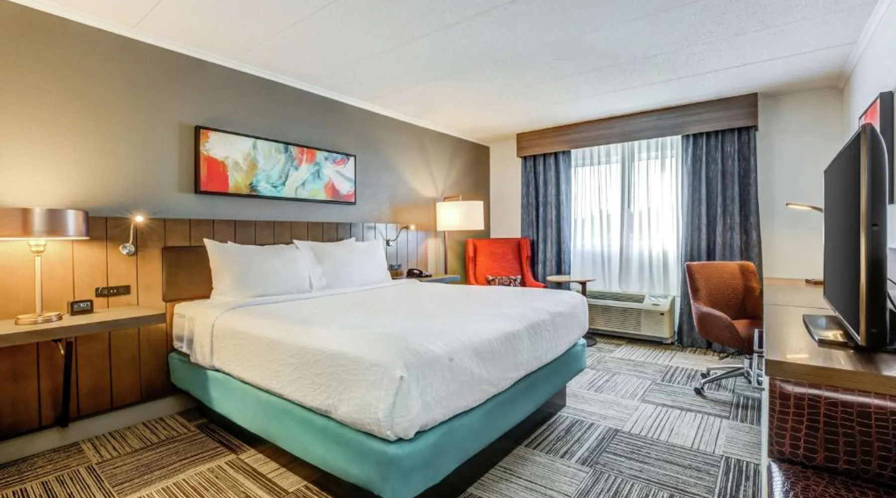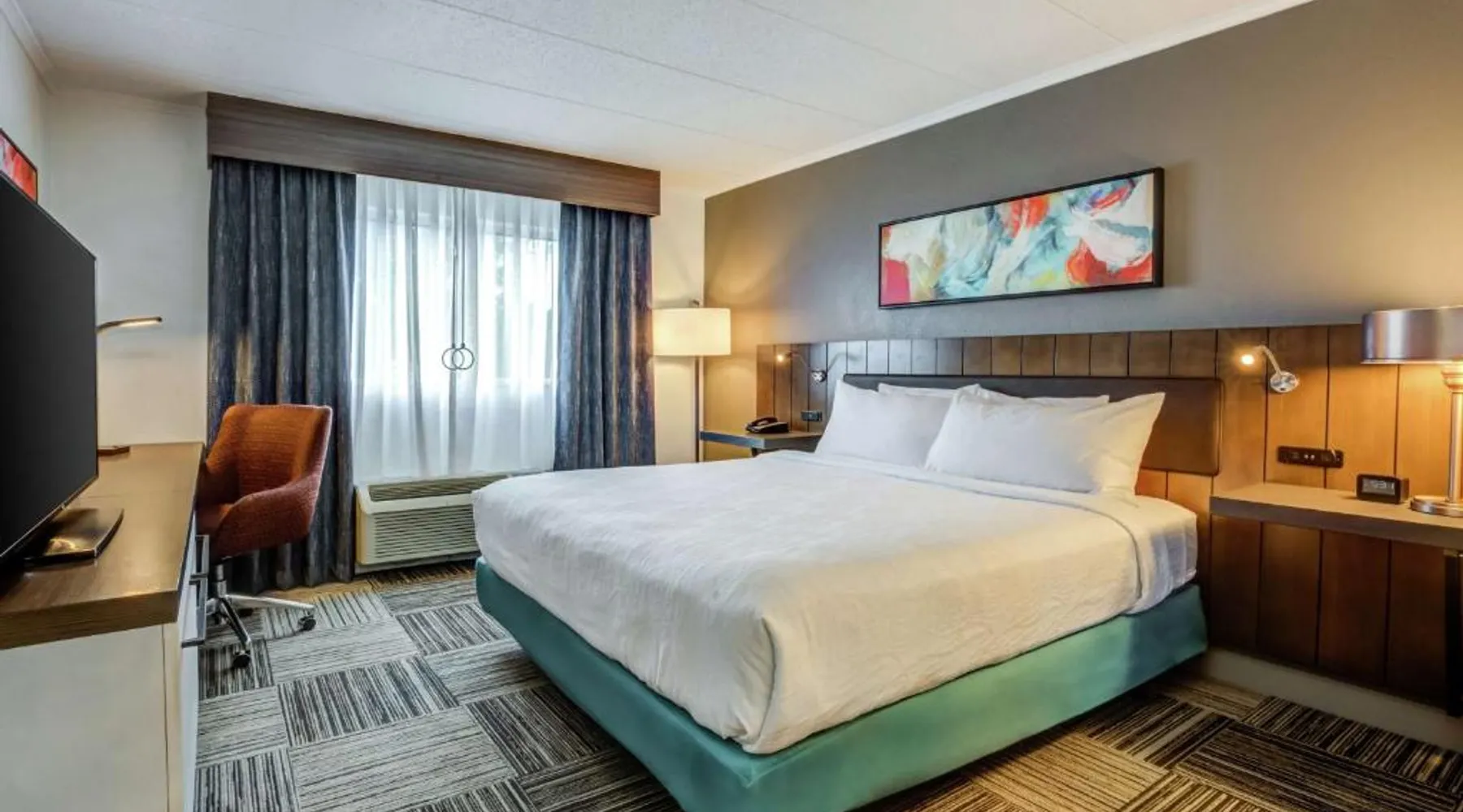 Directly off highway I-95 and within driving distance of downtown Boston, this hotel features on-site dining options, modern facilities and easy access to area attractions, including Faneuil Hall. The Hilton Garden Inn Boston Waltham is only a short drive from popular sites including the Boston Aquarium and Fenway Park, home to baseball's Red Sox. The historic cities of Lexington and Concord are also easily accessible. Guests staying at the Boston Waltham Hilton Garden Inn can enjoy a breakfast buffet for a charge at the on-site Great American Grill restaurant or purchase snacks from the on-site 24-hour convenience store. The hotel also features an indoor swimming pool and state-of-the-art fitness facilities. The hearing accessible room offers doorbells and phones with audio, vibration or strobe alerts. A flat-screen HDTV and a hospitality center that includes a mini-fridge, microwave and Keurig coffeemaker are offered as well. Complimentary WiFi is also available.
