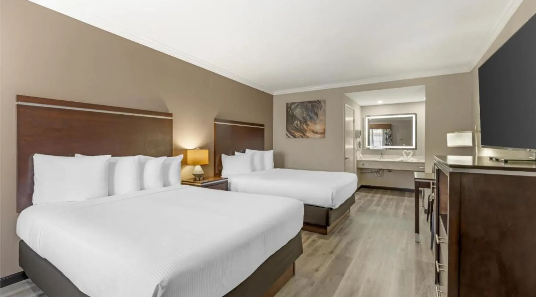 Conveniently placed only a short distance from South Bay Redondo Beach and offering easy access to central Los Angeles attractions, this hotel features comfortable accommodations along with many thoughtful amenities. Best Western Redondo Beach Galleria Inn - Los Angeles LAX Airport Hotel is located only moments from the Galleria Mall, featuring numerous shops, restaurants and entertainment options. With easy access to Interstate 405, guests can also discover Disneyland, Universal Studios and Hollywood. Before exploring exciting nearby attractions, guests at the Best Western Redondo Beach Galleria Inn - Los Angeles LAX Airport Hotel can begin the day with a free continental breakfast. The hotel also provides free Wi-Fi access and a relaxing outdoor hot tub. The quadruple room features a tea and coffee maker and a safe deposit box. The unit has 2 beds.
