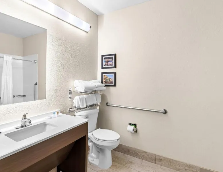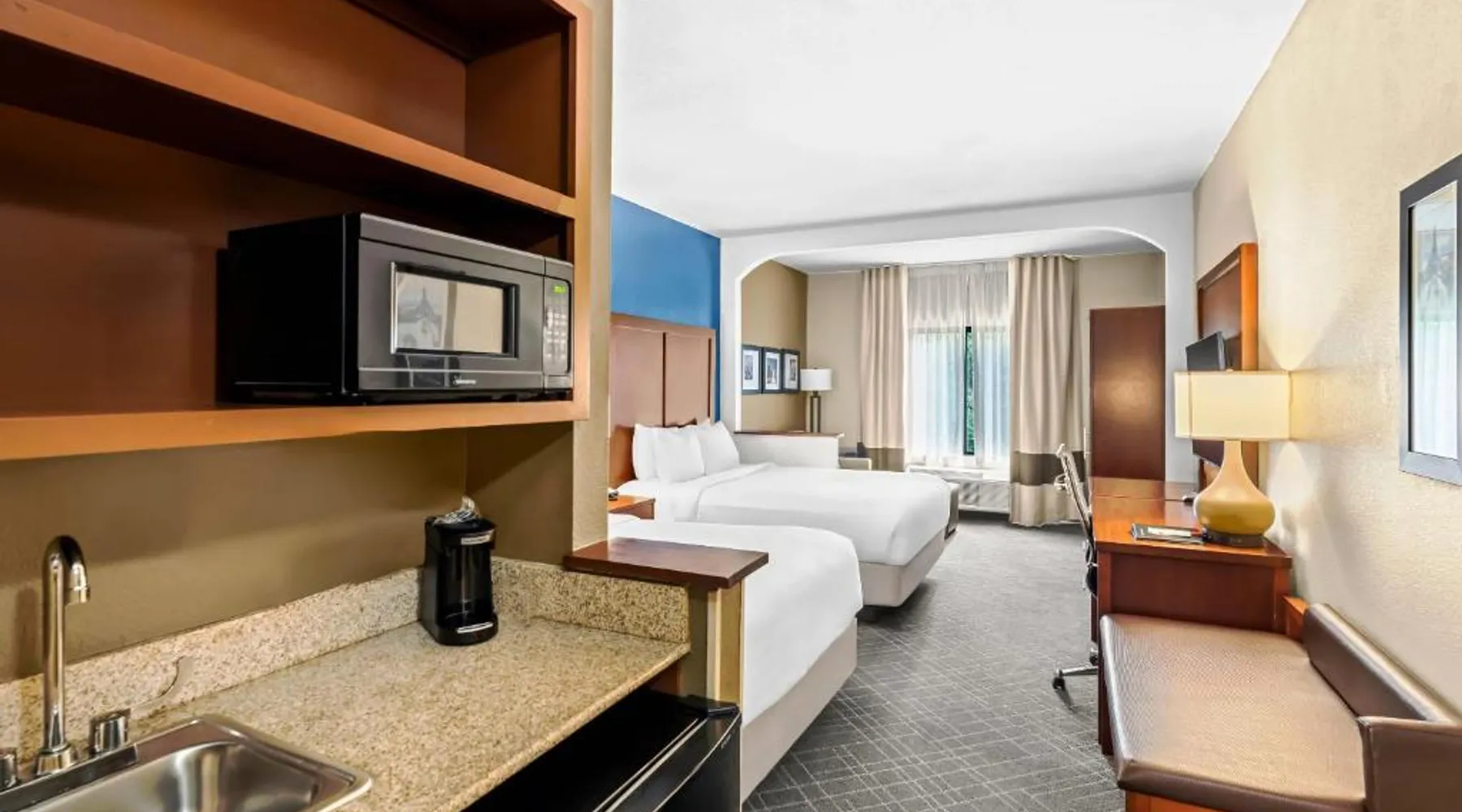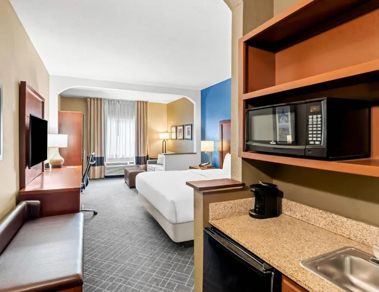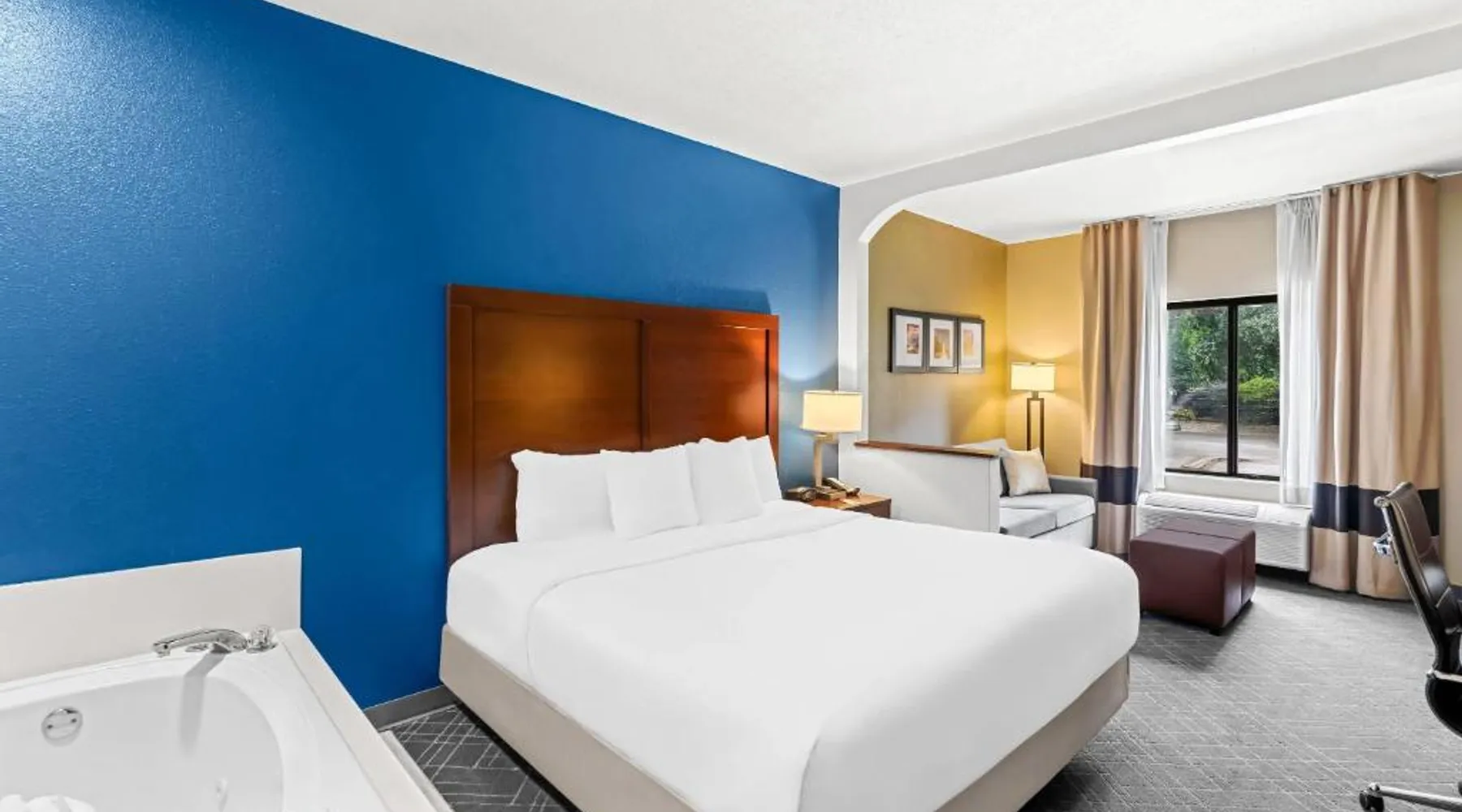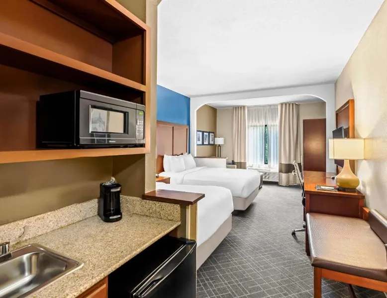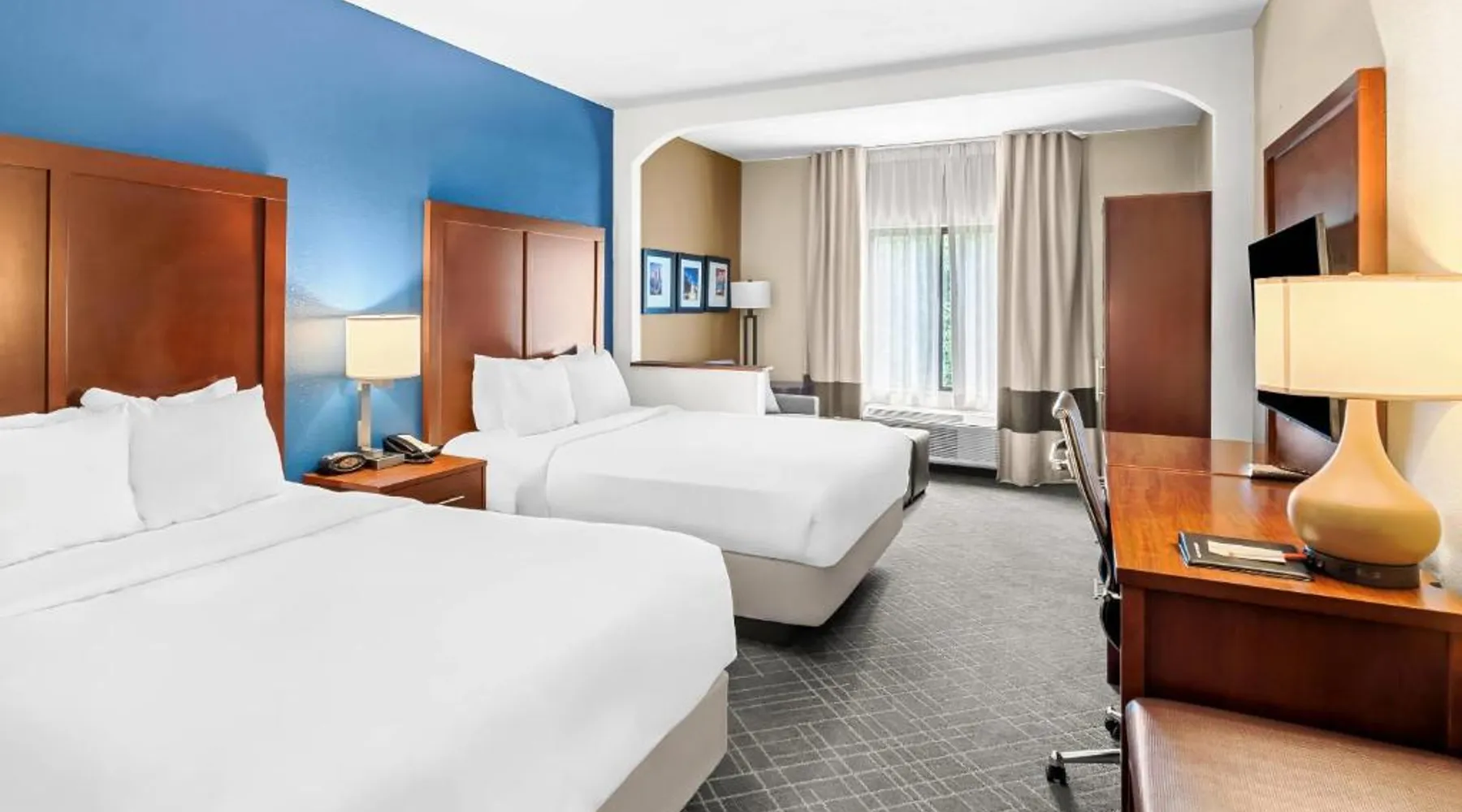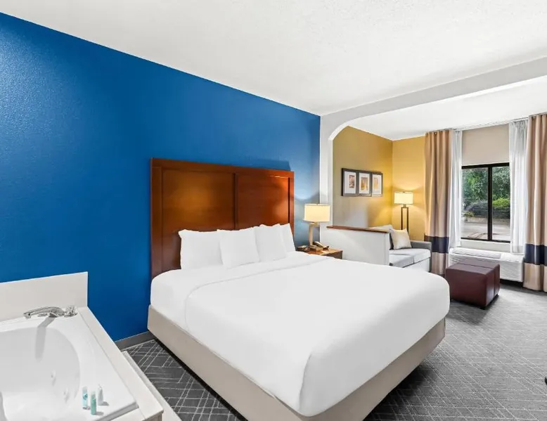 Located on the eastern shore of Mobile Bay off Interstate 10, the Comfort Suites hotel is only five minutes from downtown Mobile and 30 minutes from Gulf shore beaches. All spacious guest rooms include refrigerators, microwaves, irons, ironing boards, coffee makers and cable television. Keep your electronic devices charged with the recharge device including AC and USB outlets provided in all guest rooms. Guest laundry facilities and a newsstand are located on the premises. Enjoy our free hot breakfast featuring eggs, meat, yogurt, fresh fruit, cereal and more, including your choice of hot waffle flavors! If you're leaving early, a Your Suite Success Grab & Go bag is available for the two hours prior to breakfast. This Daphne, AL hotel provides guests with many amenities, including free local calls, a free newspaper and free coffee in the lobby. Business travelers will appreciate conveniences like voice mail. A business center with access to copy and fax services is located on the property. This Daphne, AL hotel is minutes from attractions like the Mobile Convention Center, the United States Sports Academy and the University of South Alabama. The Mobile Municipal Airport is only 25 miles away. Several shops and a variety of restaurants are located in the surrounding area. Guests will have a special experience as this triple room provides a spa bath. The triple room offers air conditioning and a tea and coffee maker. The unit offers 2 beds.