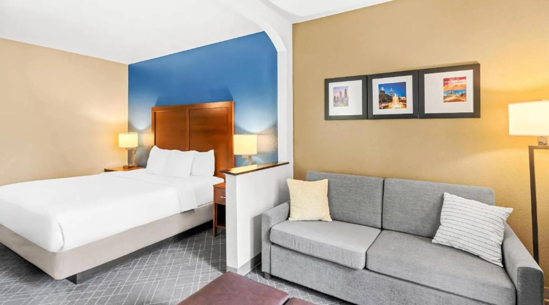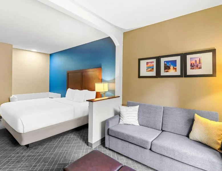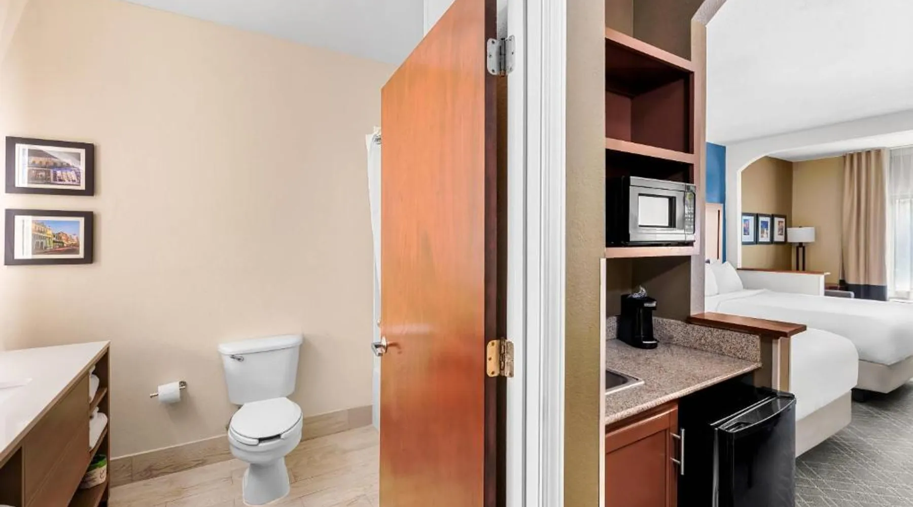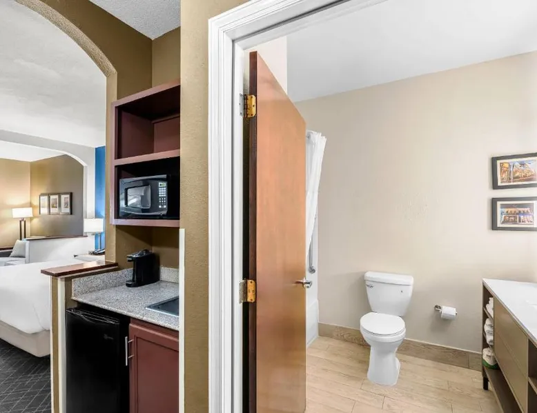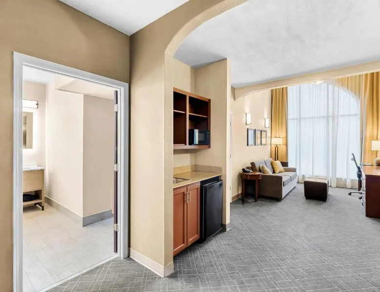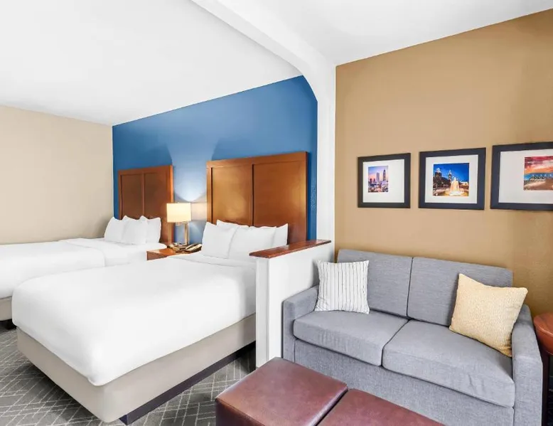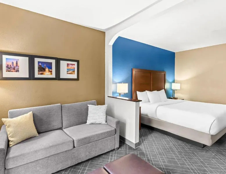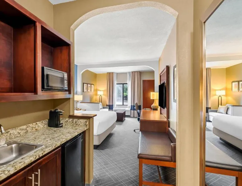 Located on the eastern shore of Mobile Bay off Interstate 10, the Comfort Suites hotel is only five minutes from downtown Mobile and 30 minutes from Gulf shore beaches. All spacious guest rooms include refrigerators, microwaves, irons, ironing boards, coffee makers and cable television. Keep your electronic devices charged with the recharge device including AC and USB outlets provided in all guest rooms. Guest laundry facilities and a newsstand are located on the premises. Enjoy our free hot breakfast featuring eggs, meat, yogurt, fresh fruit, cereal and more, including your choice of hot waffle flavors! If you're leaving early, a Your Suite Success Grab & Go bag is available for the two hours prior to breakfast. This Daphne, AL hotel provides guests with many amenities, including free local calls, a free newspaper and free coffee in the lobby. Business travelers will appreciate conveniences like voice mail. A business center with access to copy and fax services is located on the property. This Daphne, AL hotel is minutes from attractions like the Mobile Convention Center, the United States Sports Academy and the University of South Alabama. The Mobile Municipal Airport is only 25 miles away. Several shops and a variety of restaurants are located in the surrounding area. Guests will have a special experience as this triple room provides a spa bath. The triple room offers air conditioning and a tea and coffee maker. The unit offers 2 beds.