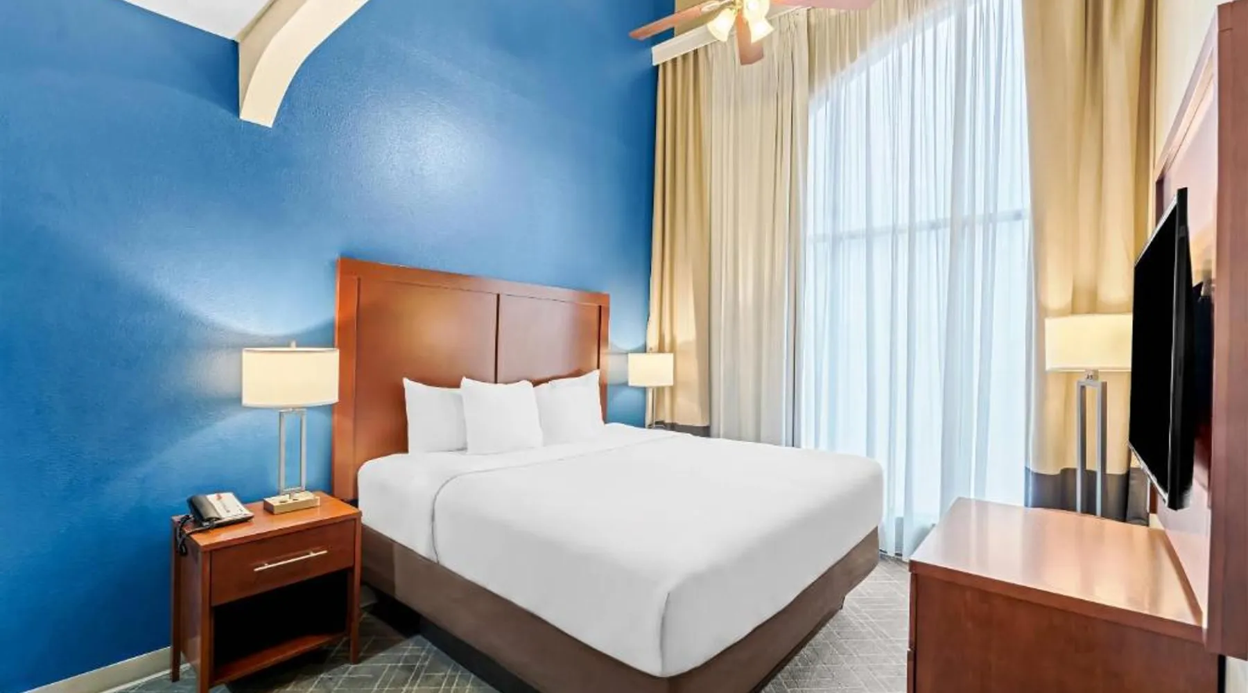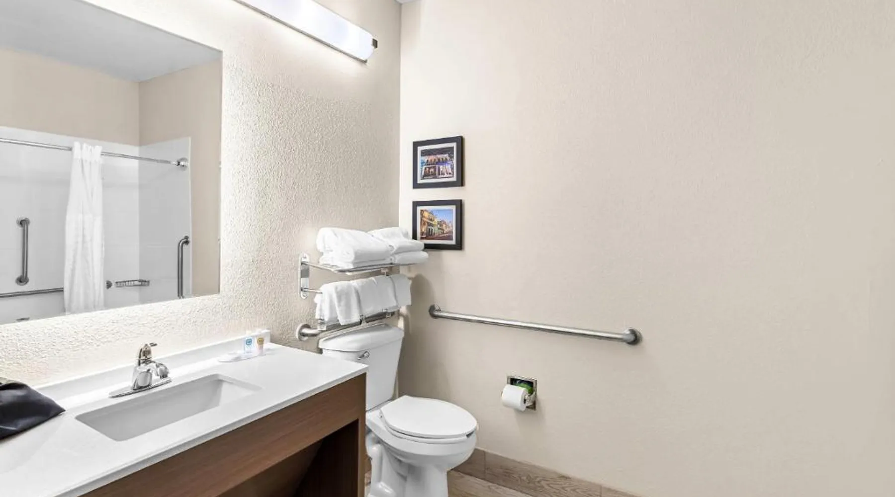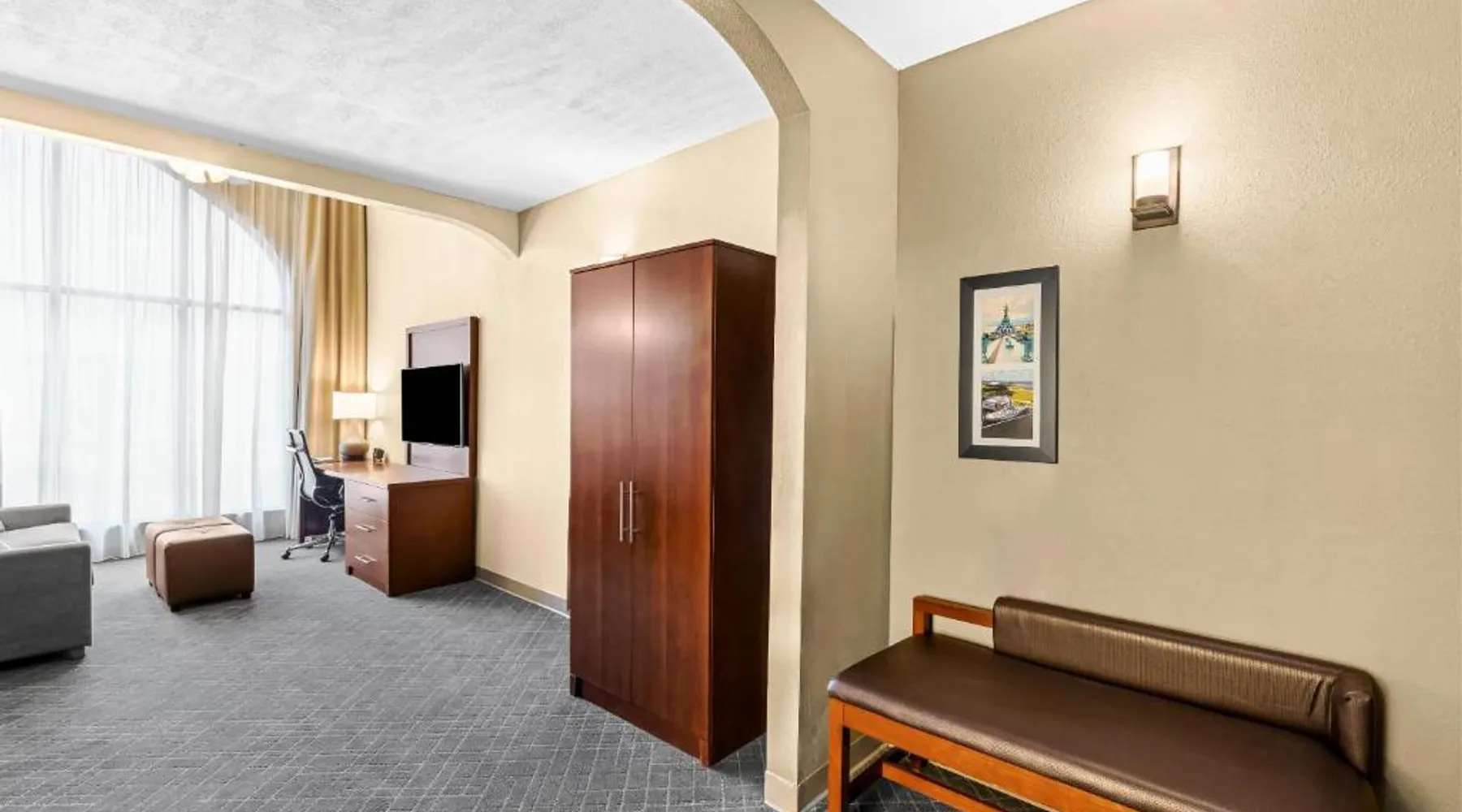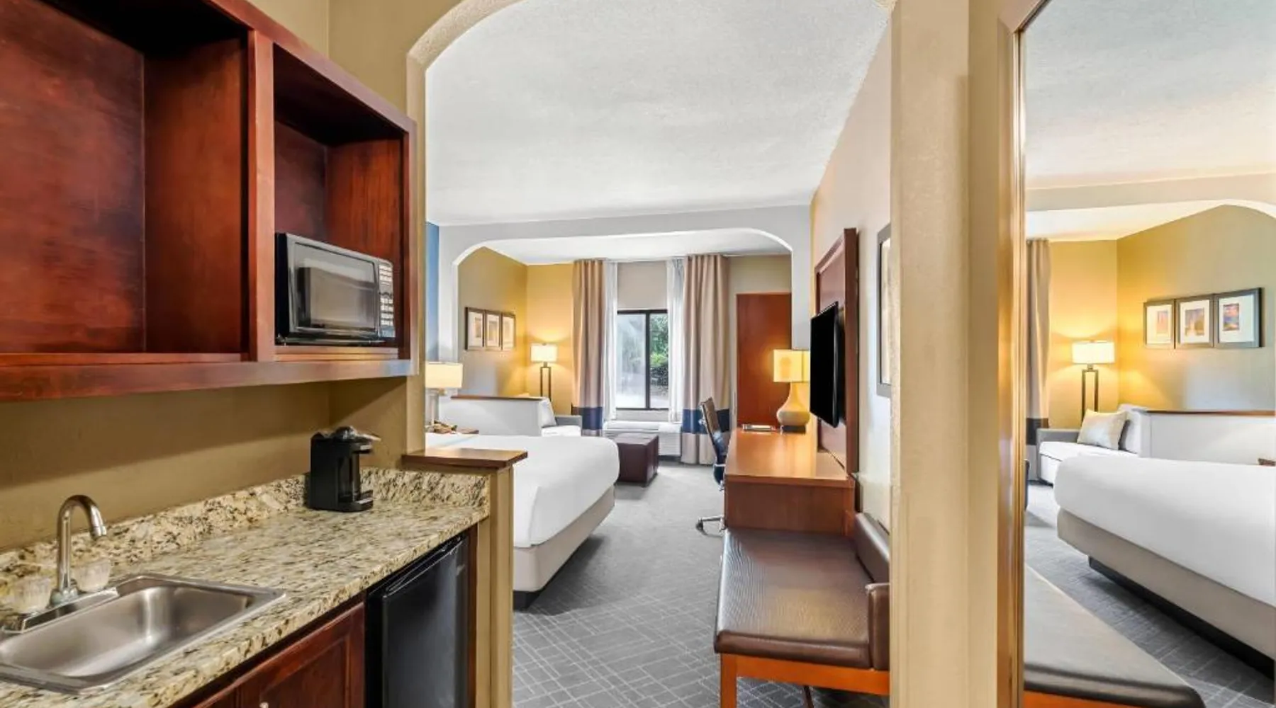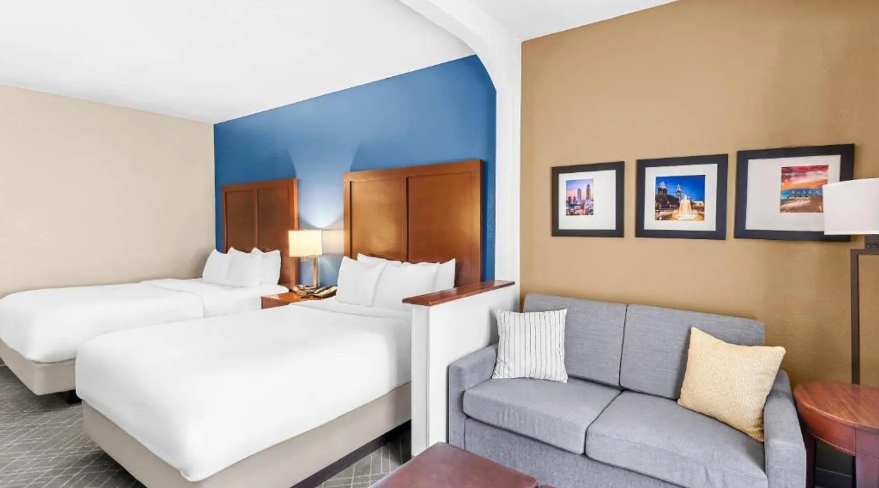 Located on the eastern shore of Mobile Bay off Interstate 10, the Comfort Suites hotel is only five minutes from downtown Mobile and 30 minutes from Gulf shore beaches. All spacious guest rooms include refrigerators, microwaves, irons, ironing boards, coffee makers and cable television. Keep your electronic devices charged with the recharge device including AC and USB outlets provided in all guest rooms. Guest laundry facilities and a newsstand are located on the premises. Enjoy our free hot breakfast featuring eggs, meat, yogurt, fresh fruit, cereal and more, including your choice of hot waffle flavors! If you're leaving early, a Your Suite Success Grab & Go bag is available for the two hours prior to breakfast. This Daphne, AL hotel provides guests with many amenities, including free local calls, a free newspaper and free coffee in the lobby. Business travelers will appreciate conveniences like voice mail. A business center with access to copy and fax services is located on the property. This Daphne, AL hotel is minutes from attractions like the Mobile Convention Center, the United States Sports Academy and the University of South Alabama. The Mobile Municipal Airport is only 25 miles away. Several shops and a variety of restaurants are located in the surrounding area. Guests will have a special experience as this triple room provides a spa bath. The triple room offers air conditioning and a tea and coffee maker. The unit offers 2 beds.