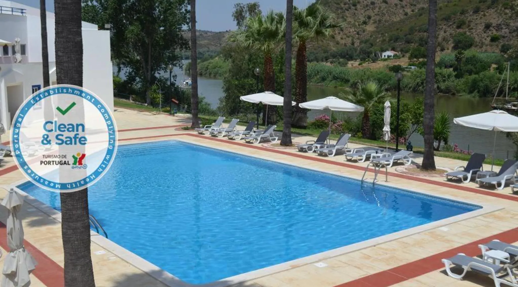 Comfortable Accommodations: Hotel D'Alcoutim in Alcoutim offers air-conditioned rooms with private bathrooms, balconies, and free WiFi. Each room includes a work desk, TV, and parquet floors, ensuring a pleasant stay. Leisure Facilities: Guests can relax by the saltwater swimming pool, sun terrace, and lush garden. The hotel features a bar, beauty services, and a picnic area, providing ample opportunities for relaxation and entertainment. Convenient Services: The hotel offers a paid airport shuttle service, lounge, 24-hour front desk, housekeeping, room service, and luggage storage. Free on-site private parking is available for guests' convenience. Local Attractions: Located 63 mi from Faro Airport, Hotel D'Alcoutim is near Quinta do Vale Golf Course (22 mi), Castro Marim Golf Course (23 mi), Castro Marim Castle (24 mi), and Monte Rei Golf Course (27 mi). Activities such as fishing and hiking are available nearby. This air-conditioned twin/double room is consisted of of a flat-screen TV with satellite channels, a private bathroom as well as a balcony with river views.