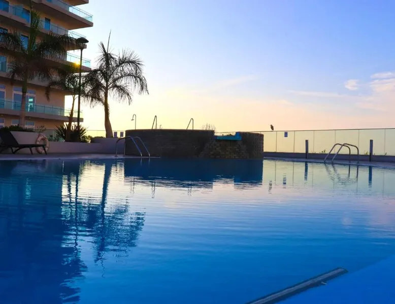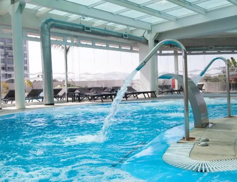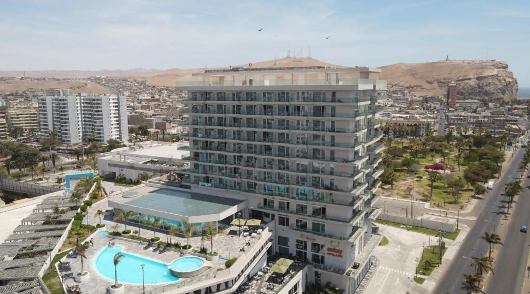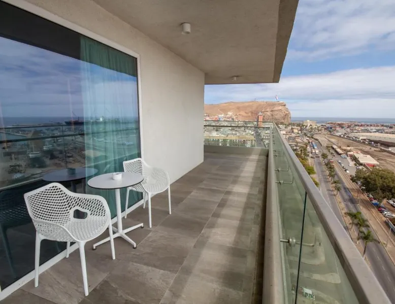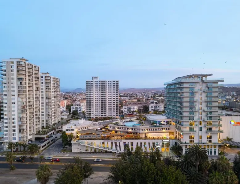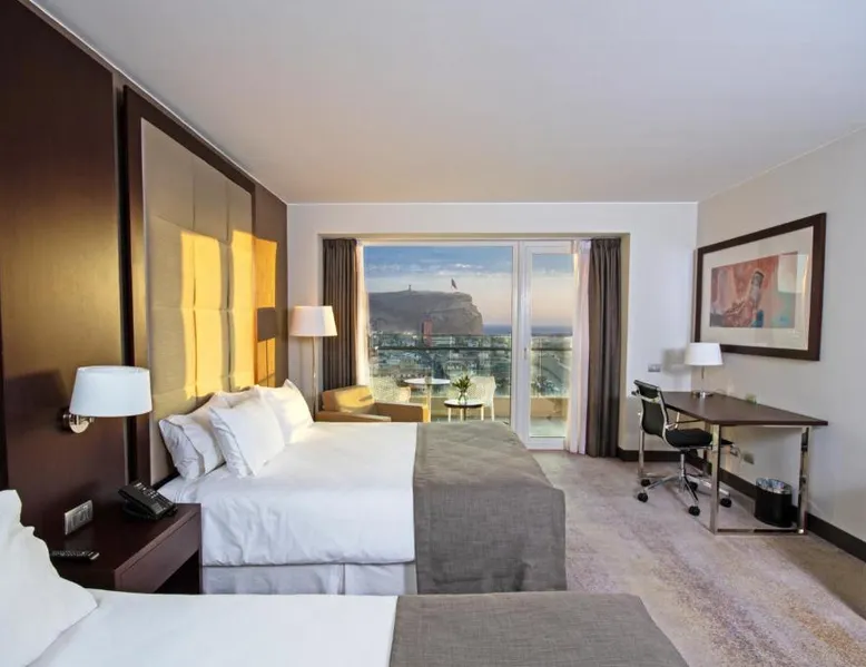 Elegant Accommodations: Antay Hotel & Spa in Arica offers luxurious rooms with sea views, air-conditioning, and private balconies. Each room includes a mini-bar, flat-screen TV, and free WiFi, ensuring a comfortable stay. Exceptional Facilities: Guests can enjoy spa facilities, a sauna, fitness center, sun terrace, and lush gardens. The hotel features a year-round outdoor and indoor swimming pool, hot tub, and steam room. Additional amenities include a casino, nightclub, and yoga classes. Dining Experience: The on-site restaurant serves local cuisine with continental, American, and buffet breakfast options. Breakfast includes local specialties, juice, pancakes, cheese, and fruits. The bar offers a variety of beverages in a relaxed setting. Prime Location: Located 7.5 mi from Chacalluta International Airport, the hotel is close to attractions such as Chinchorro Beach (less than 0.6 mi) and Arica Port (14-minute walk). Nearby points of interest include the Cathedral of San Marcos de Arica and Arms and Historical Museum. Guests will have a special experience as this twin room features a pool with a view. The spacious twin room offers air conditioning, a mini-bar, a terrace with sea views as well as a private bathroom featuring a shower. The unit offers 2 beds.