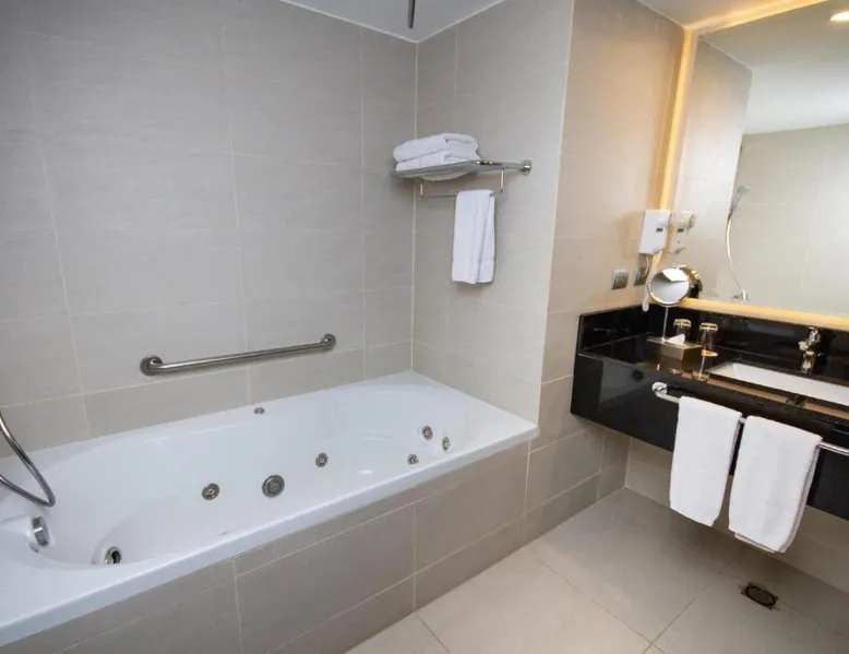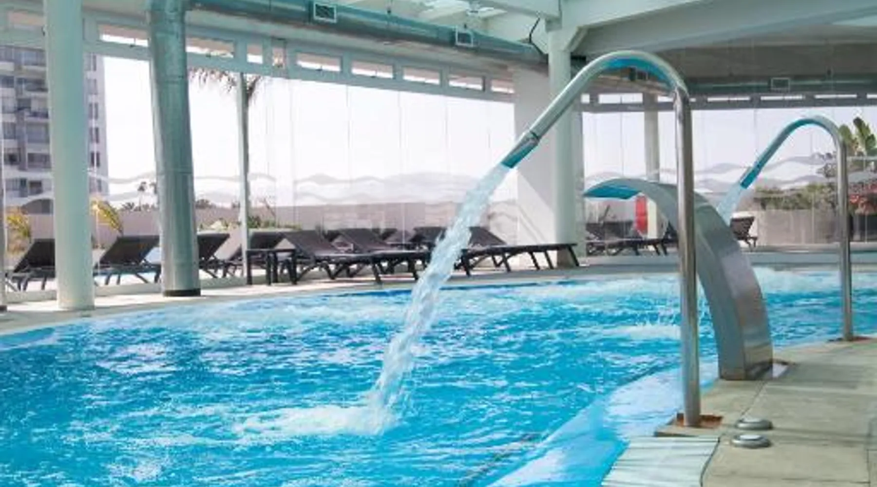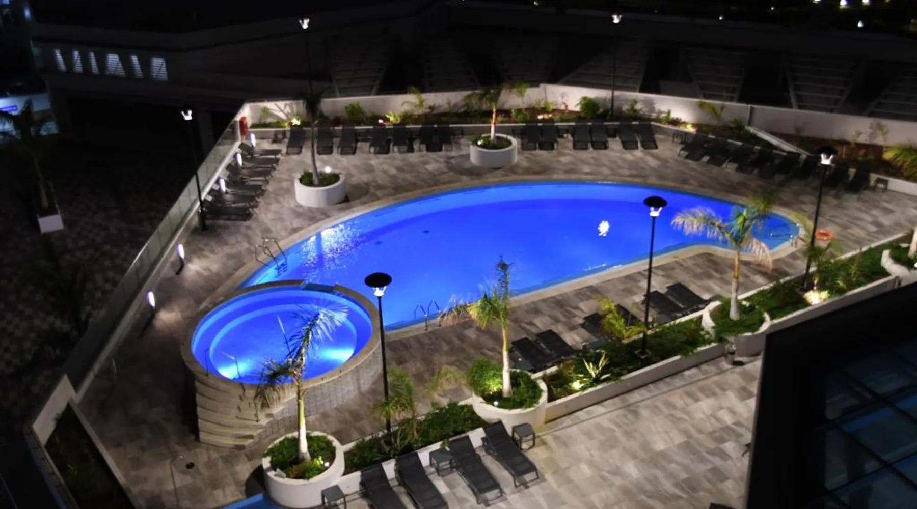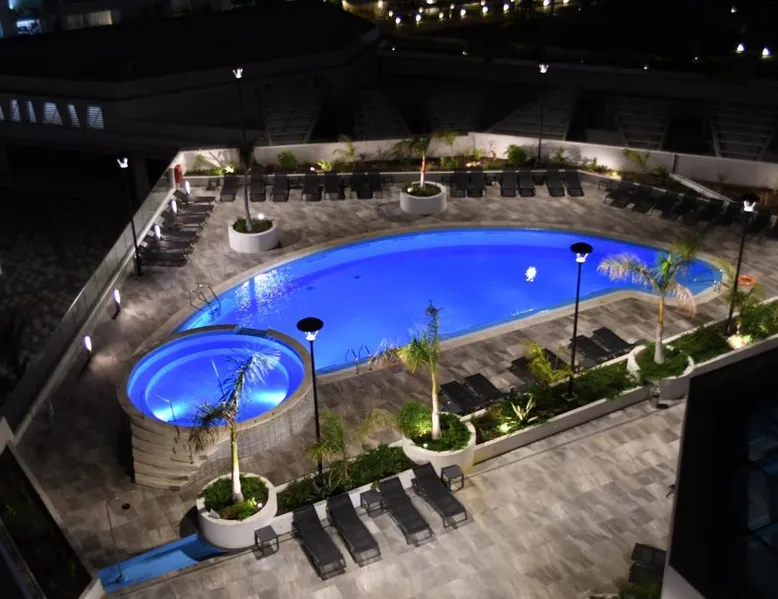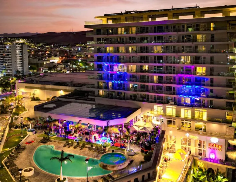 Elegant Accommodations: Antay Hotel & Spa in Arica offers luxurious rooms with sea views, air-conditioning, and private balconies. Each room includes a mini-bar, flat-screen TV, and free WiFi, ensuring a comfortable stay. Exceptional Facilities: Guests can enjoy spa facilities, a sauna, fitness center, sun terrace, and lush gardens. The hotel features a year-round outdoor and indoor swimming pool, hot tub, and steam room. Additional amenities include a casino, nightclub, and yoga classes. Dining Experience: The on-site restaurant serves local cuisine with continental, American, and buffet breakfast options. Breakfast includes local specialties, juice, pancakes, cheese, and fruits. The bar offers a variety of beverages in a relaxed setting. Prime Location: Located 7.5 mi from Chacalluta International Airport, the hotel is close to attractions such as Chinchorro Beach (less than 0.6 mi) and Arica Port (14-minute walk). Nearby points of interest include the Cathedral of San Marcos de Arica and Arms and Historical Museum. Guests will have a special experience as this twin room features a pool with a view. The spacious twin room offers air conditioning, a mini-bar, a terrace with sea views as well as a private bathroom featuring a shower. The unit offers 2 beds.