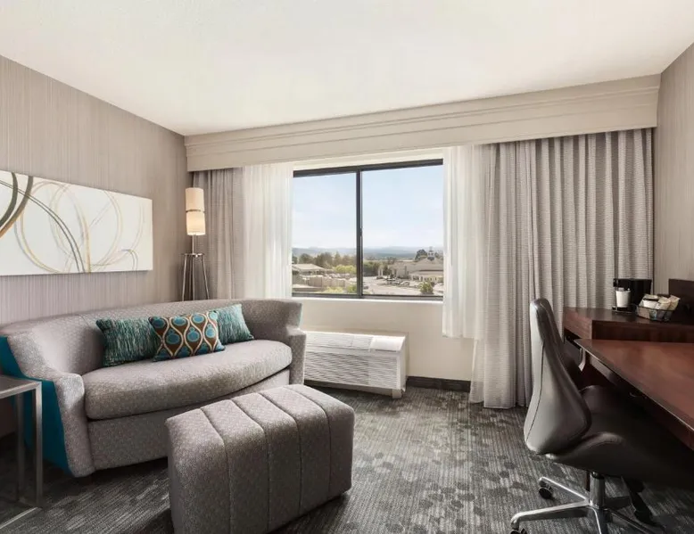 Comfortable Accommodations: Rooms feature air-conditioning, private bathrooms, tea and coffee makers, hairdryers, refrigerators, work desks, and seating areas. Each room includes a bath or shower and a TV. Exceptional Facilities: Guests enjoy a fitness center, free use of bicycles, restaurant, bar, and free WiFi. Additional amenities include a lounge, outdoor fireplace, elevator, 24-hour front desk, outdoor seating area, and picnic area. Convenient Location: Located in Salinas, the hotel is 17 mi from Monterey Regional Airport. Nearby attractions include Presidio Of Monterey Museum (20 mi), Monterey Bay Aquarium (21 mi), and Cannery Row (21 mi). Guest Satisfaction: Highly rated for room cleanliness, attentive staff, and convenient location. Offering free Wi-Fi and cable TV, this room includes tea and coffee-making facilities.